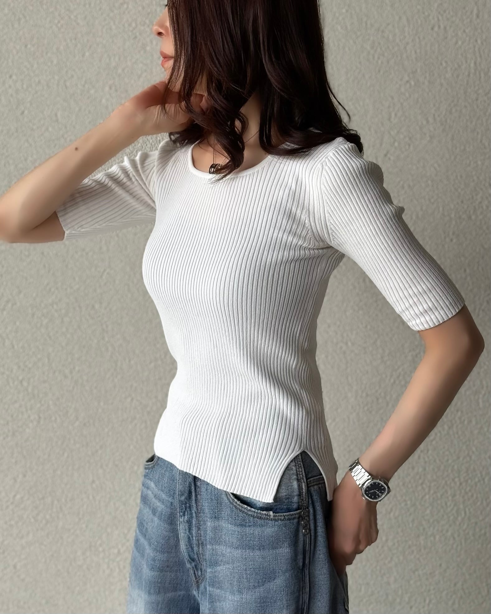 ハーフスリーブリブニットを再生産いたしました。