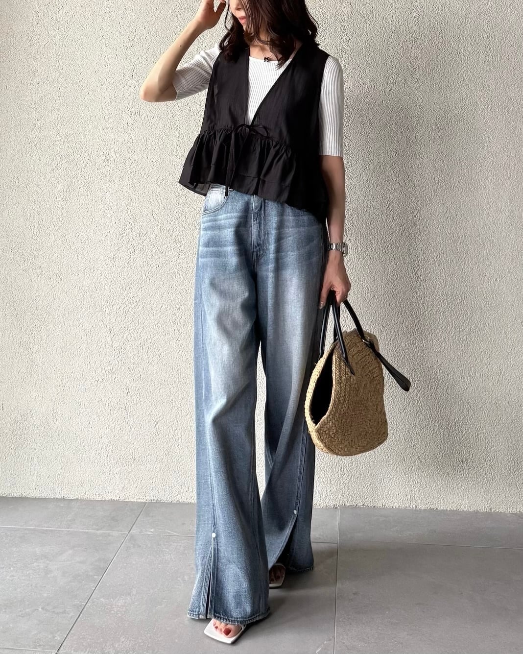 サイドはスリットをプラスし、ボトムスの