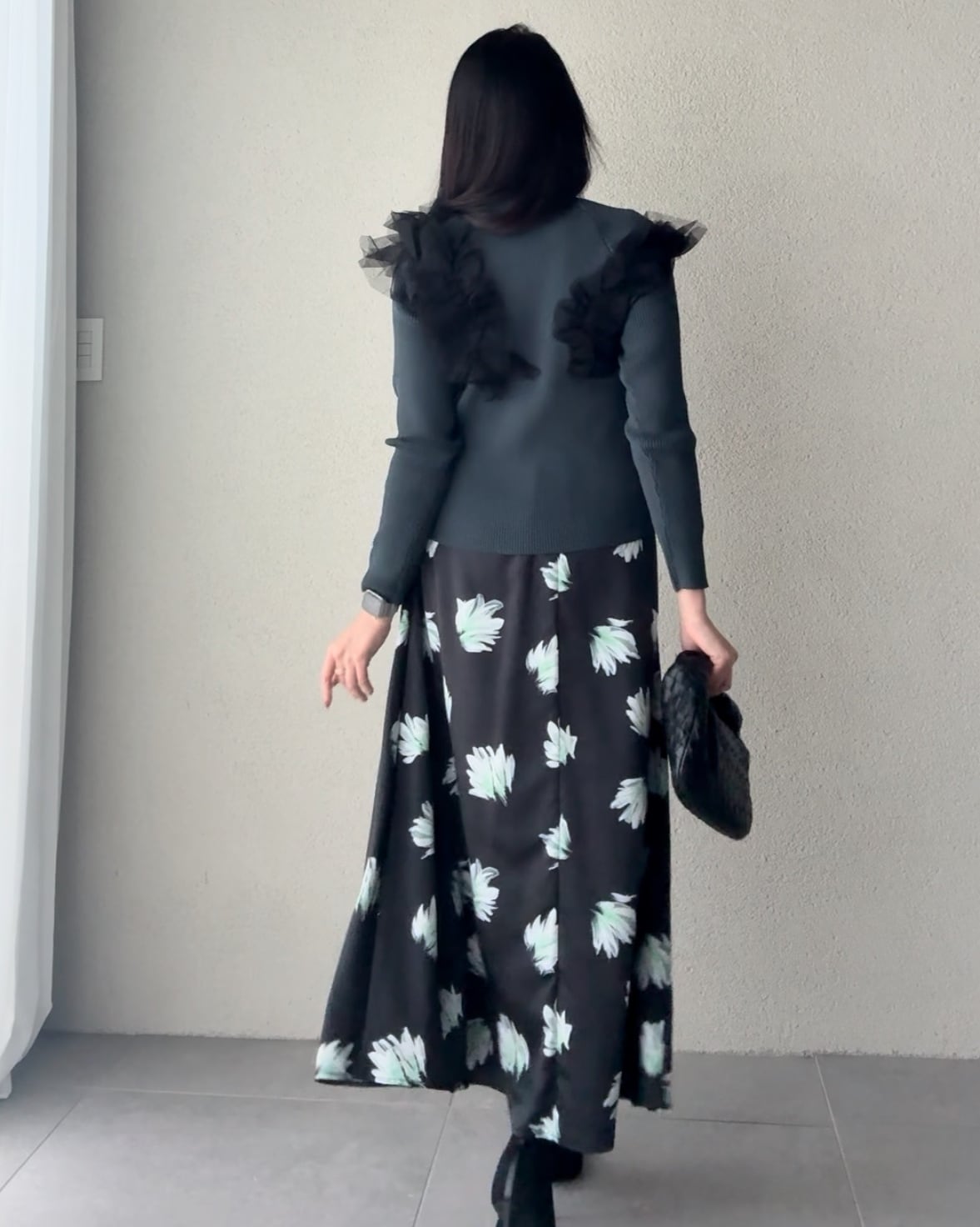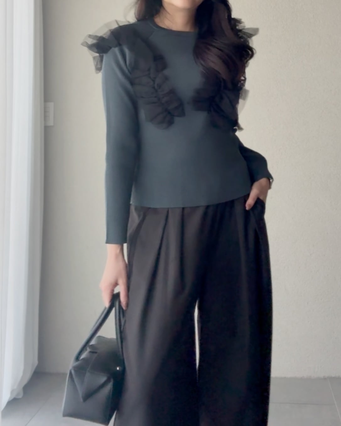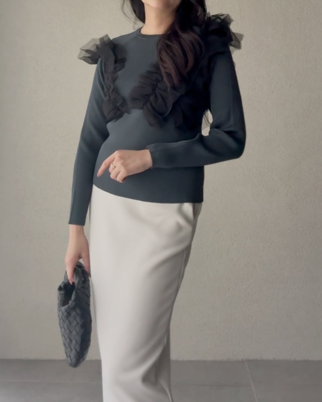 アシンメトリーにデザインされたフリルは
