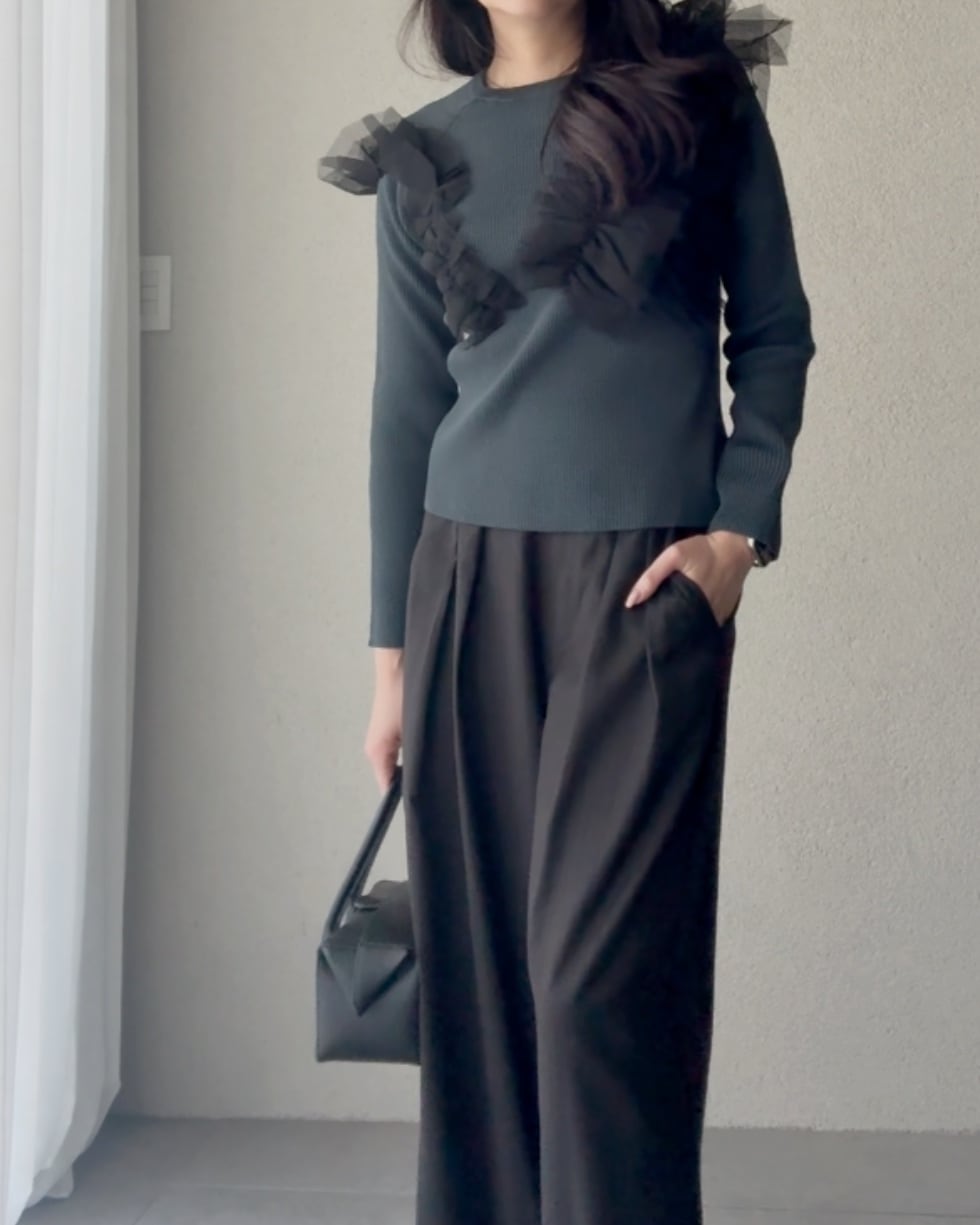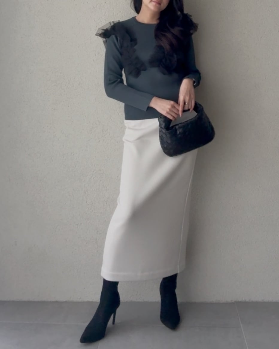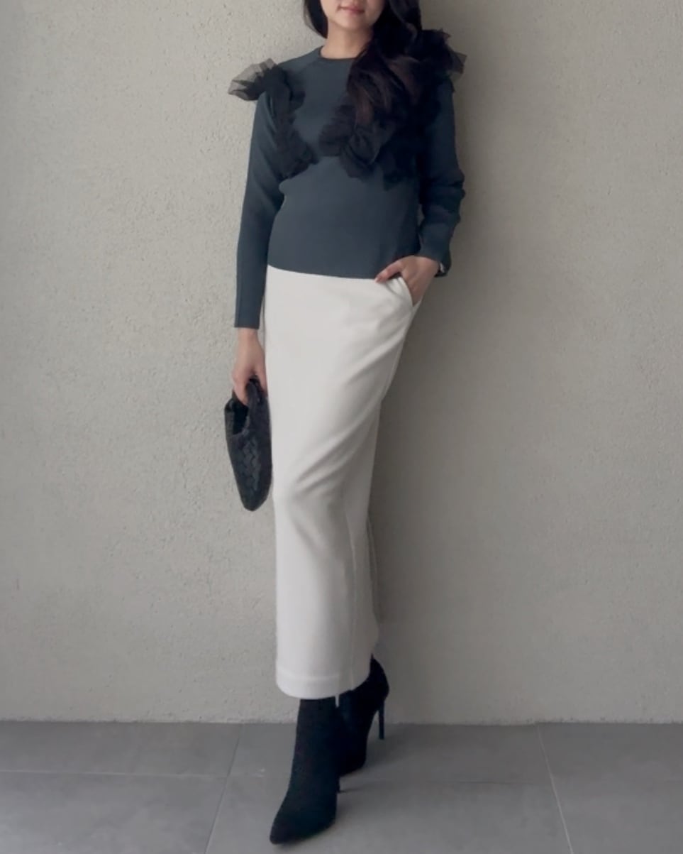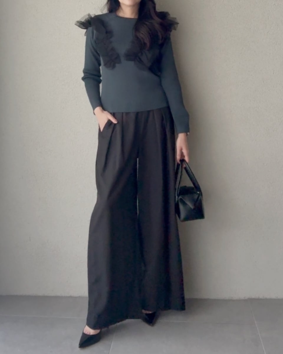 ワイドパンツやフレアスカートとも好相性。