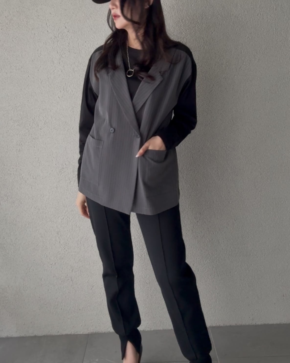 GRAYは細身のストライプ柄がマニッシュな雰囲気