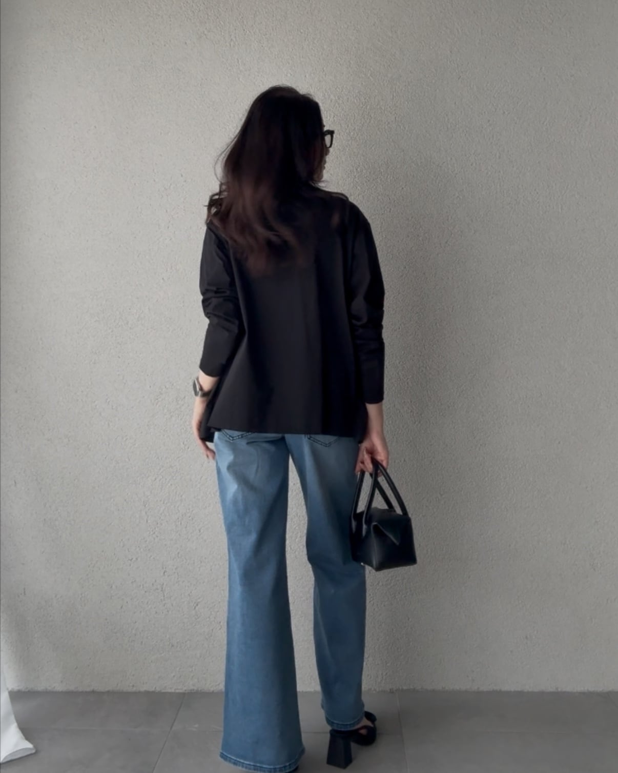 無地のBLACKはシックな印象にまとまります。