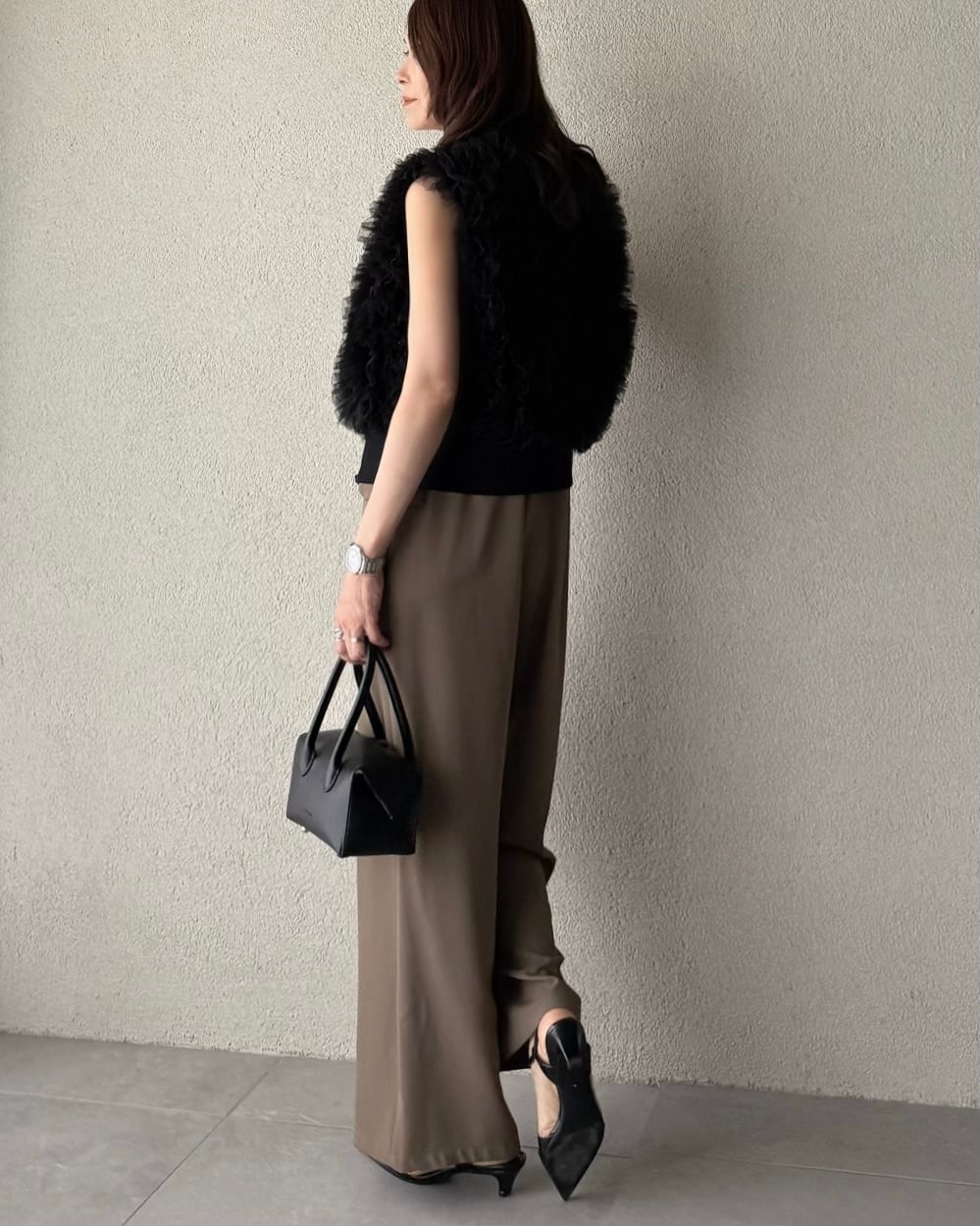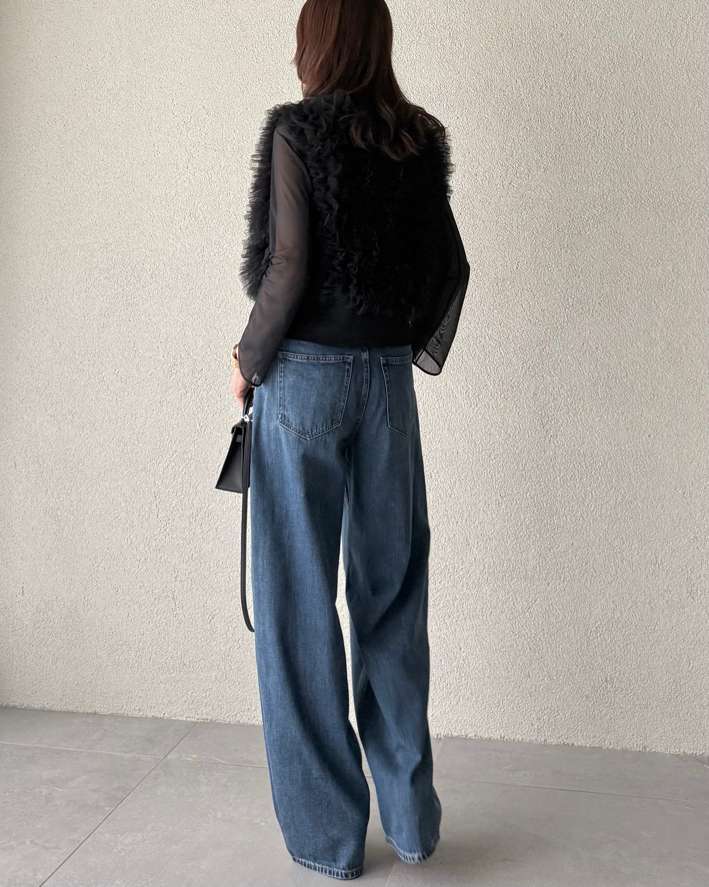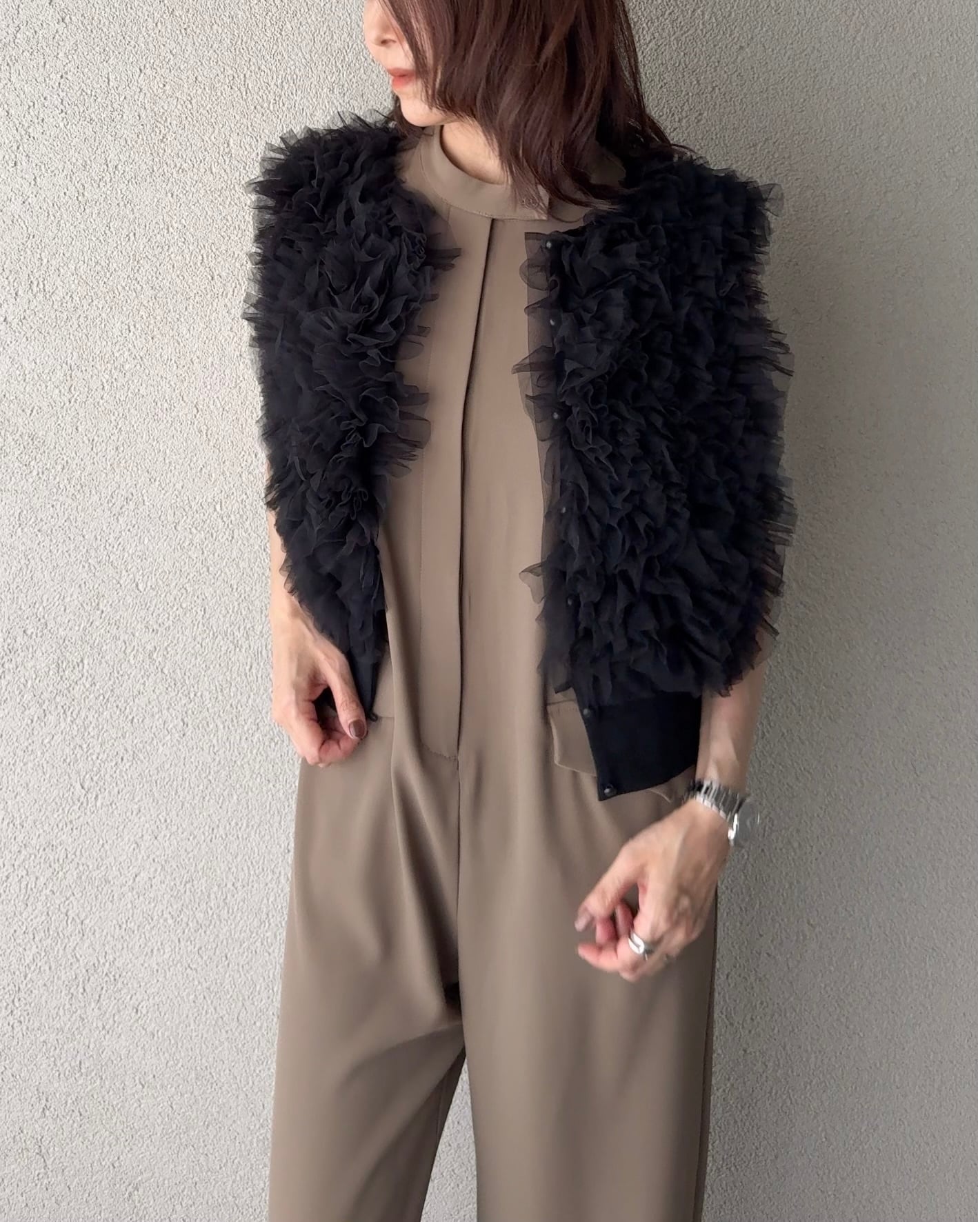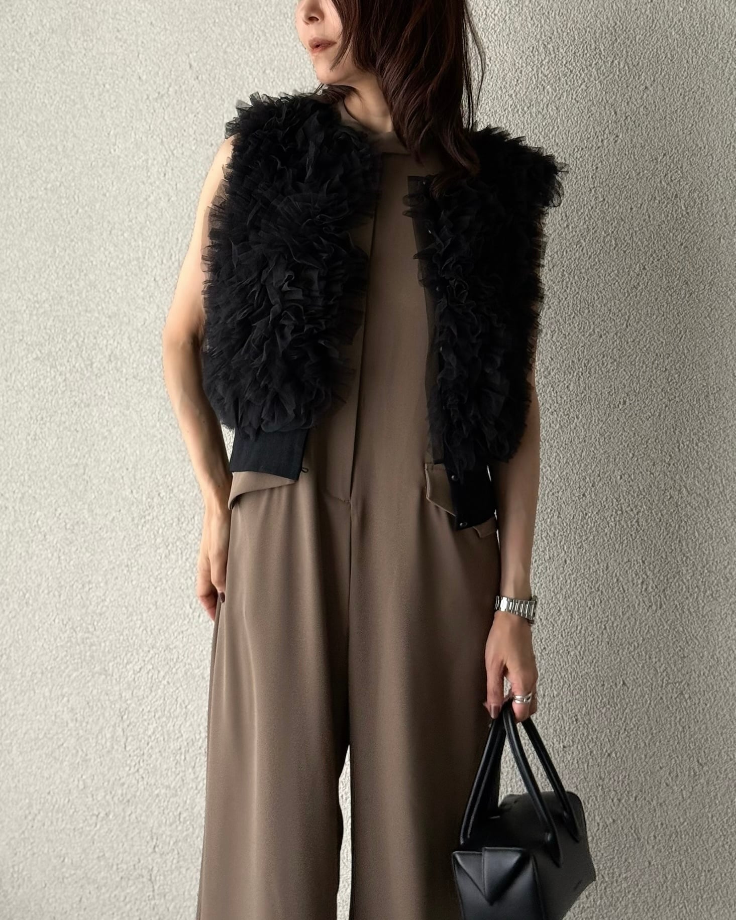 チュールをふんだんに縦に縫い付けたドラマティックなベスト。