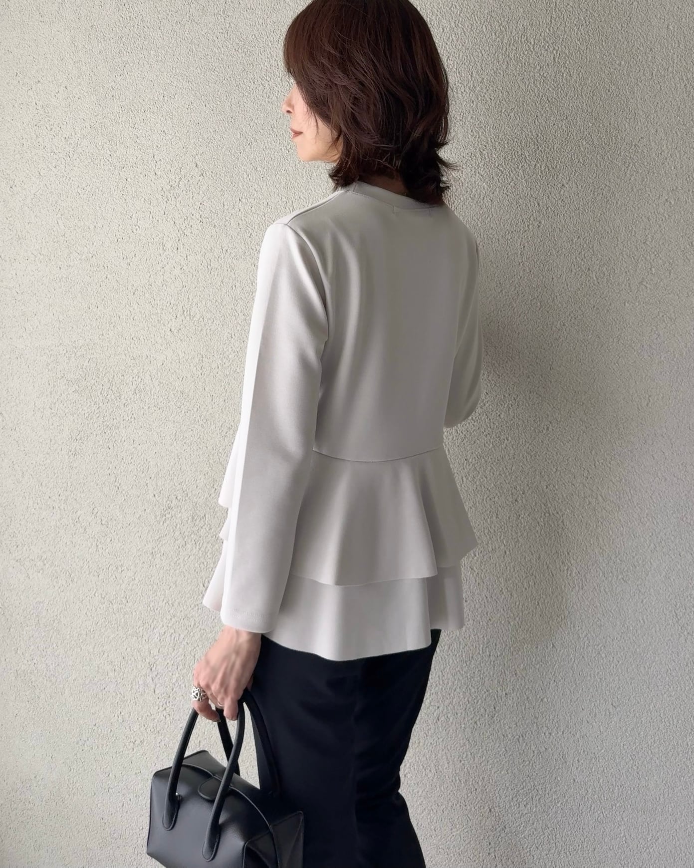 ほどよく厚みのある素材でフリルが甘過ぎず
