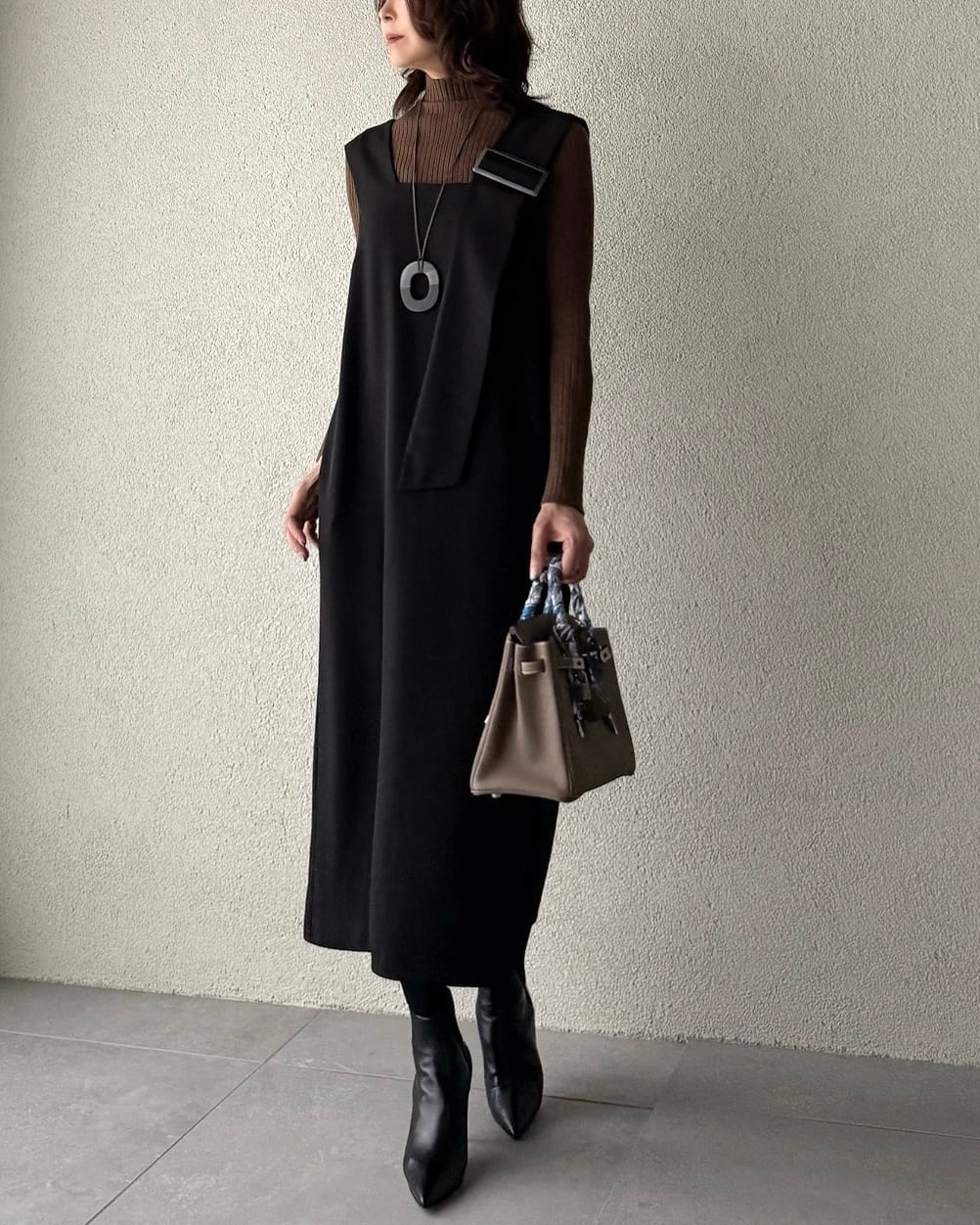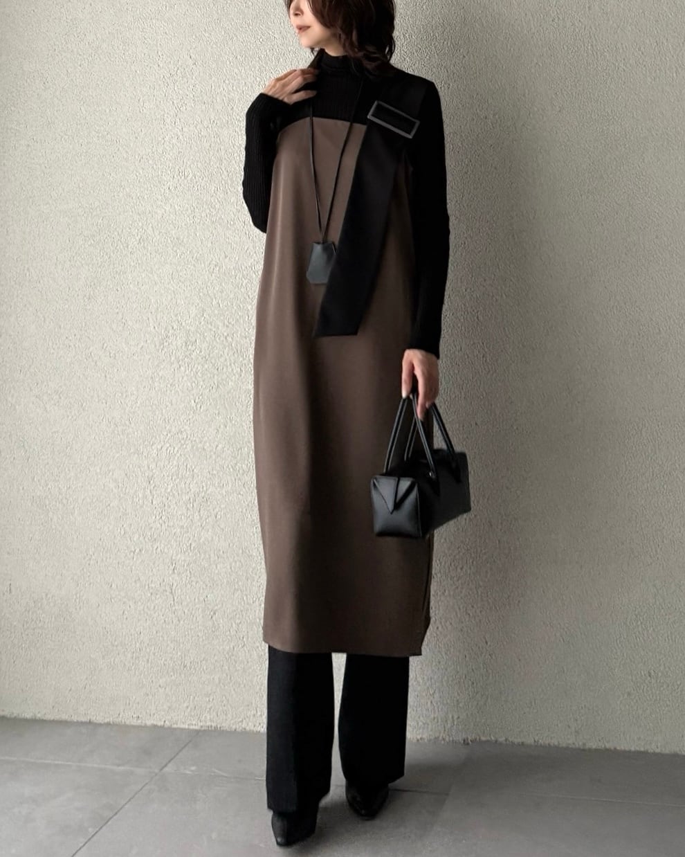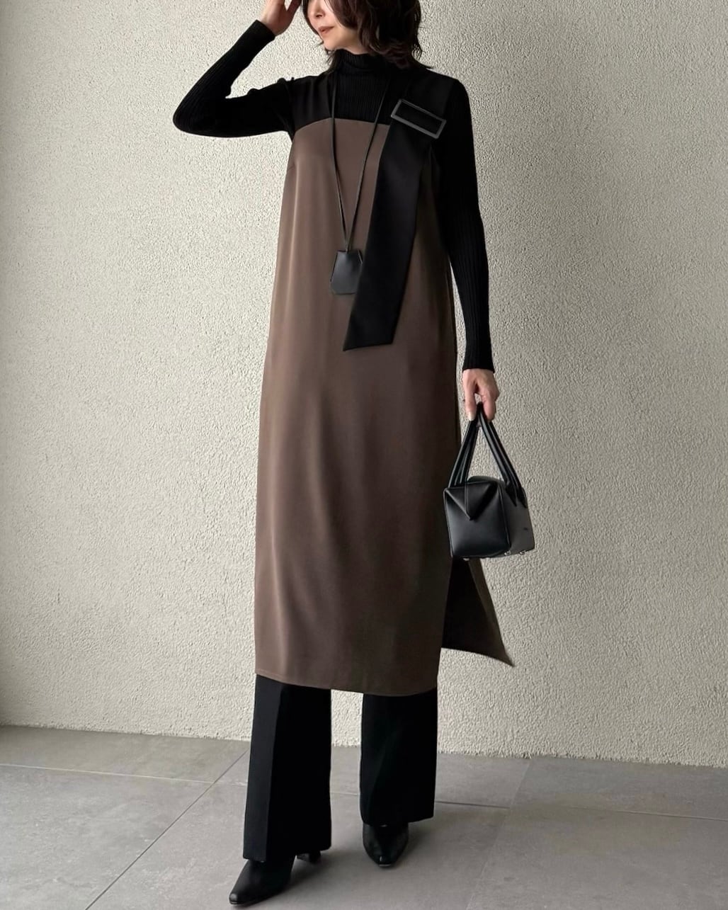 秋冬はシアーのトップスやハイネックニットを