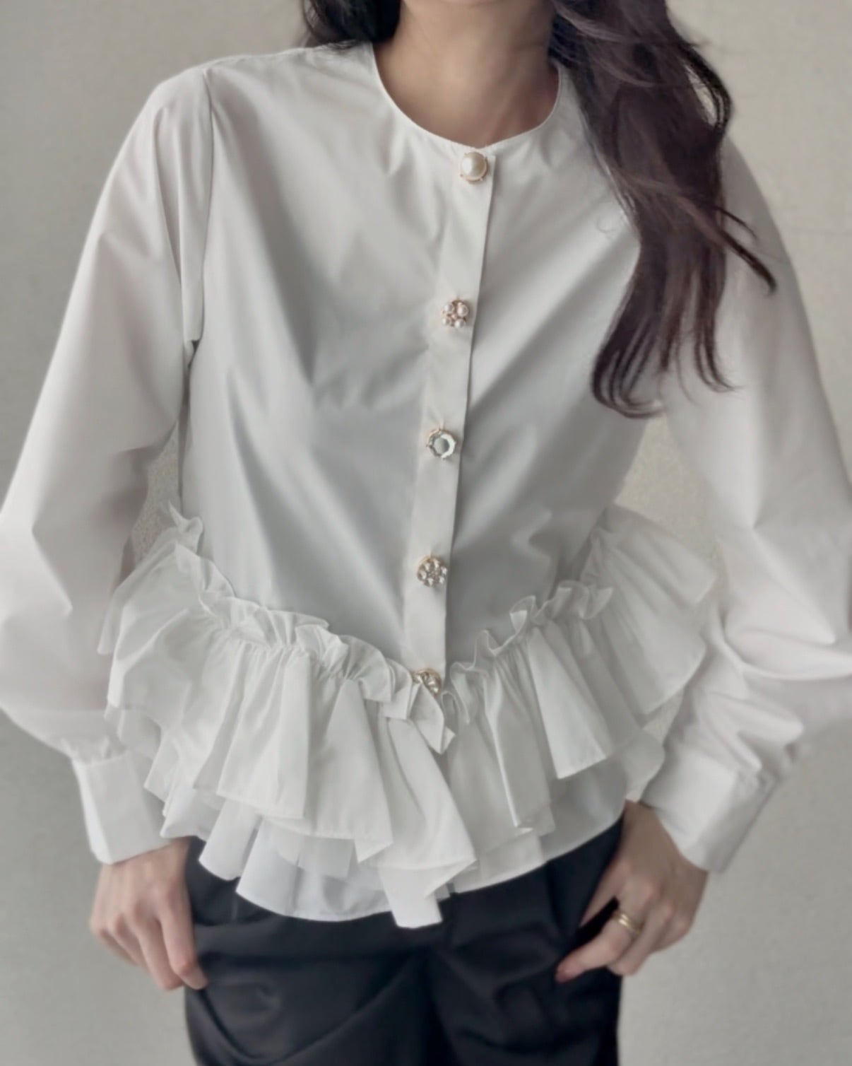 ※ビジューボタンは取り外して脱ぎ着して下さい。