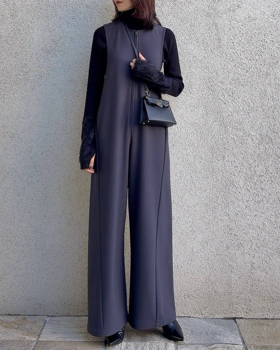 インナーにハイネックニットやブラウスを合わせたレイヤードスタイルやインナーにタンクトップを入れてシンプルなスタイリングもおすすめです。