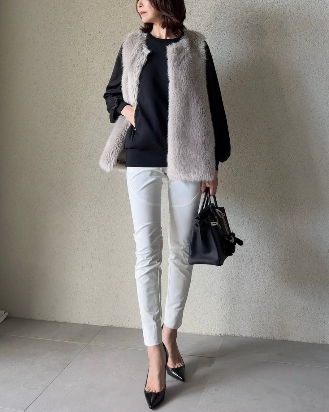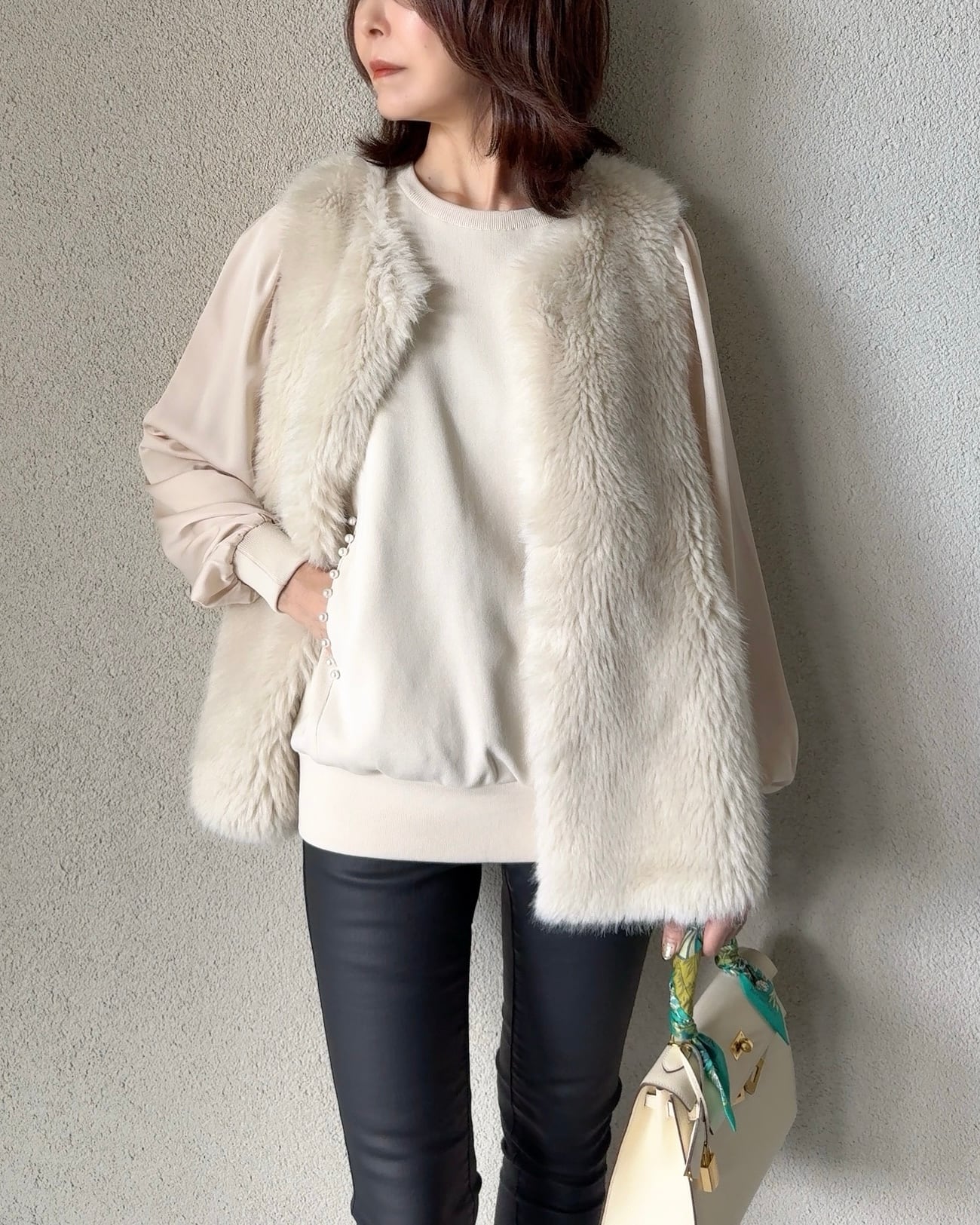 仄かに光沢感のあるフェイクファーを