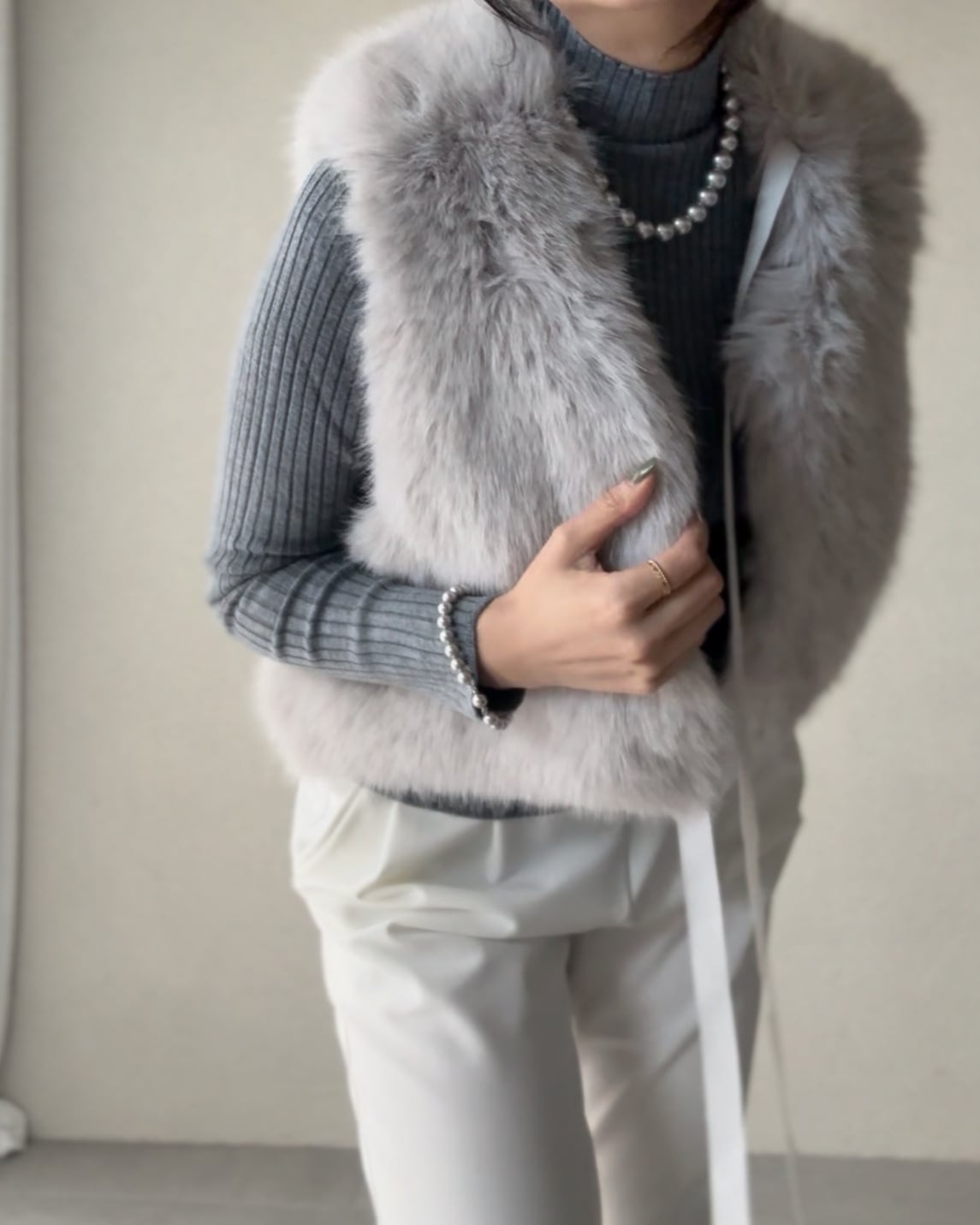 アウターと合わせるとヘムラインが覗く