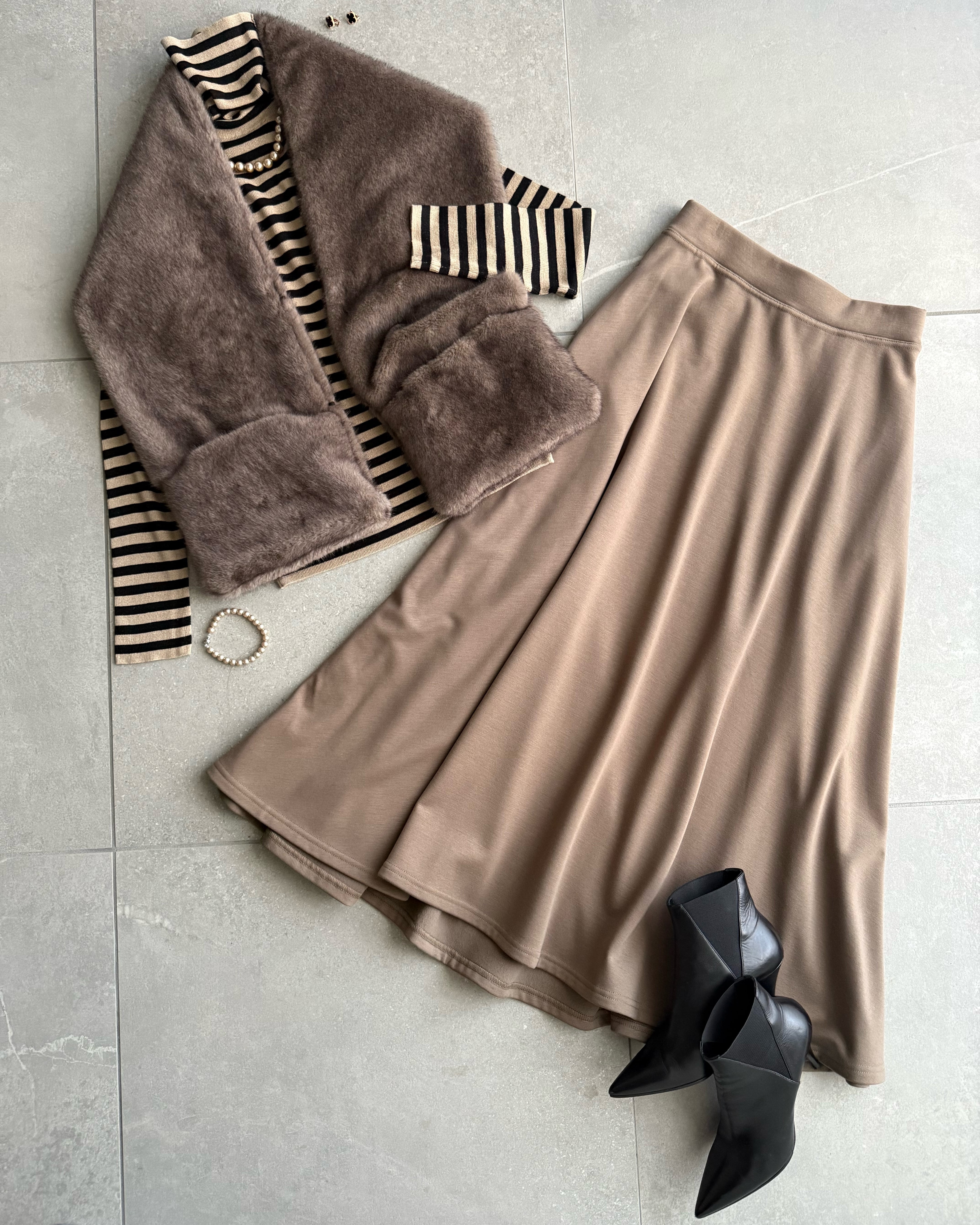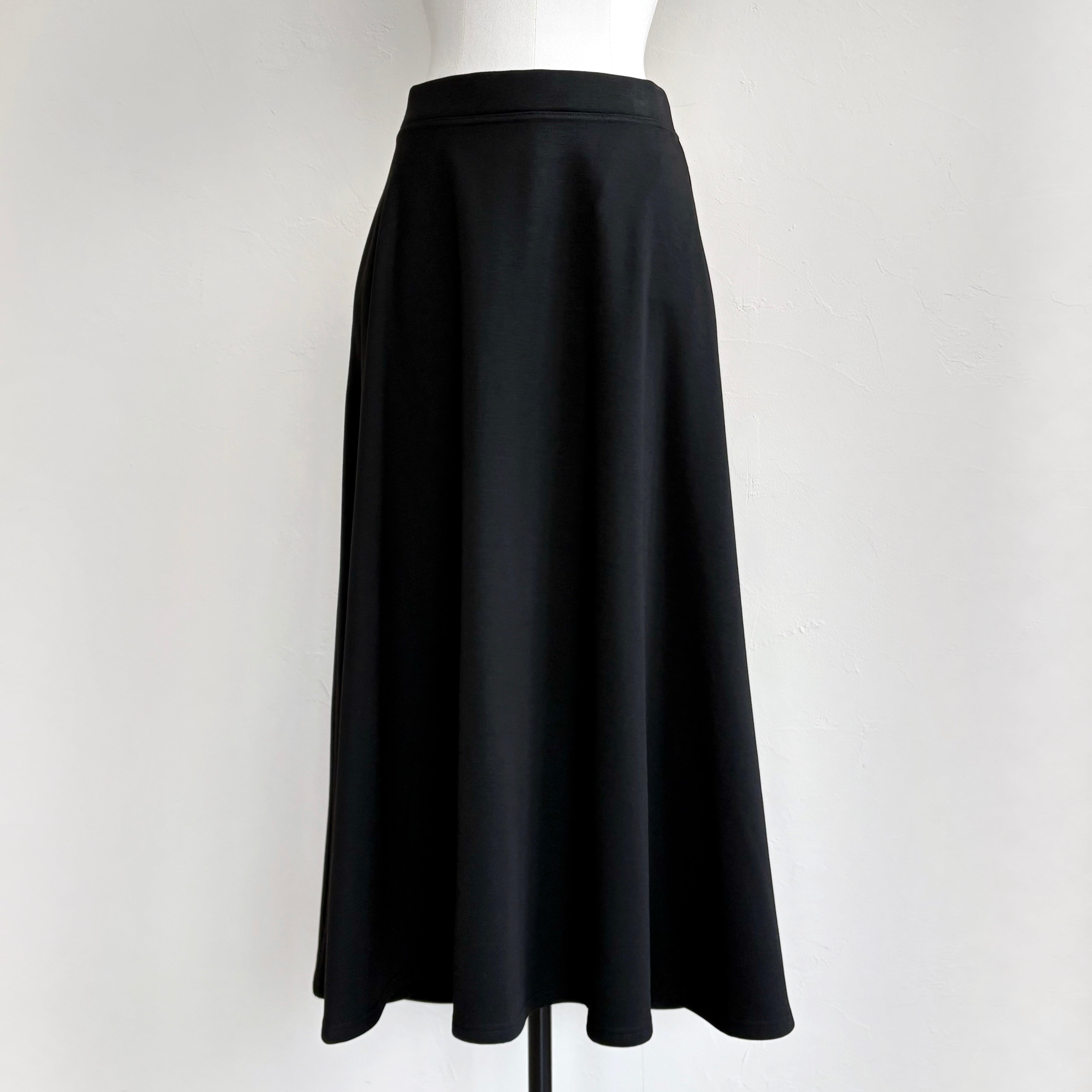 ジャージ素材を使用したフレアスカート。