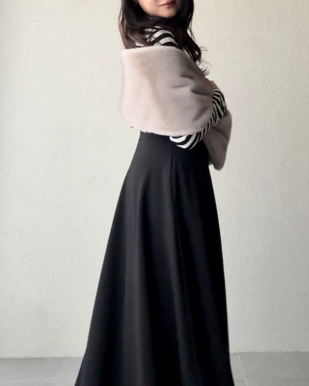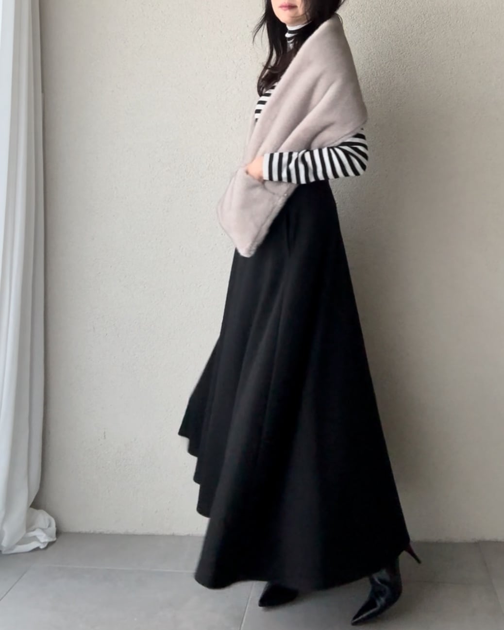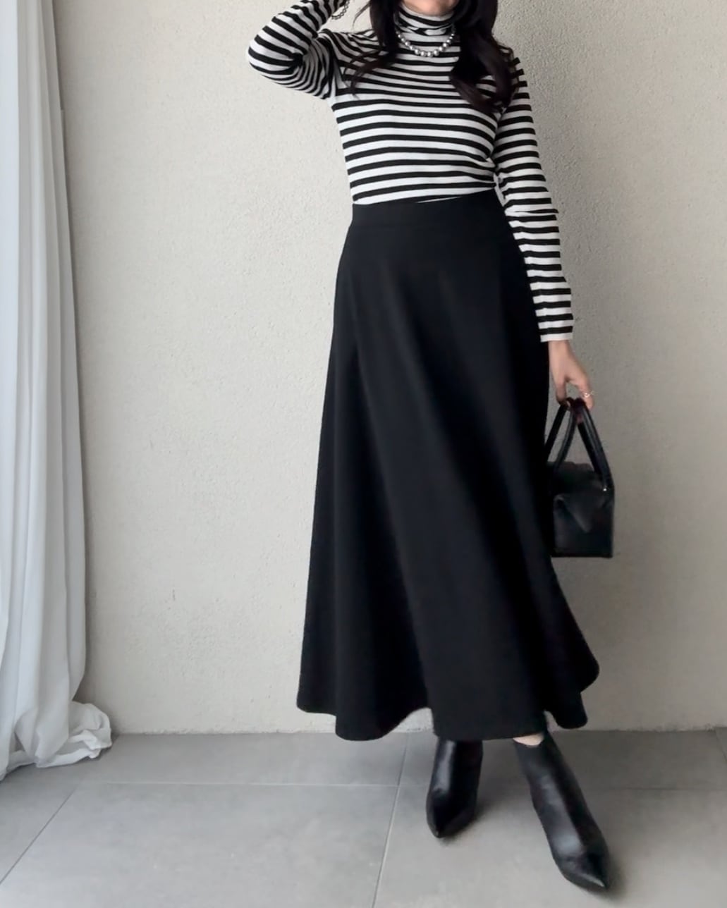 やや後ろを長くしたサーキュラーシルエットが