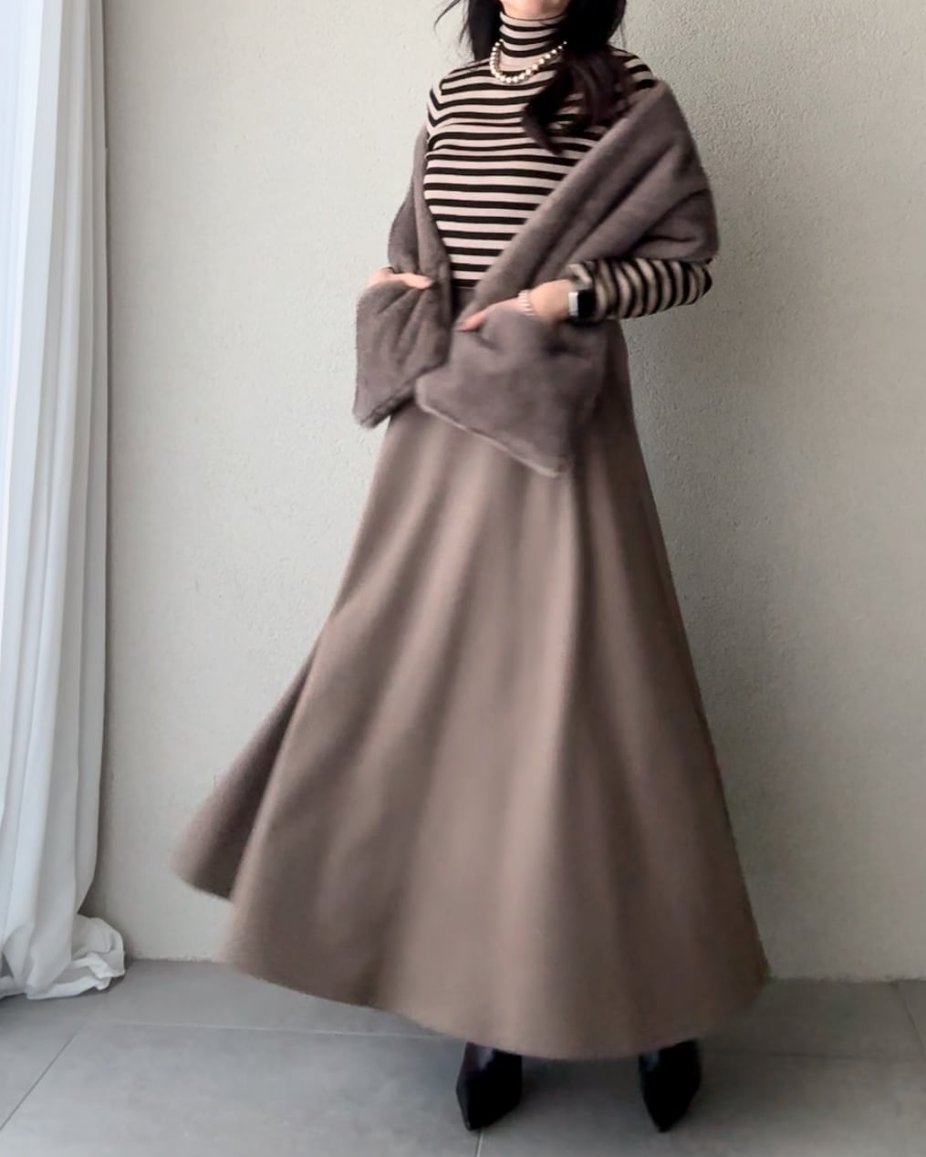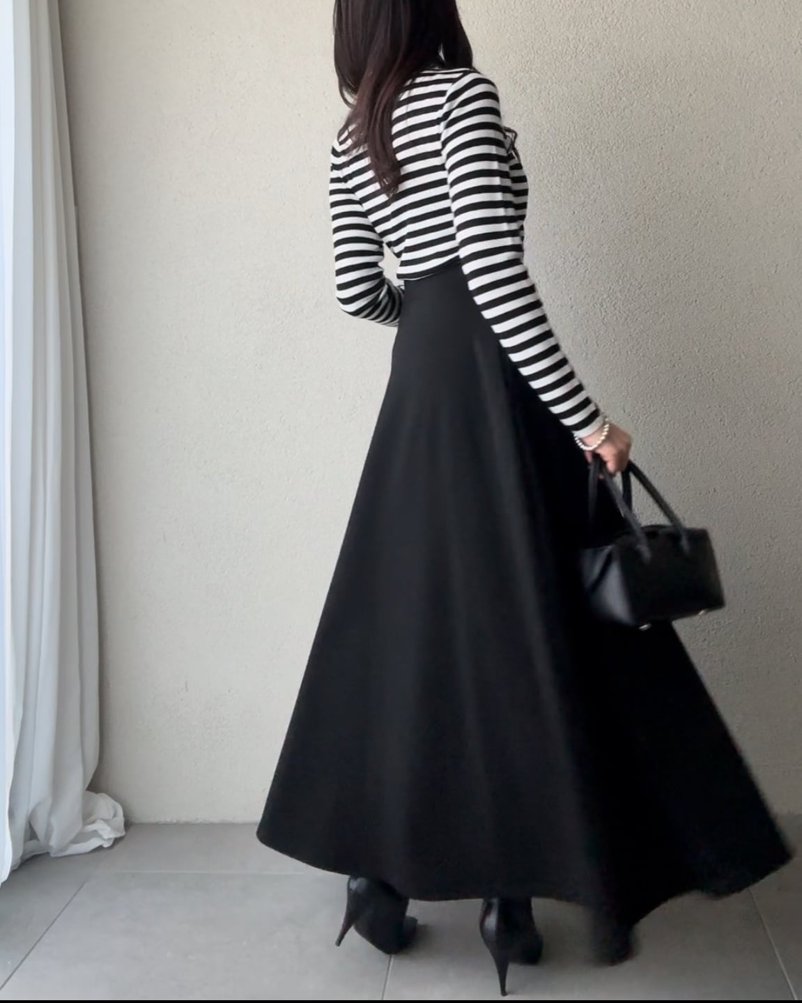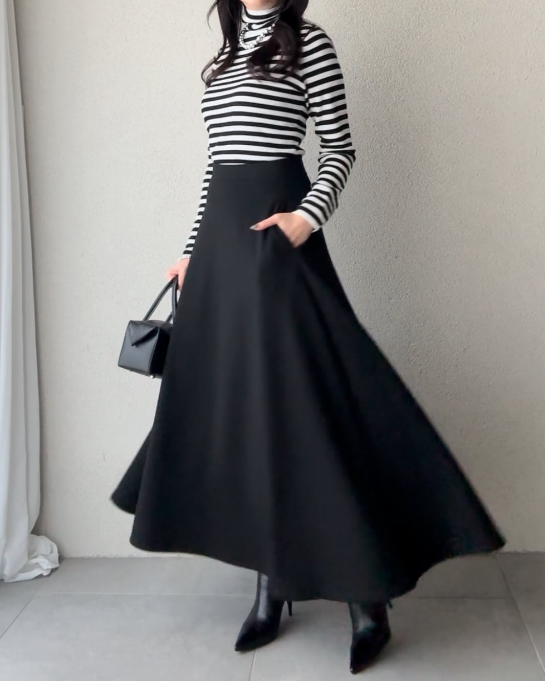やや後ろを長くしたサーキュラーシルエットが