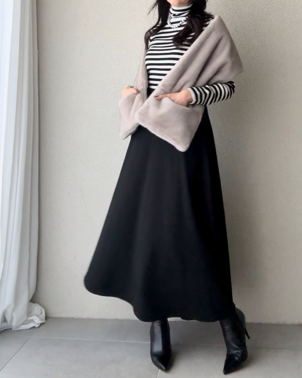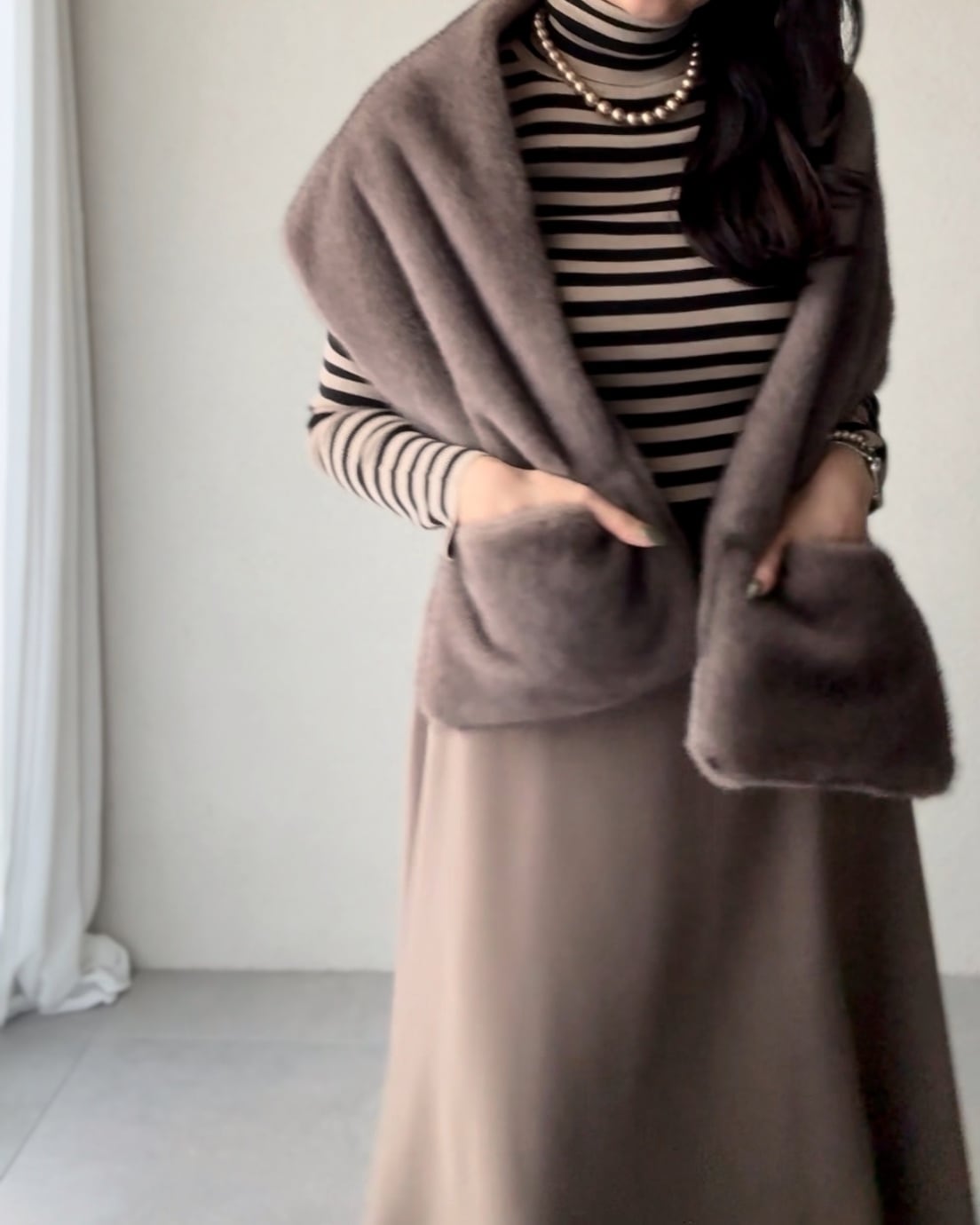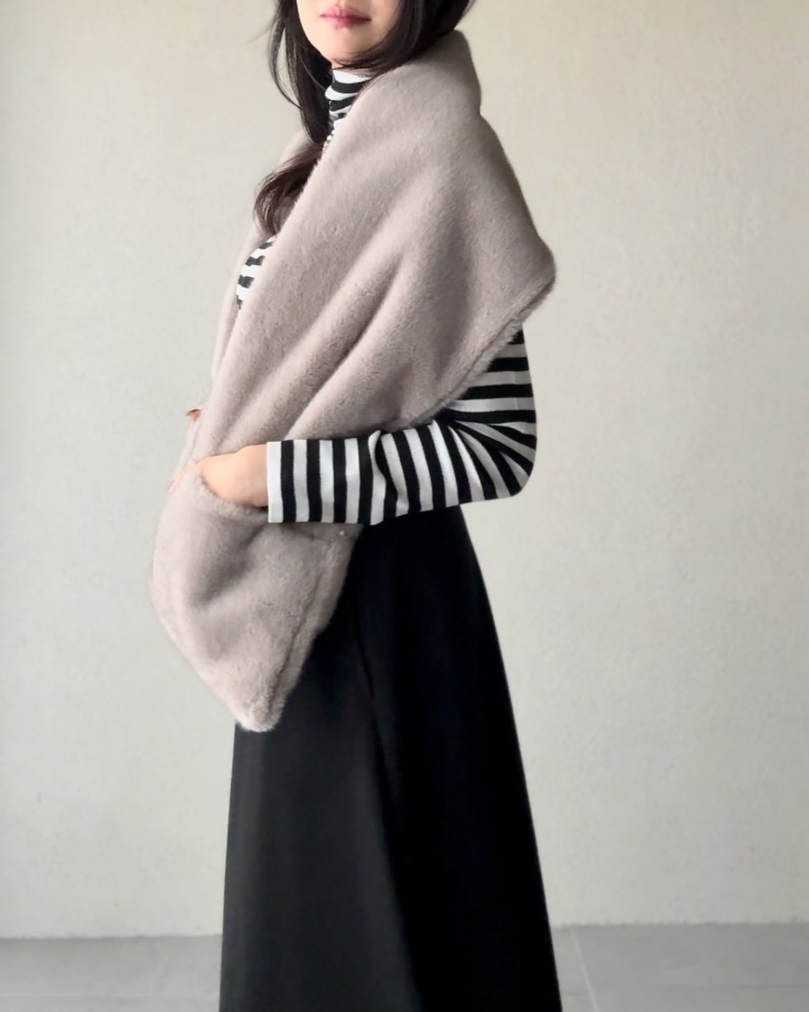 リアルな質感のフェイクファーストール。