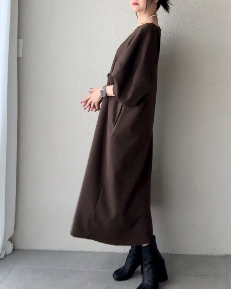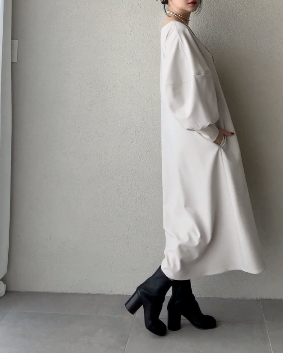 ゆったりとしたサイズ感で身体のラインを拾わず