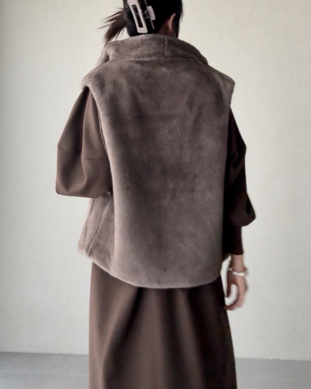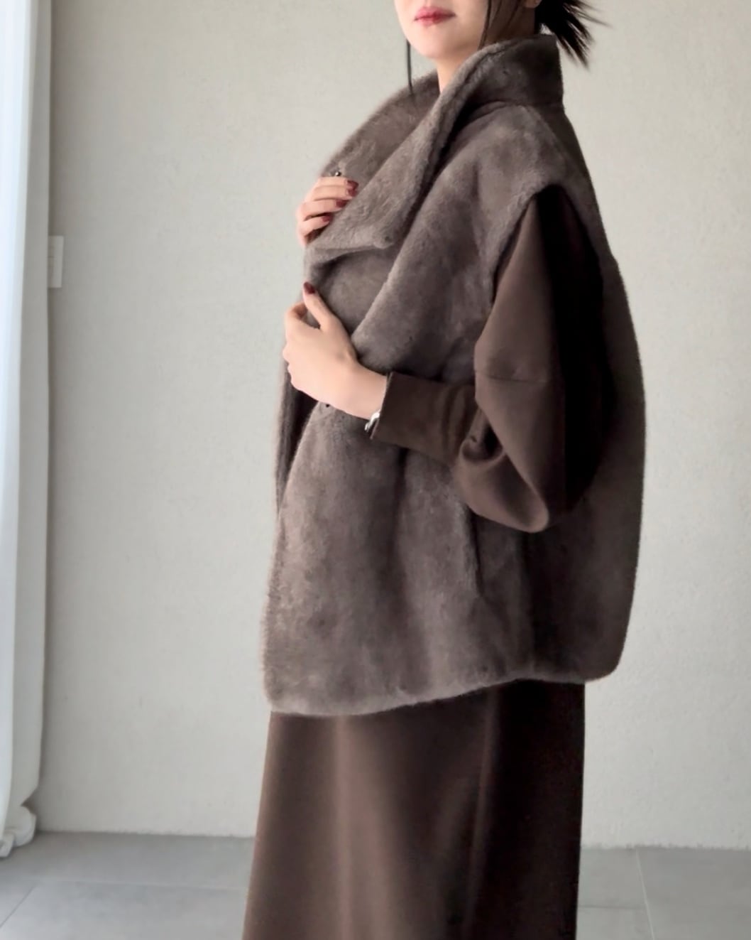 使用し、温かな色合いが冬の着こなしに