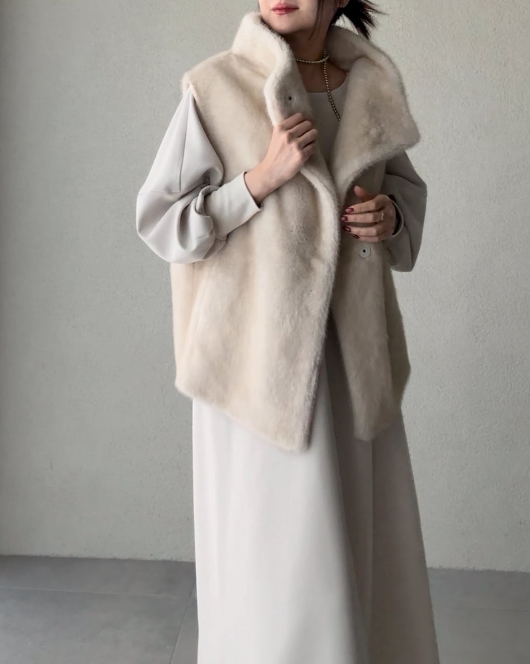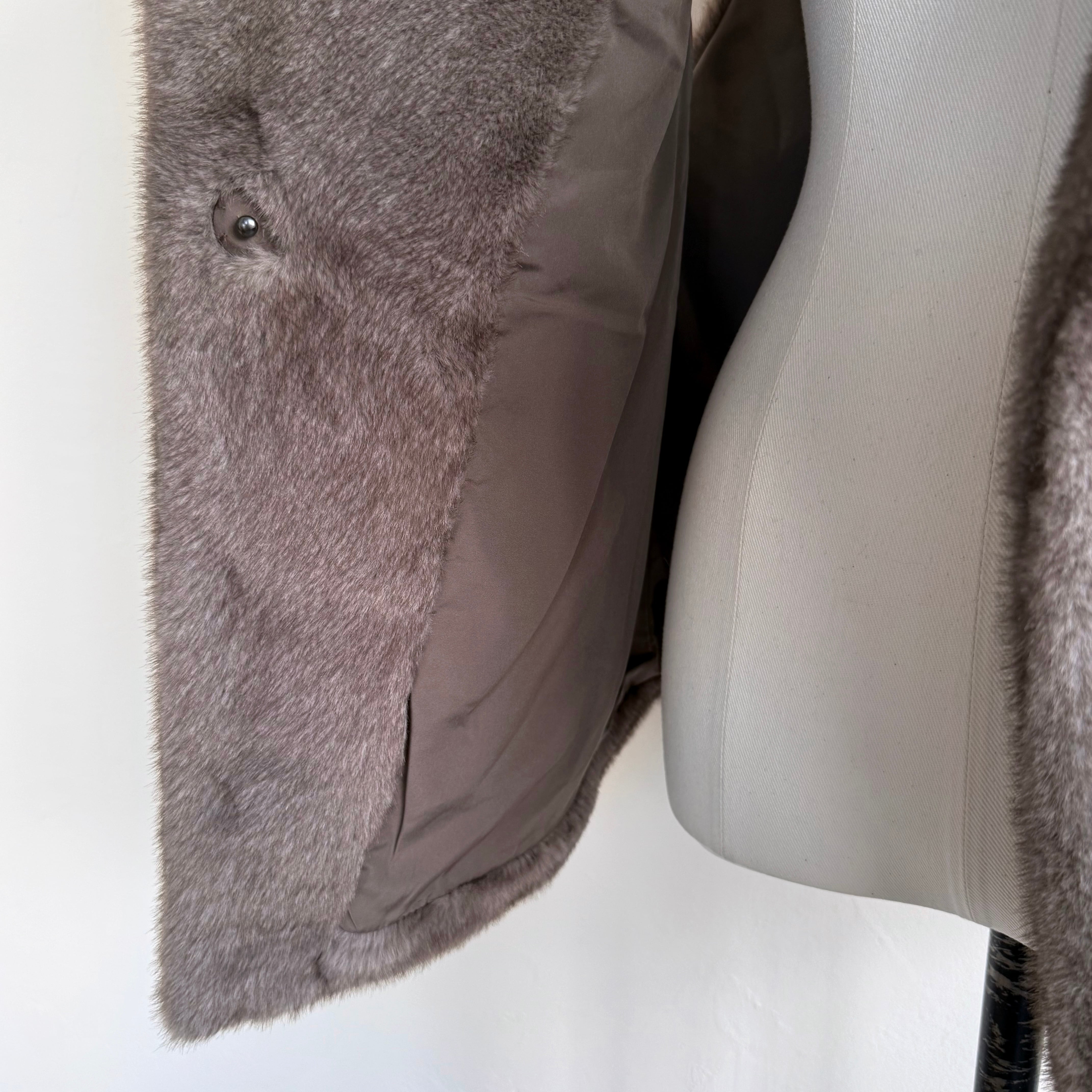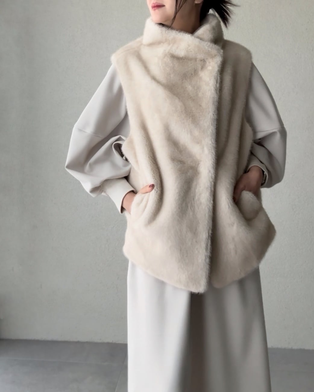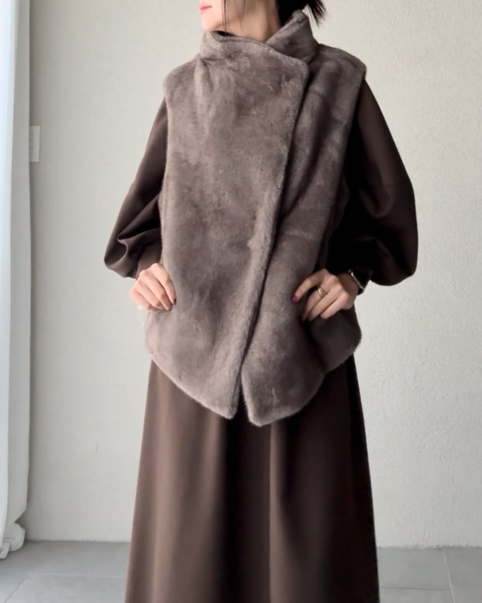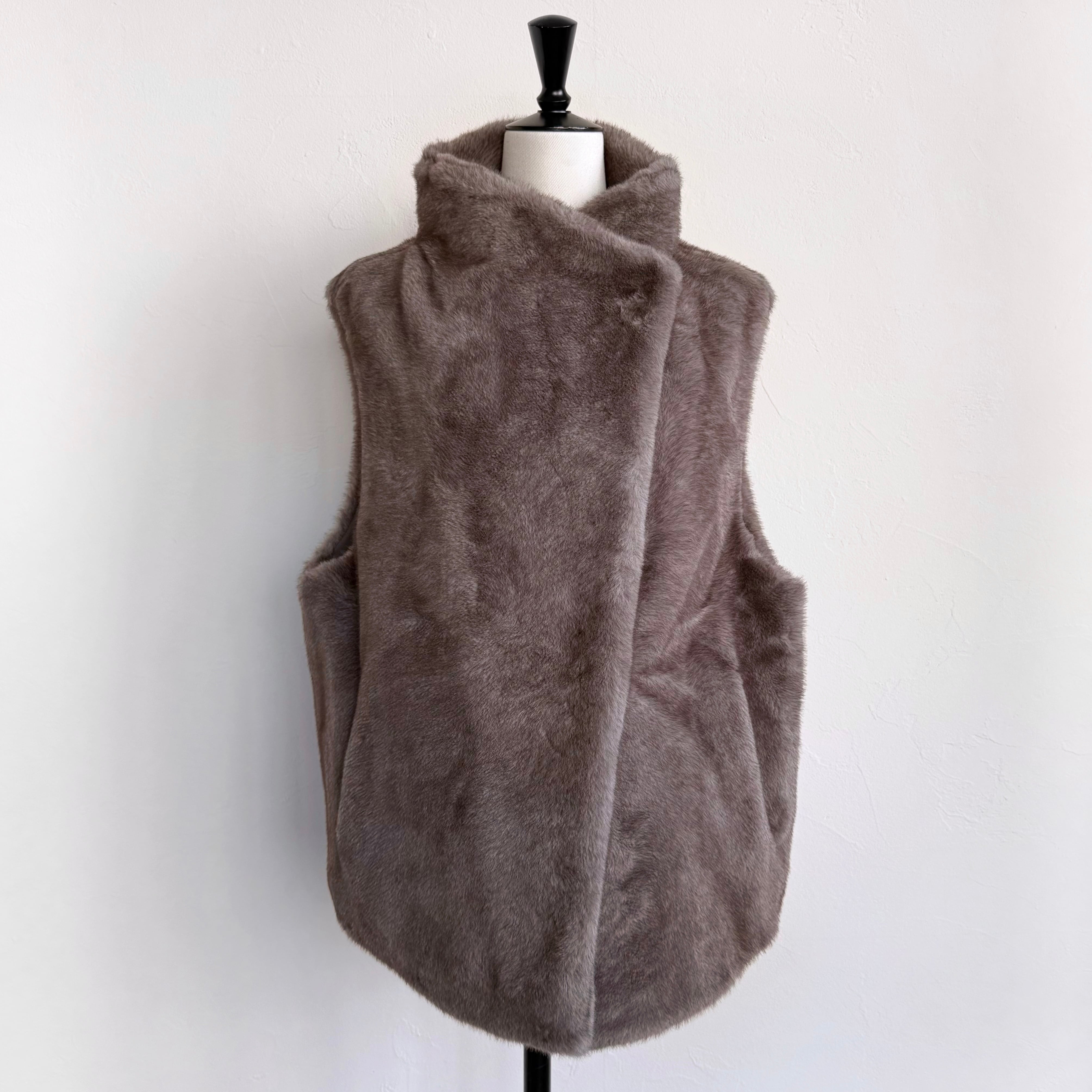 柔らかな手触りのミンク調のフェイクファーを