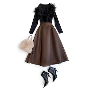 シアーダンボール素材のフレアスカート。