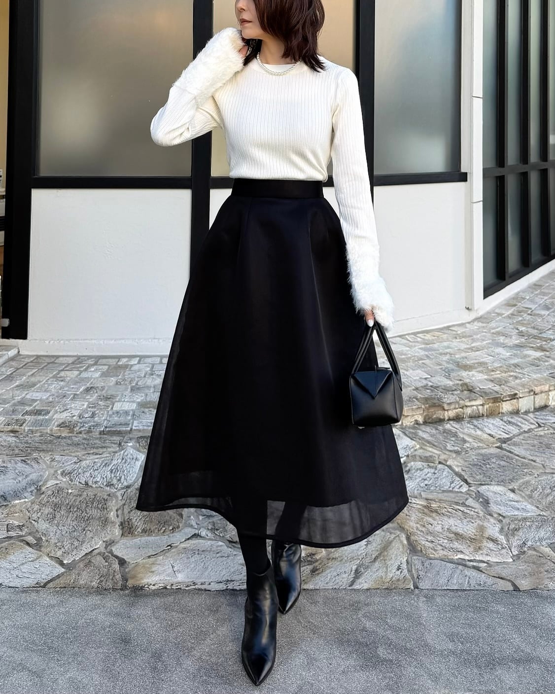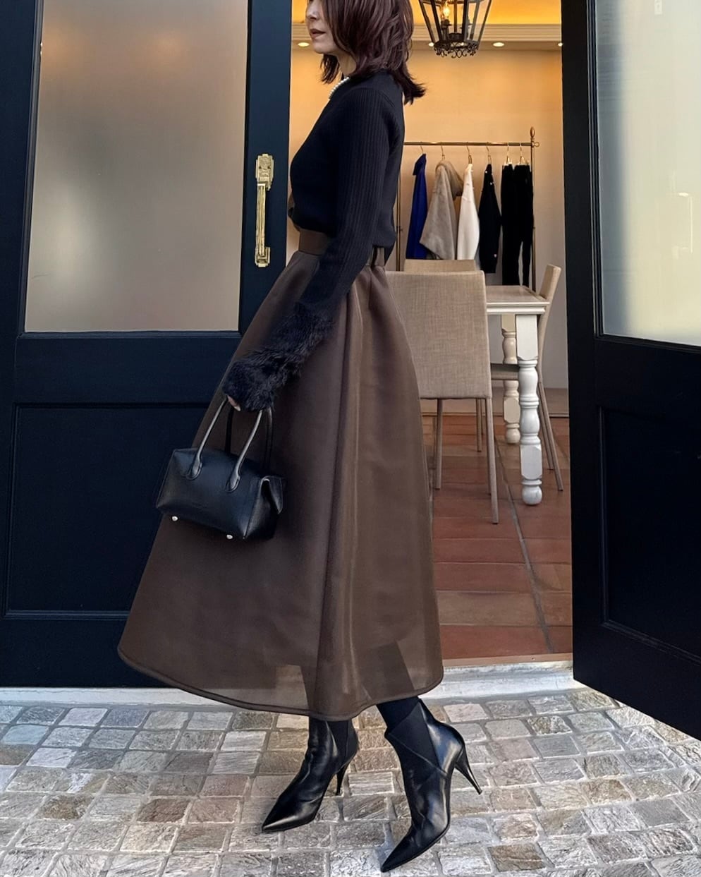 裾の仄かな透け感が女性らしいアクセントに。