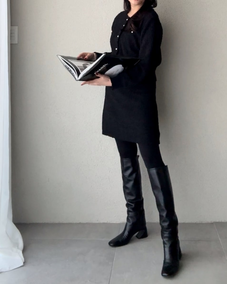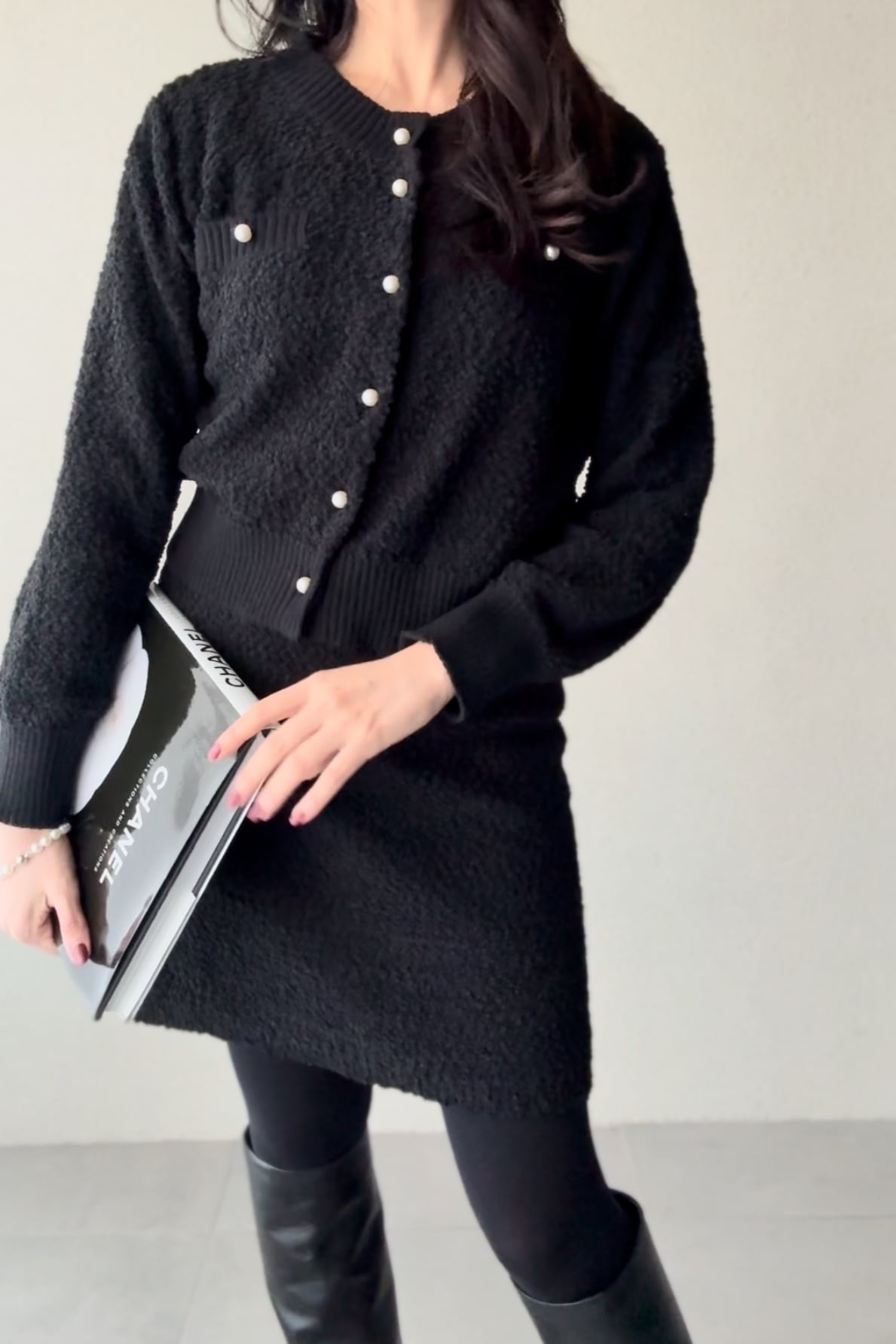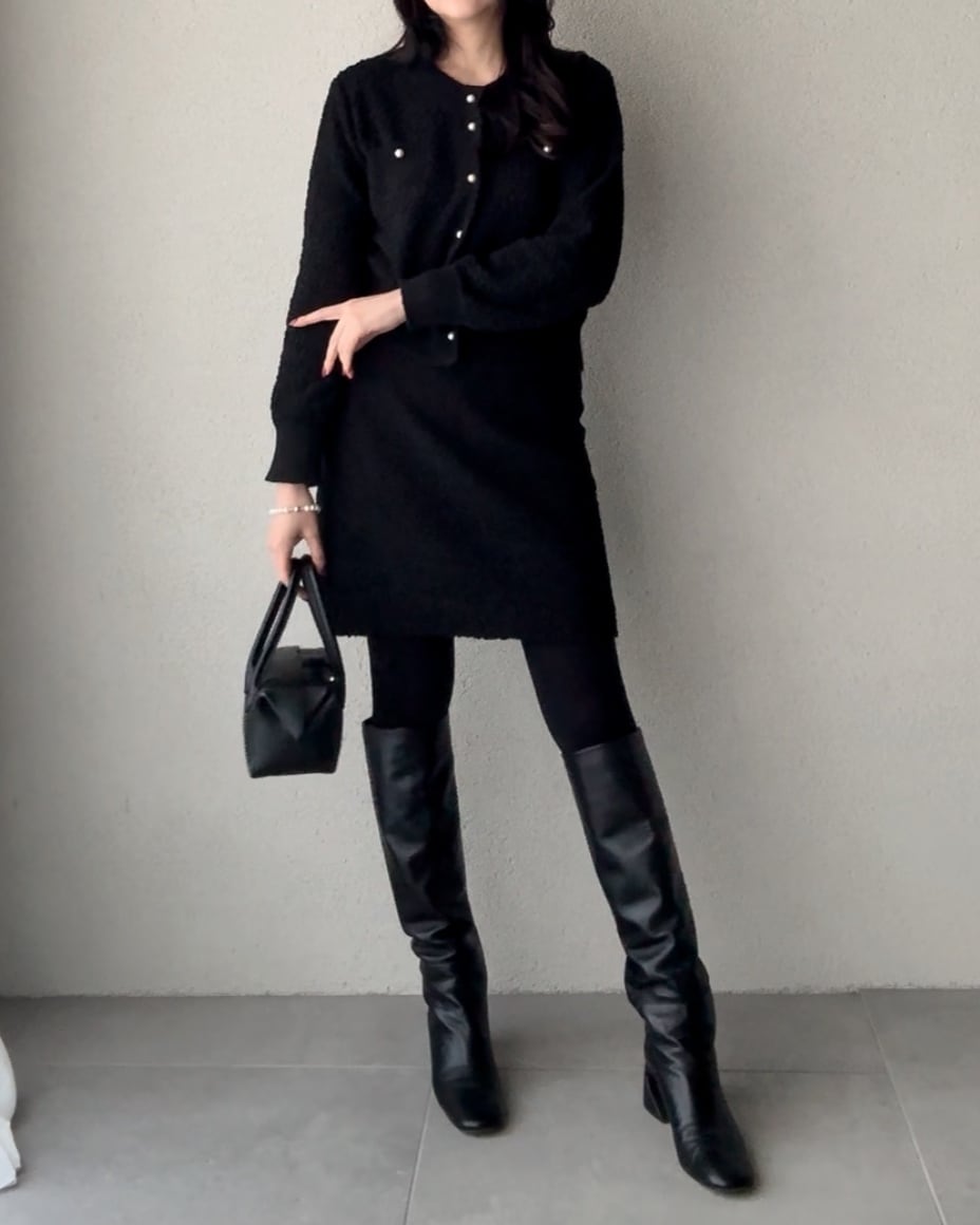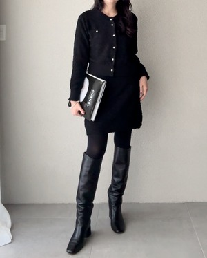 優しい肌触りのニットツイードのセットアップ。