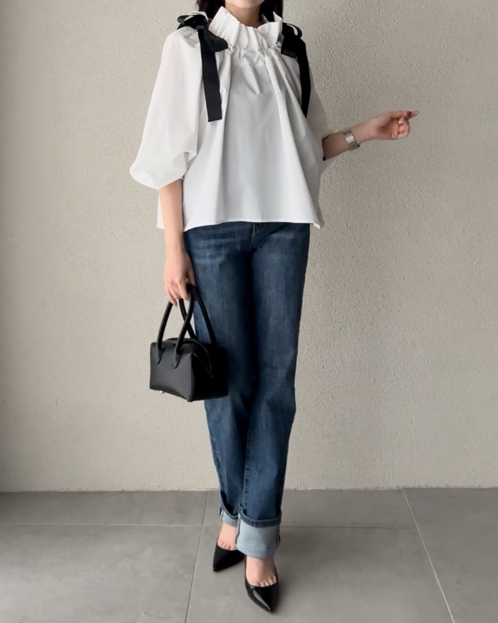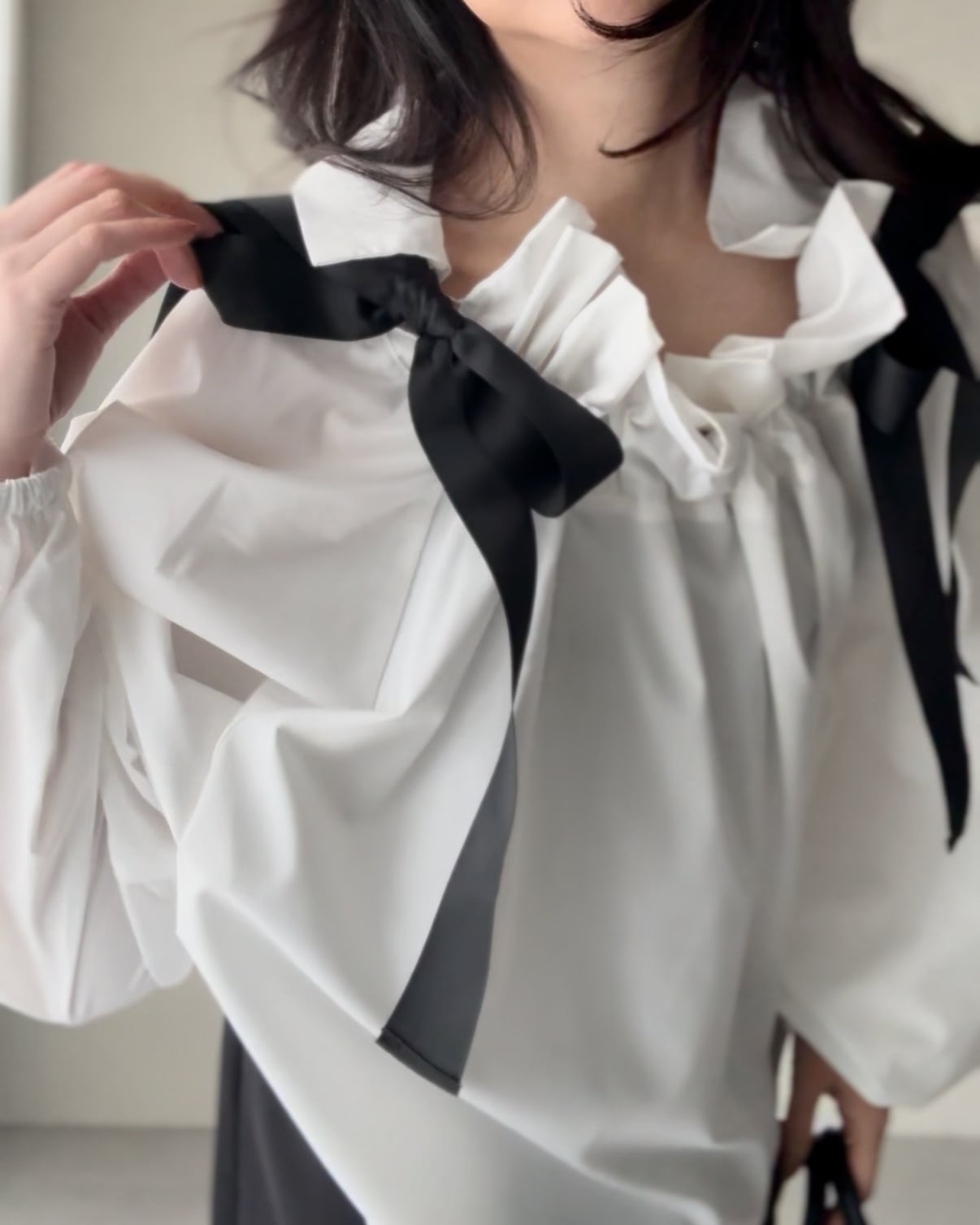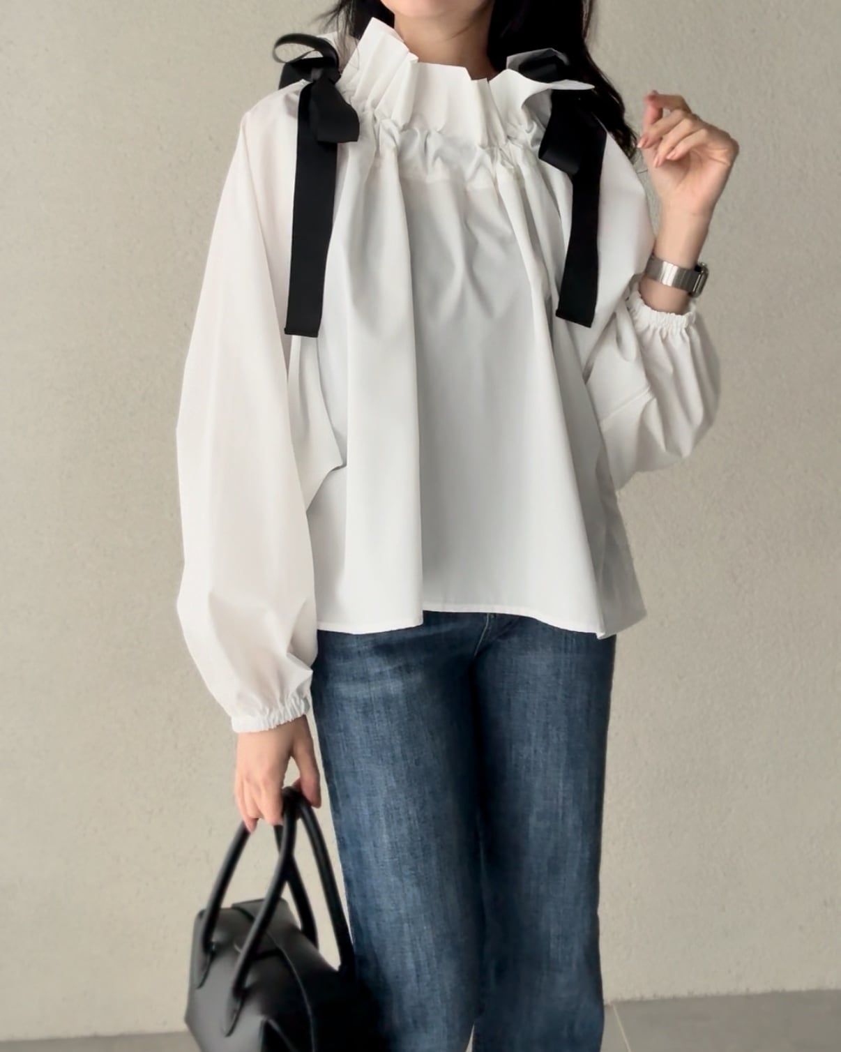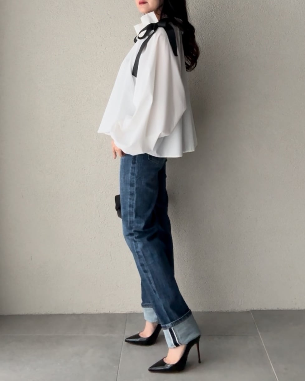 立体的な襟が生まれ、顔周りがぐっと華やかに。