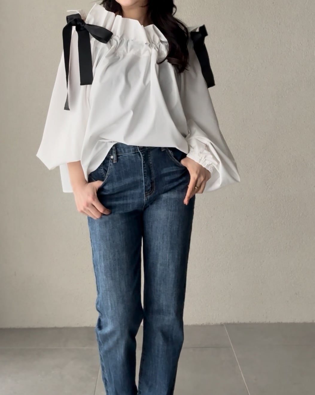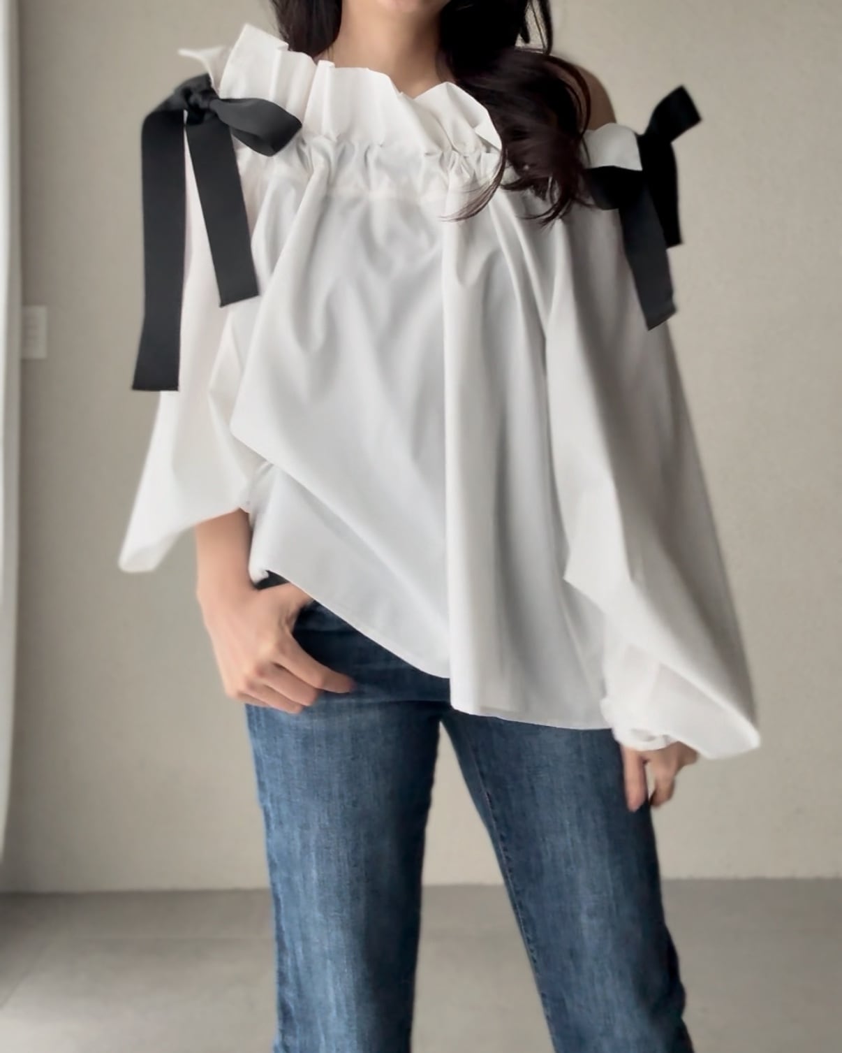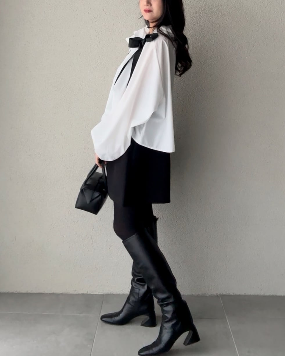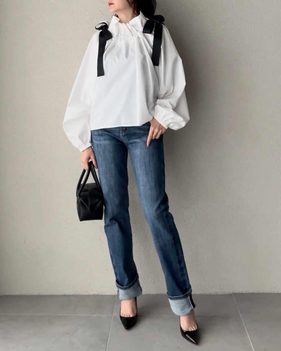 立体的な襟が生まれ、顔周りがぐっと華やかに。