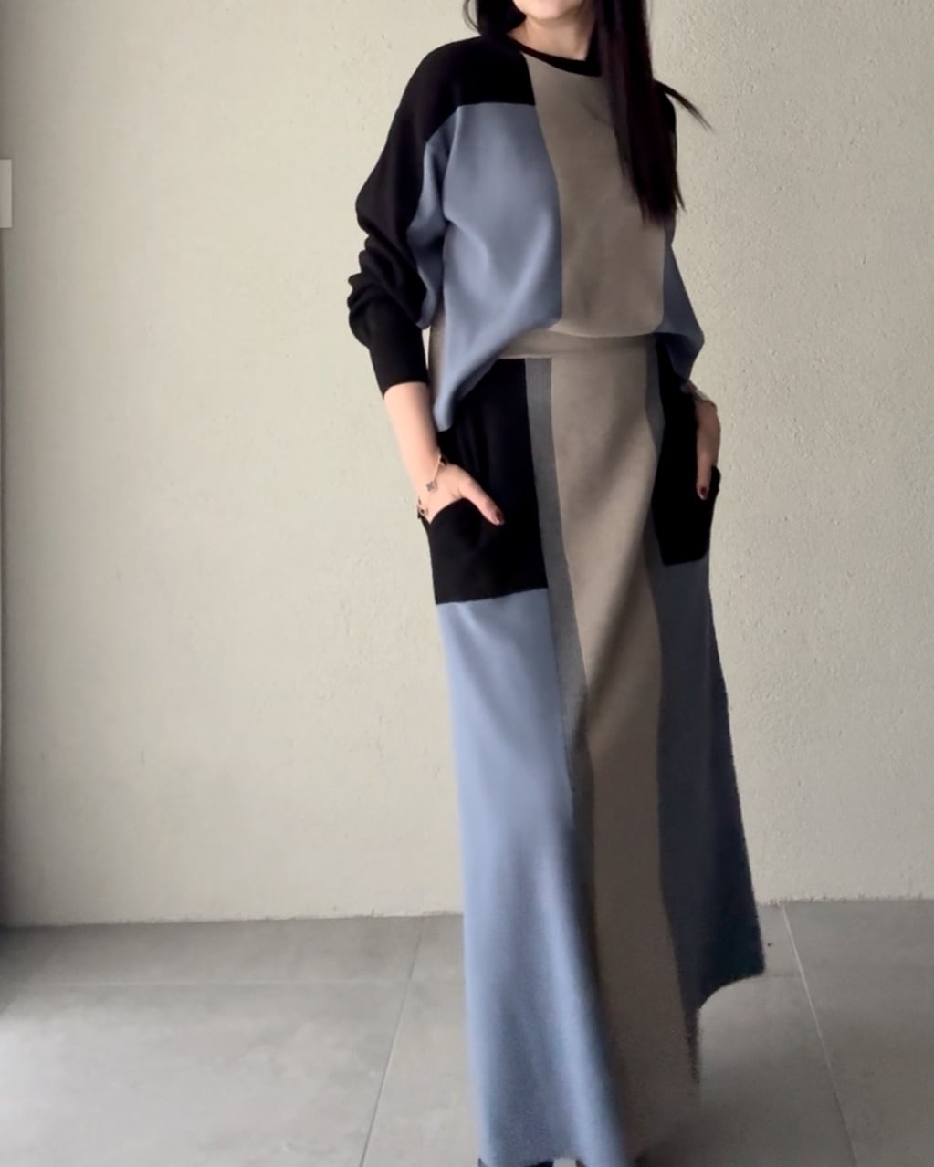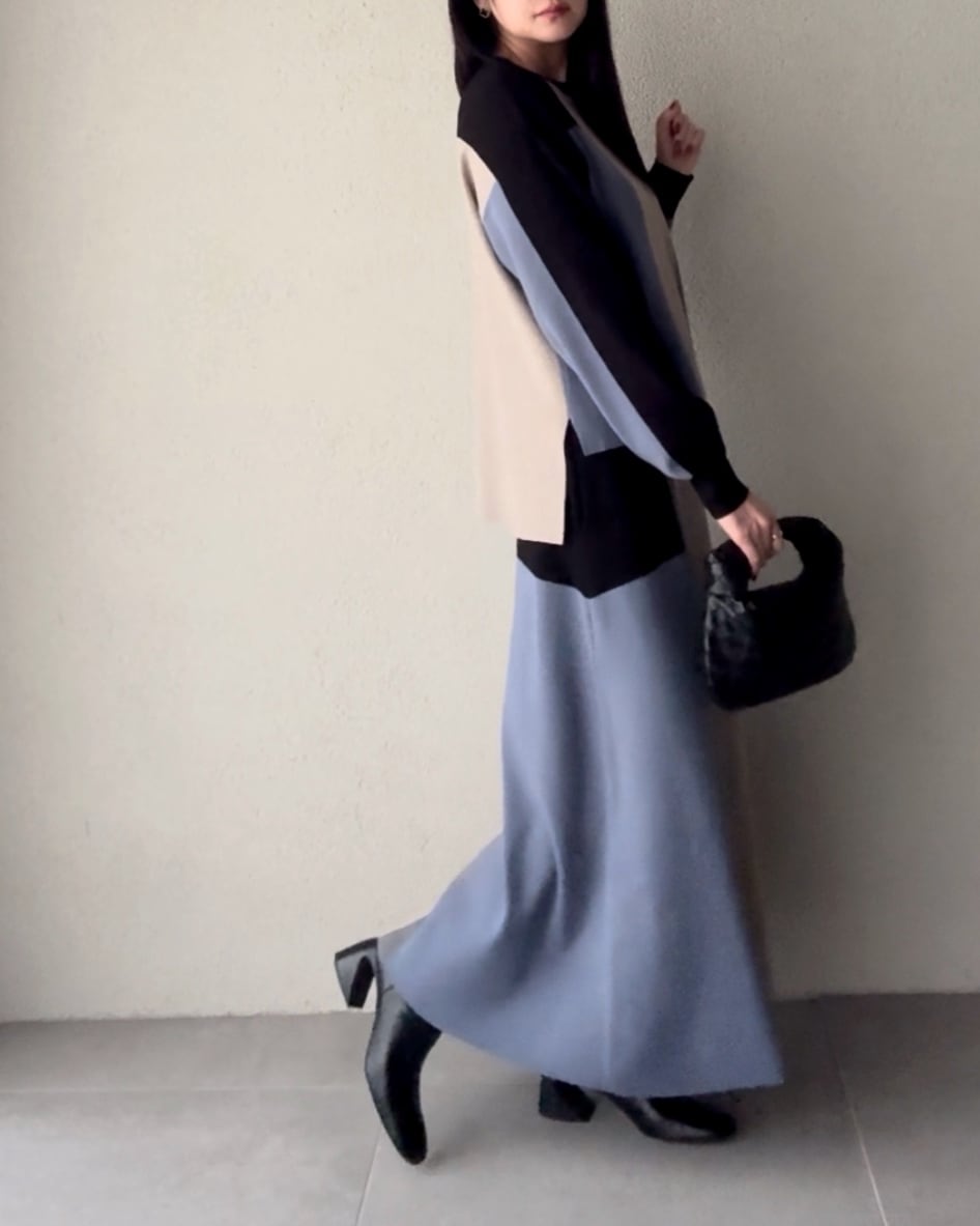 モダンな印象を与えるロングスカート。