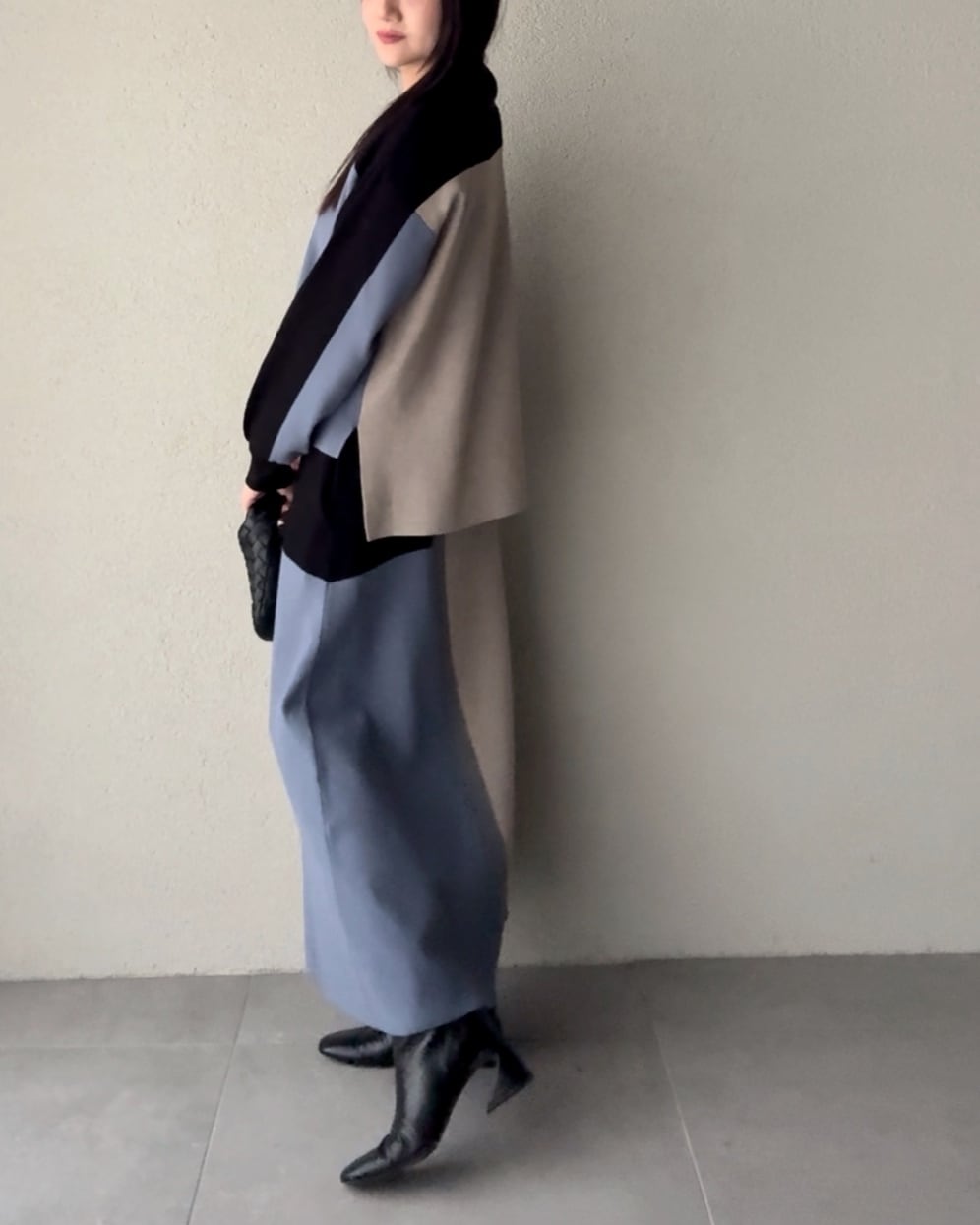 セミフレアなシルエットが縦ラインを
