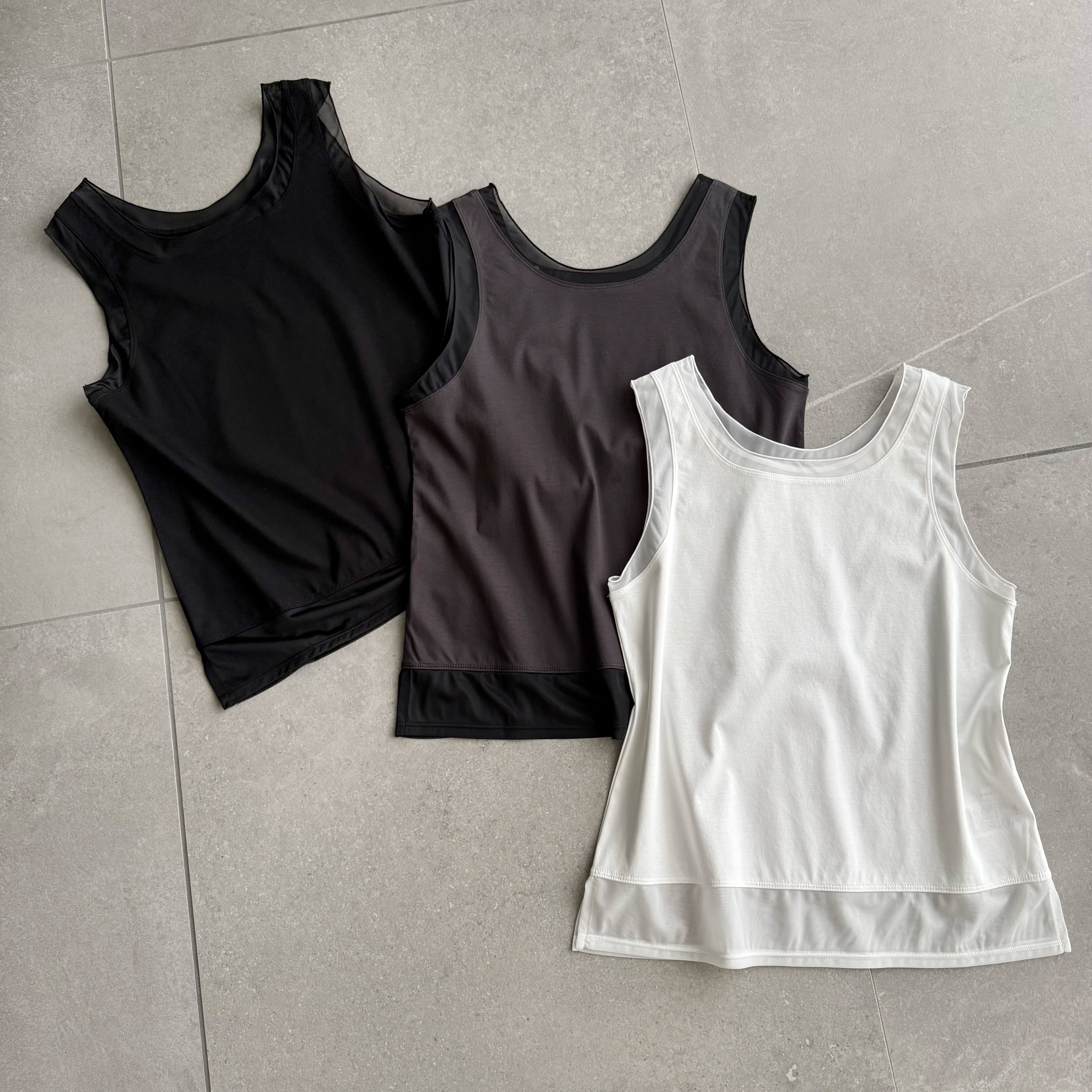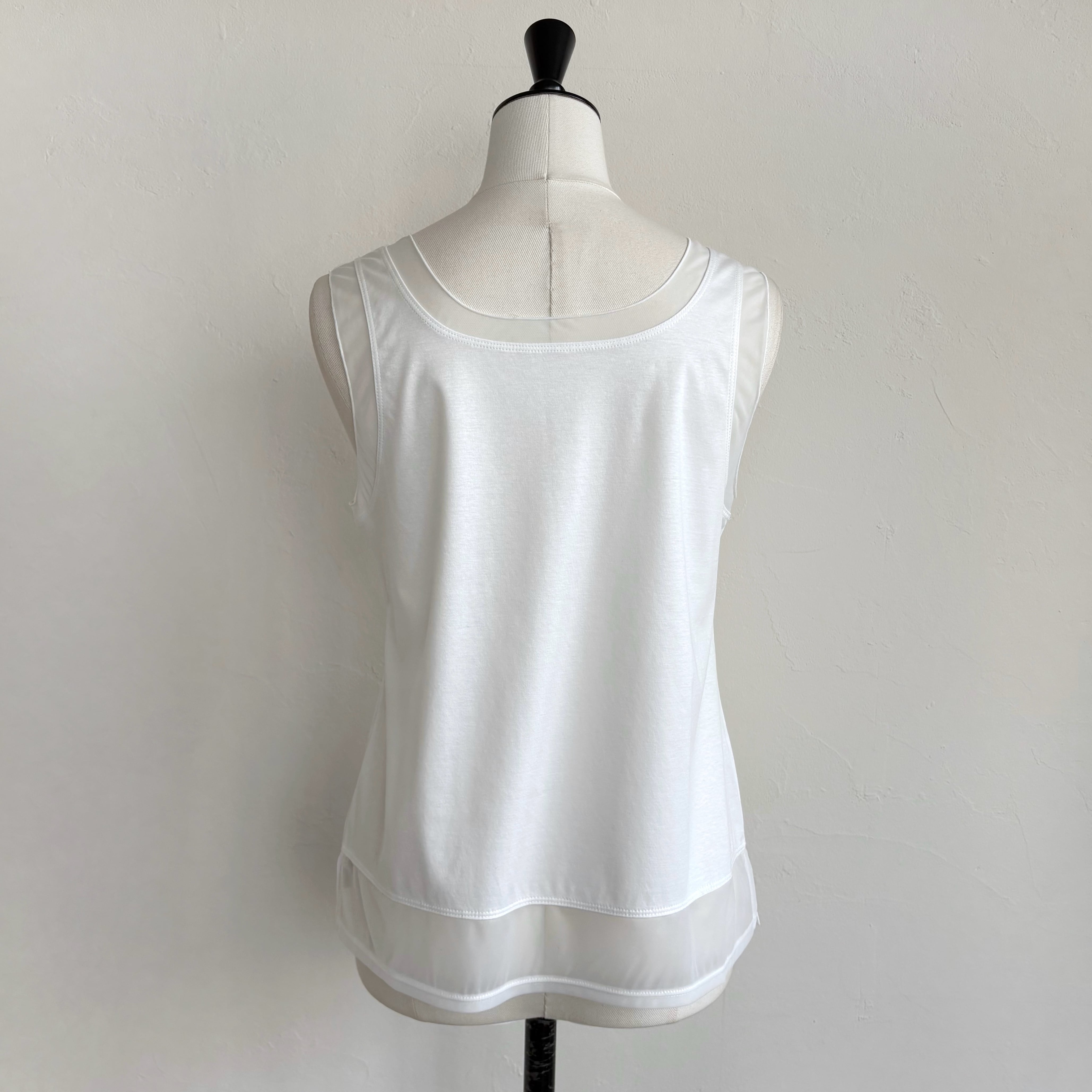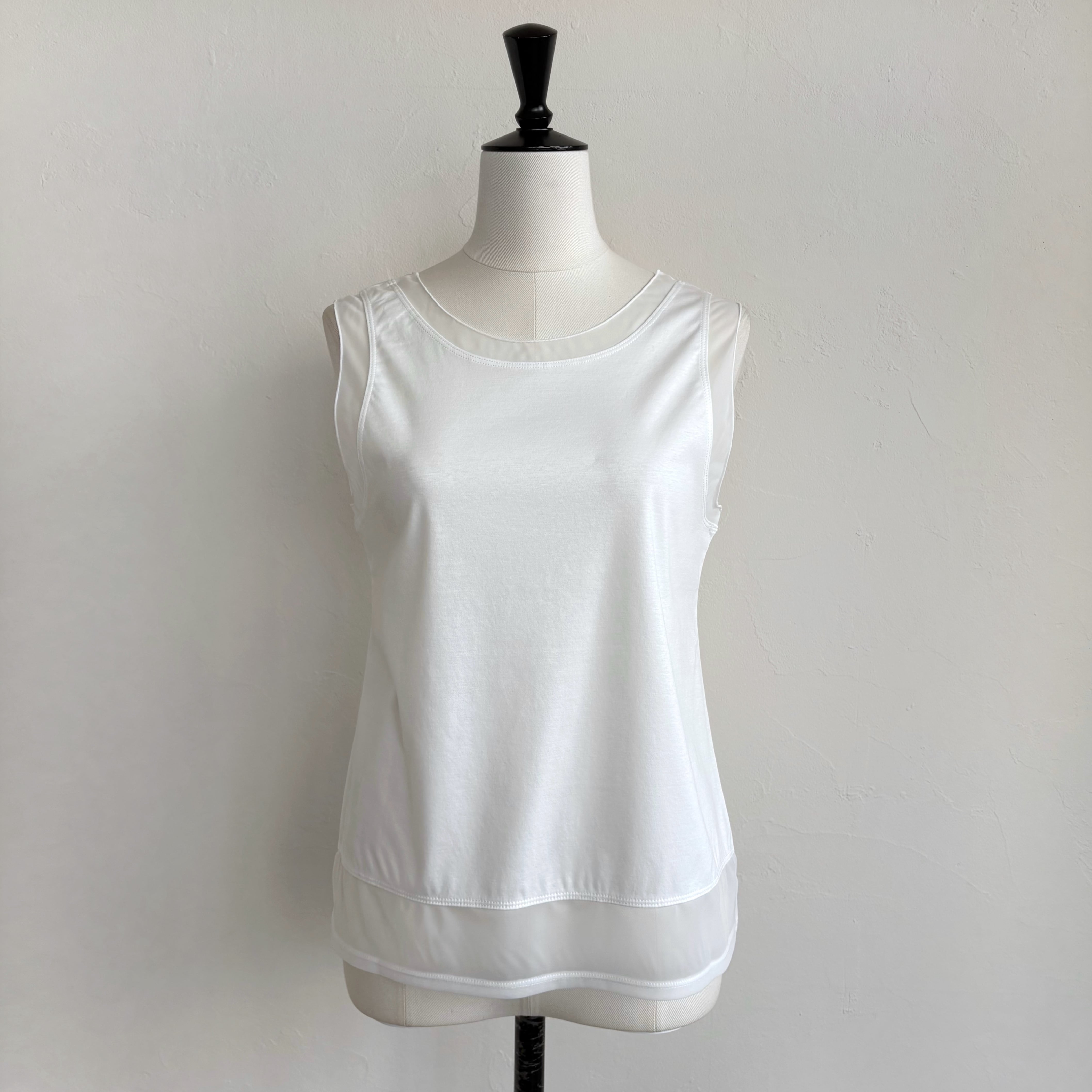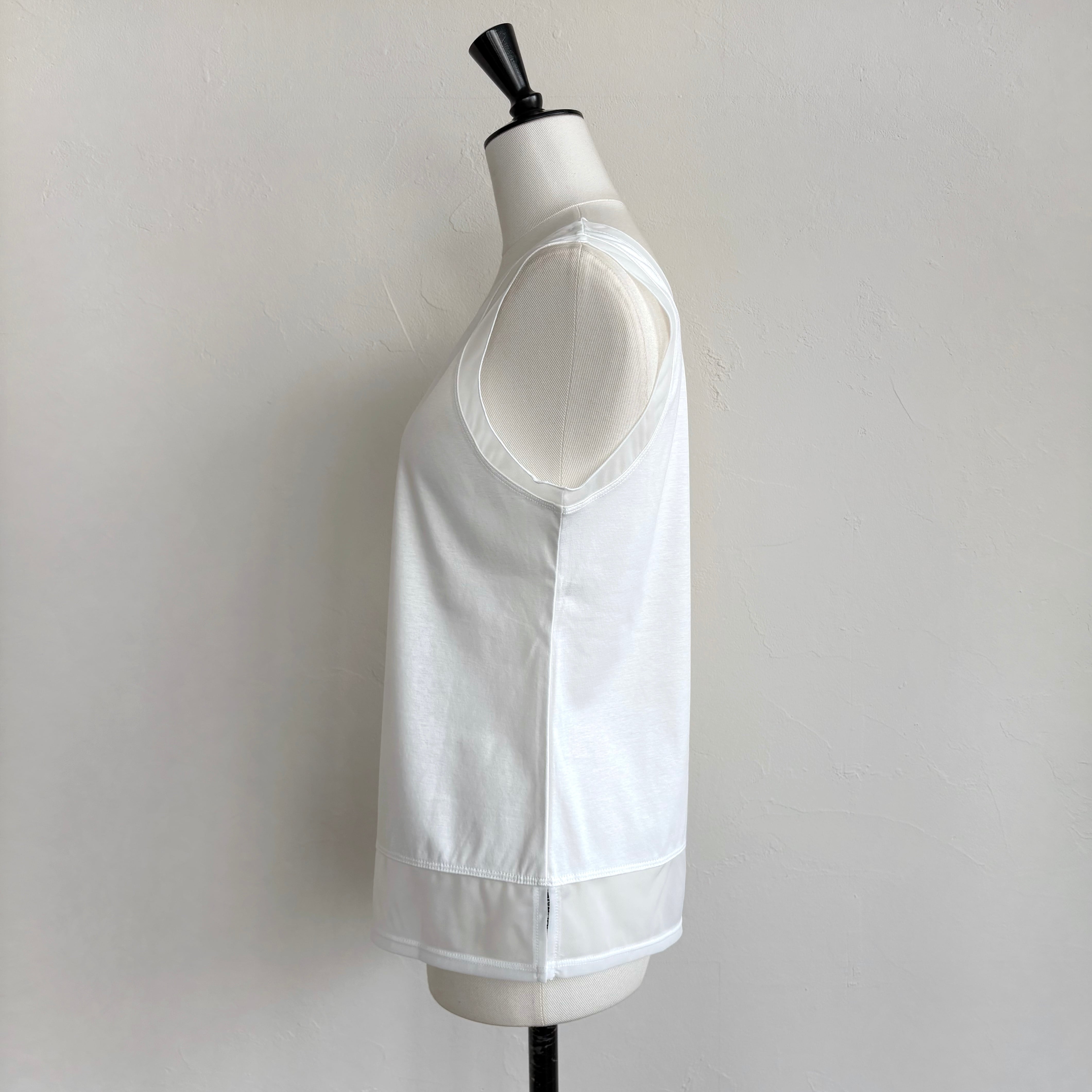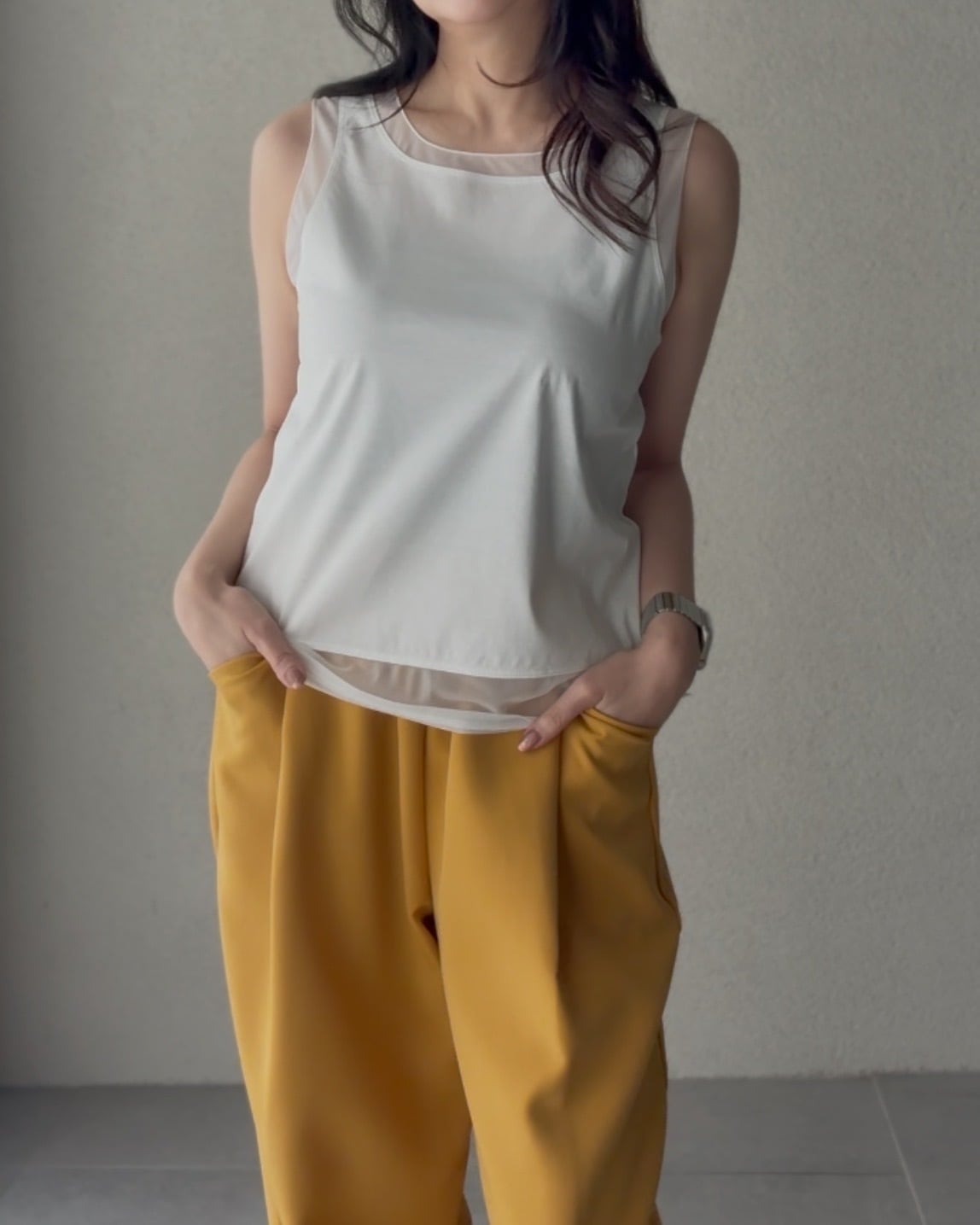 布帛素材に切り替えたデザイン性の高いタンクトップ。