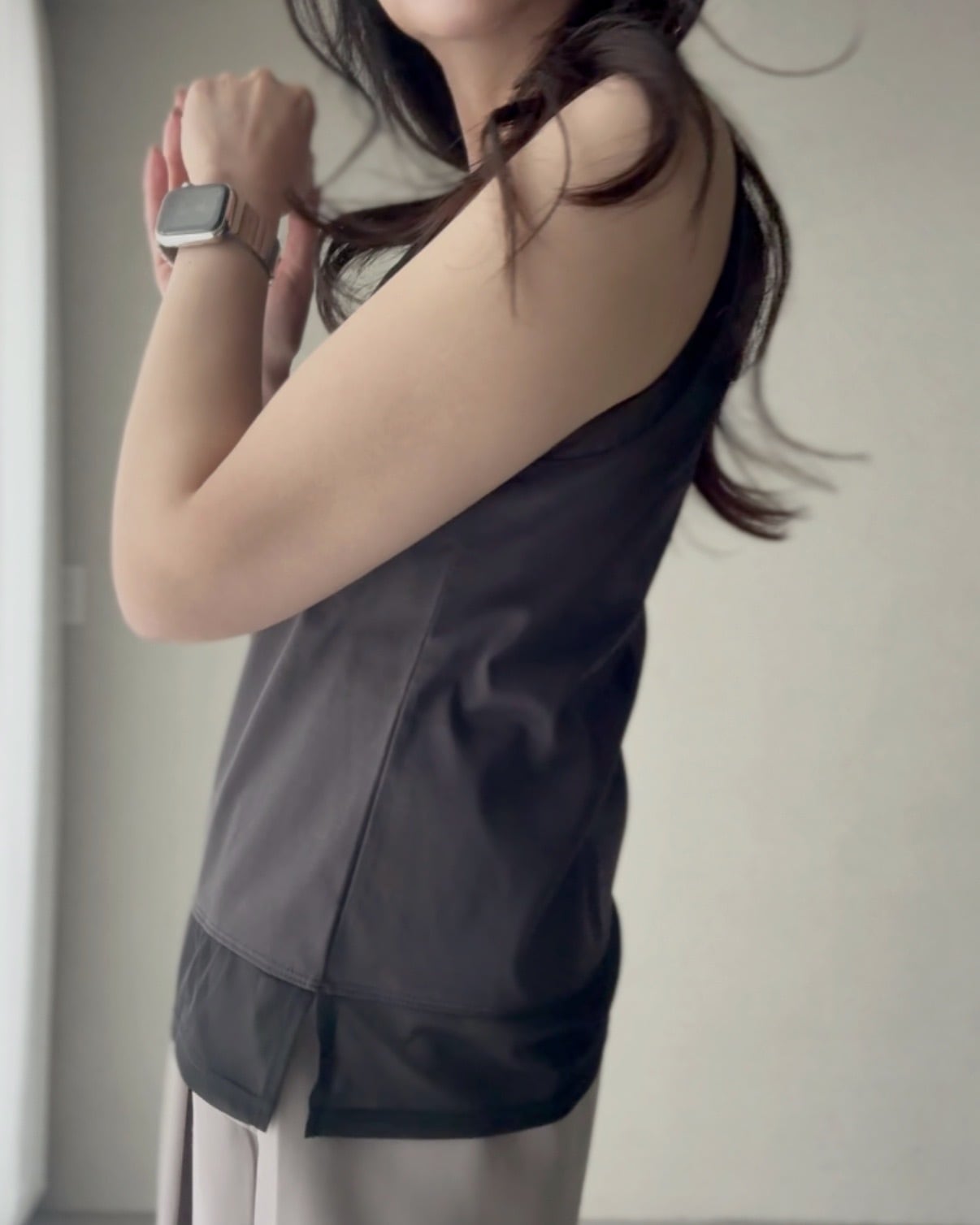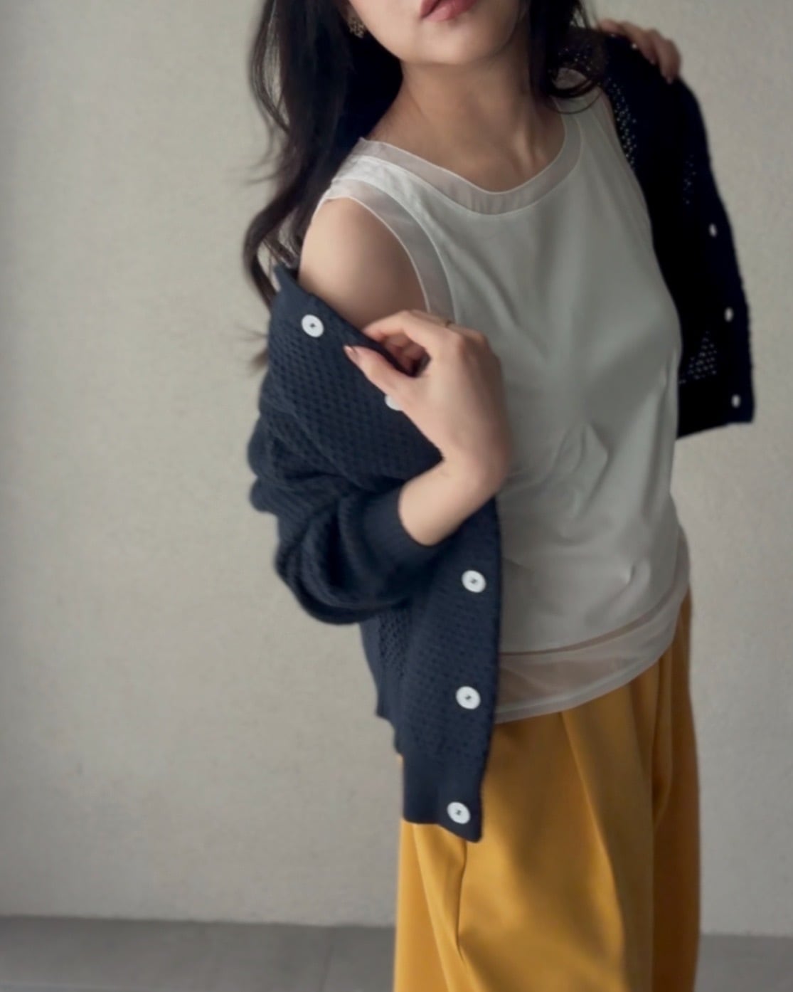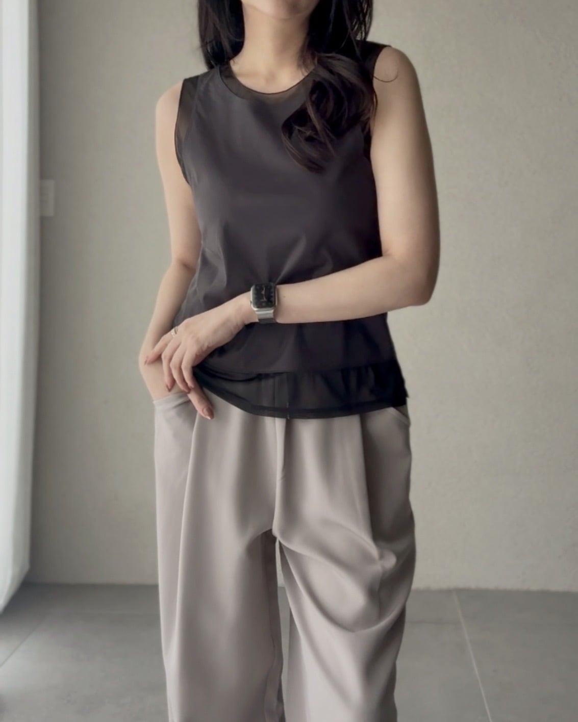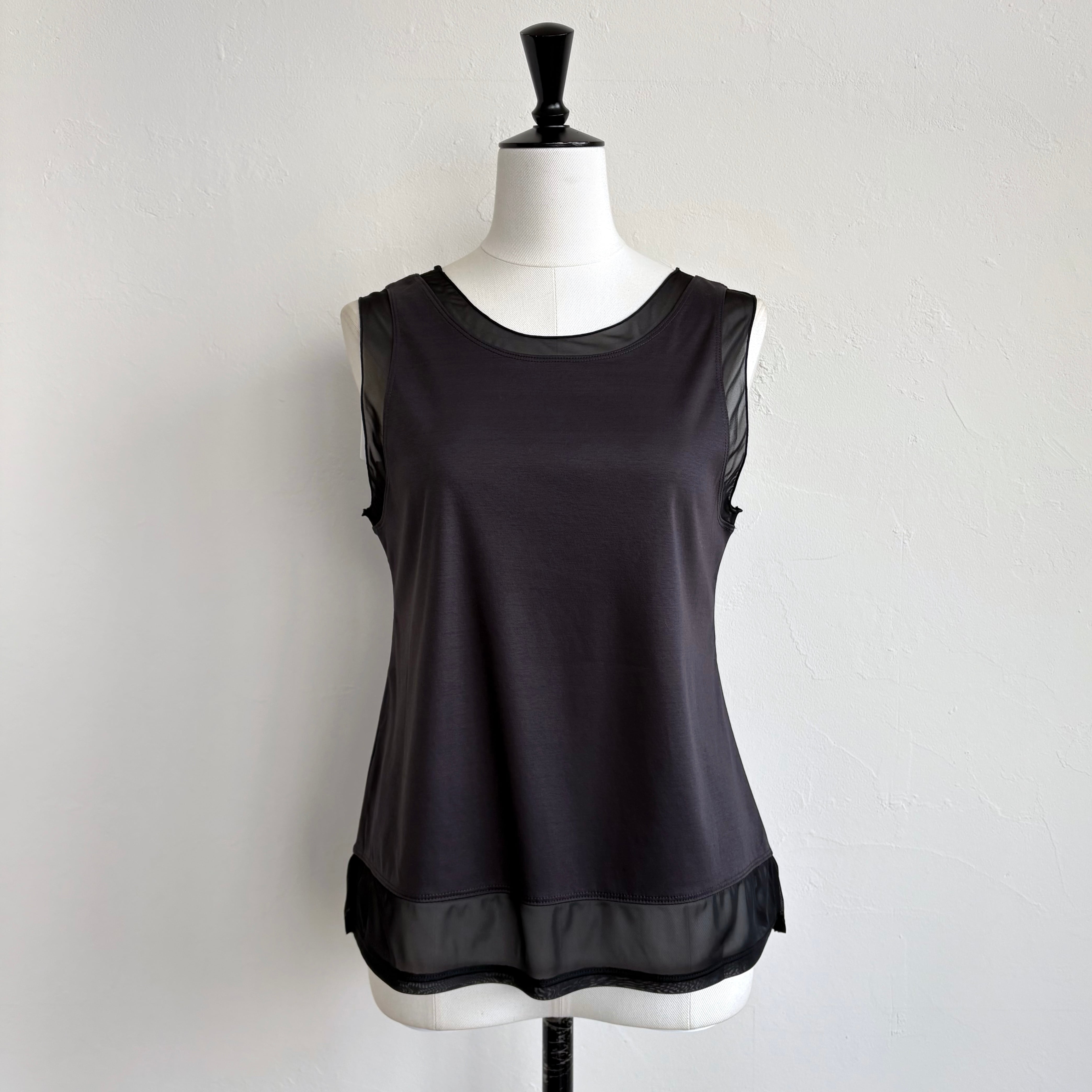 布帛素材に切り替えたデザイン性の高いタンクトップ。