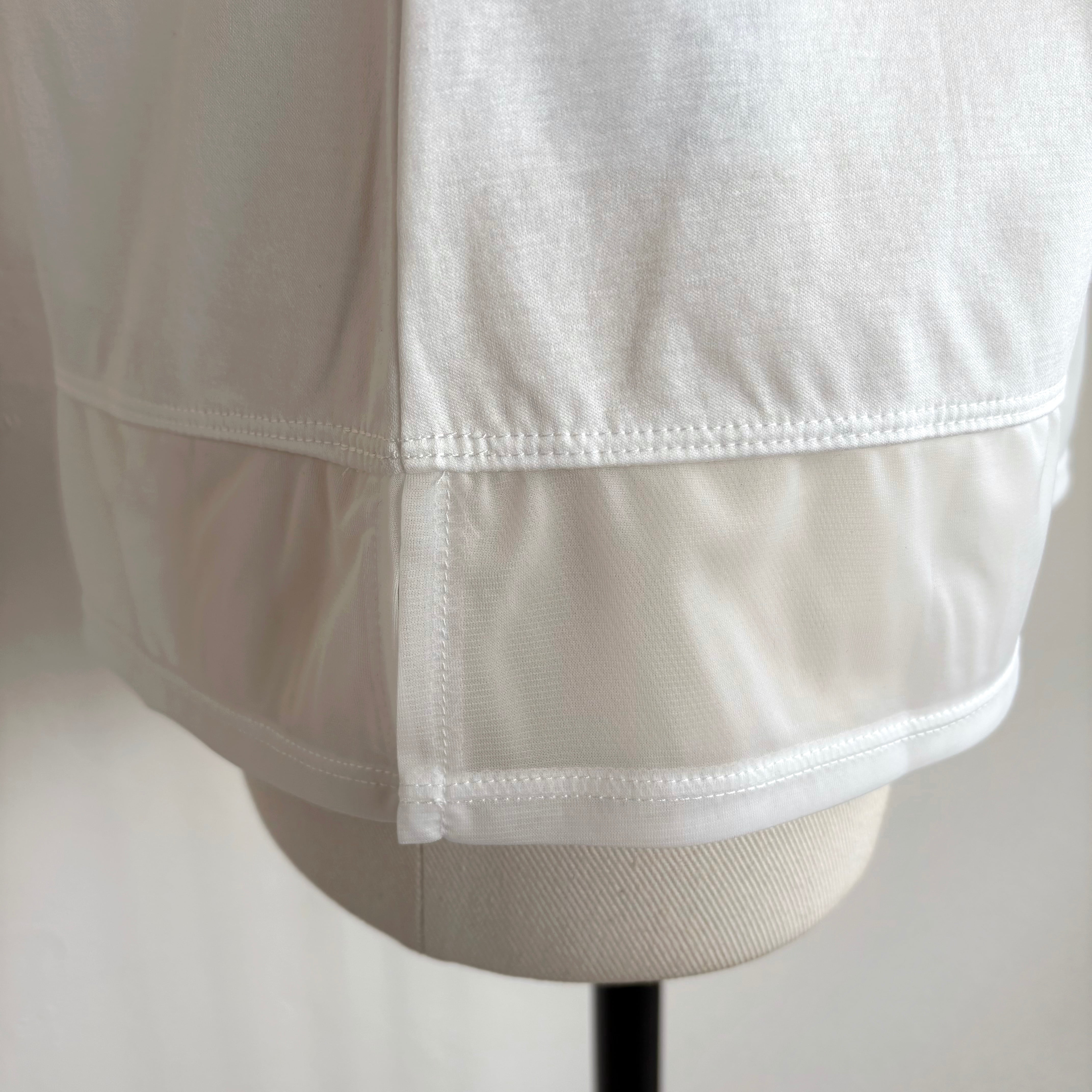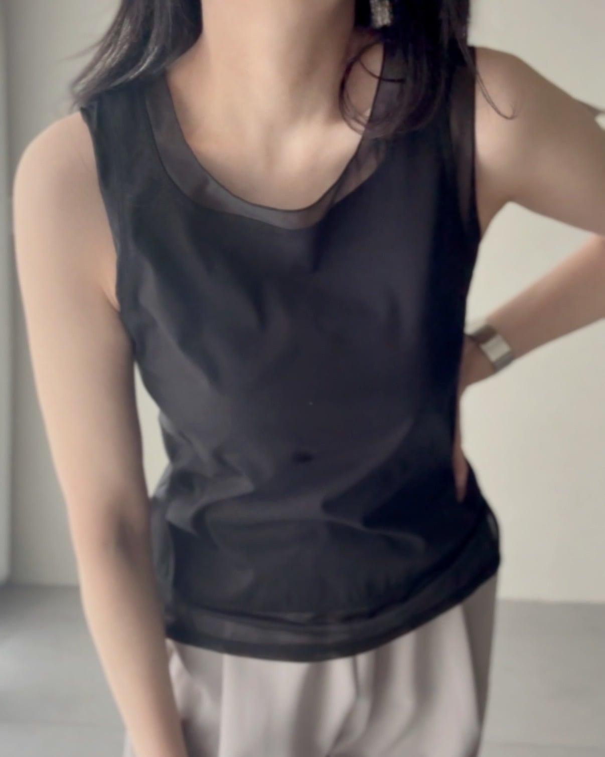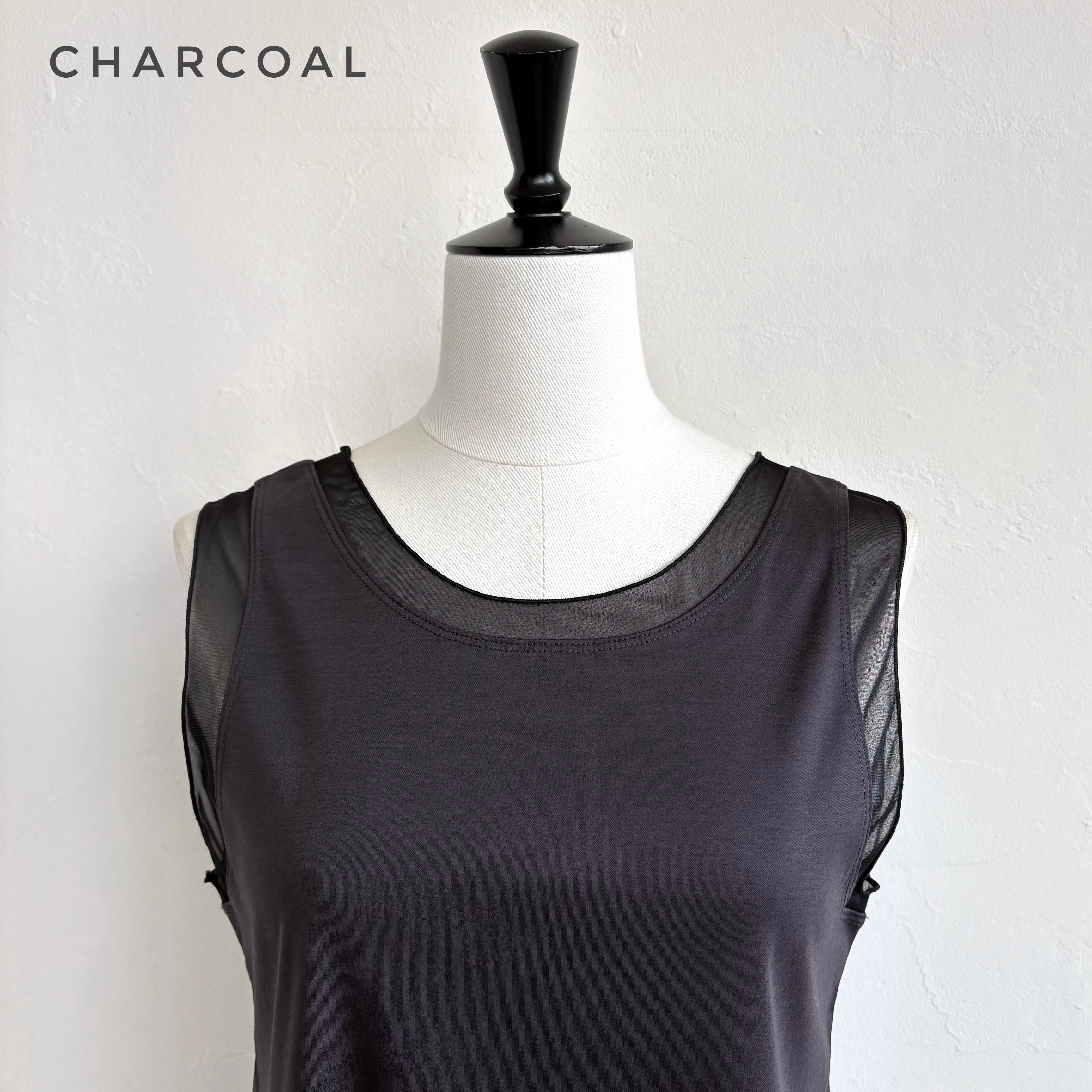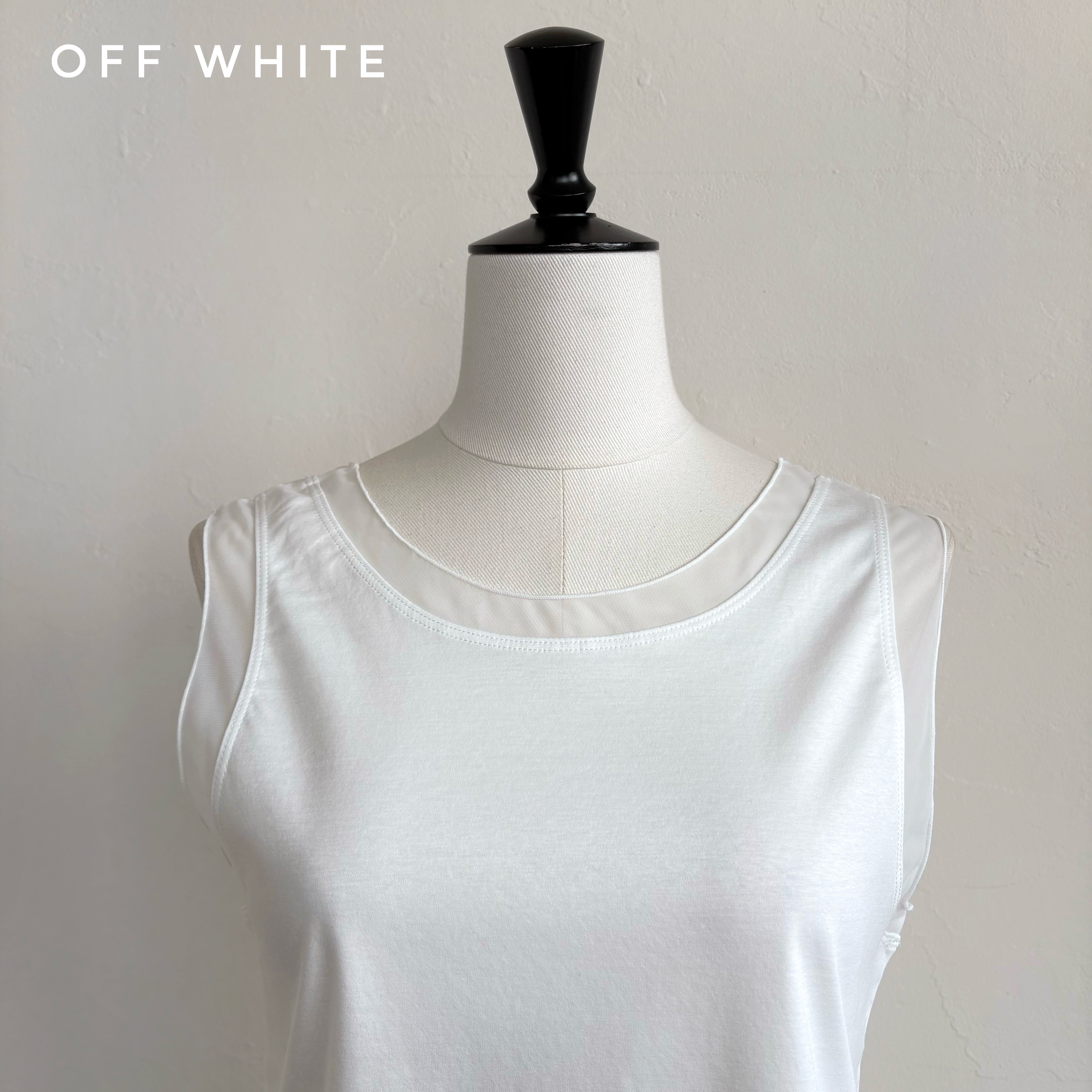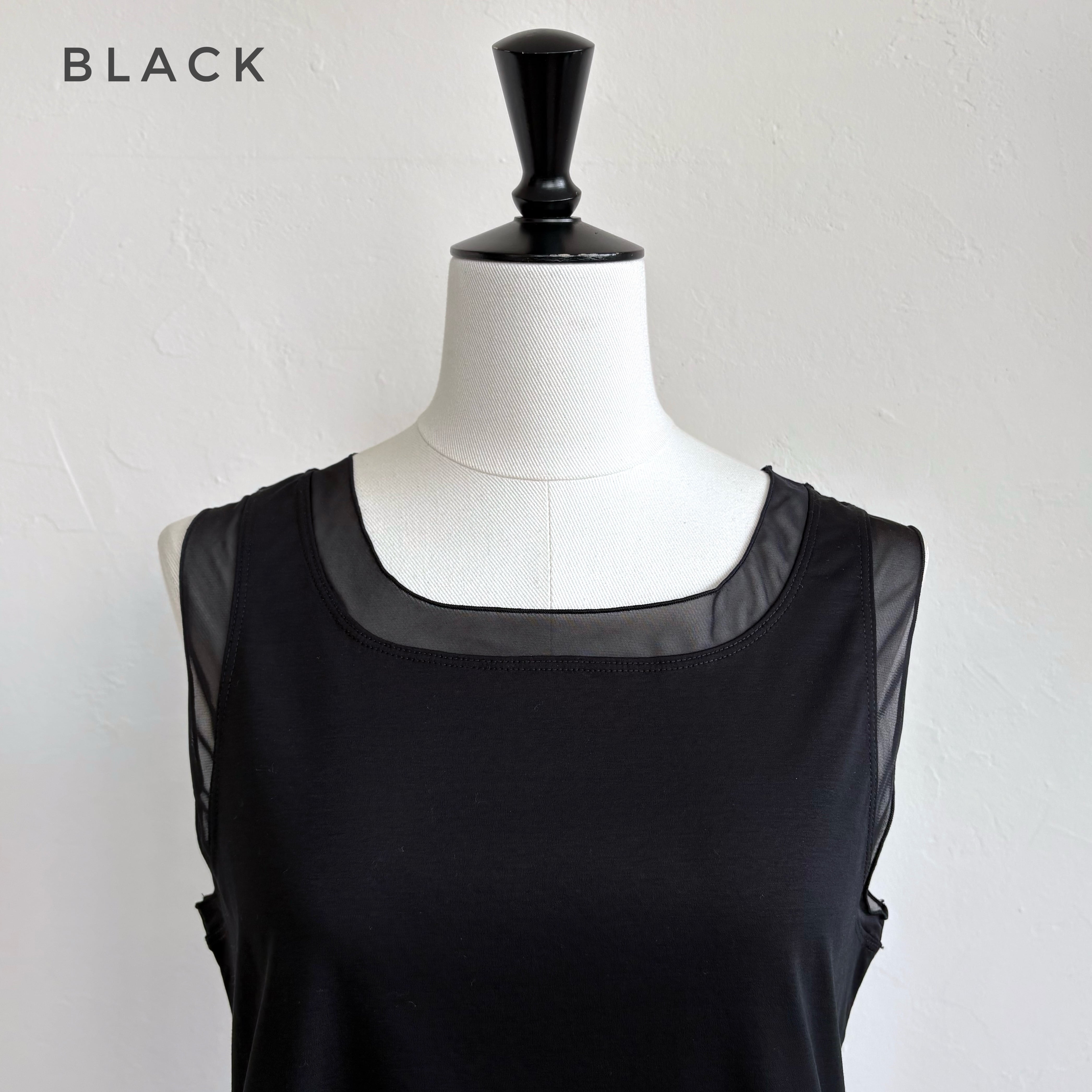 布帛素材に切り替えたデザイン性の高いタンクトップ。
