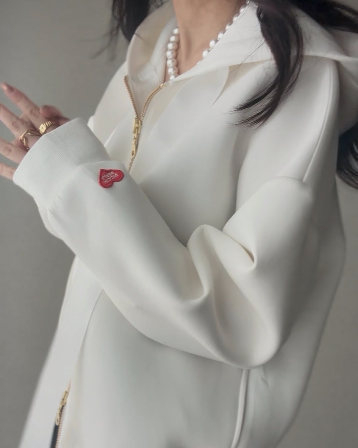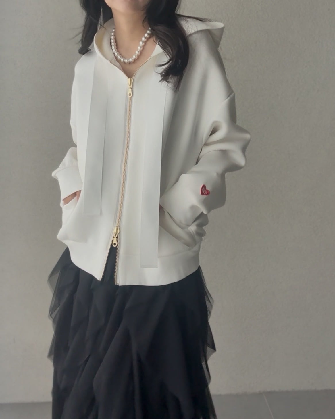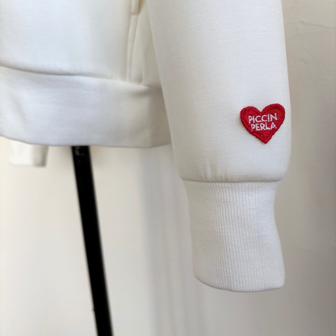 左袖口には小さな赤いハートの