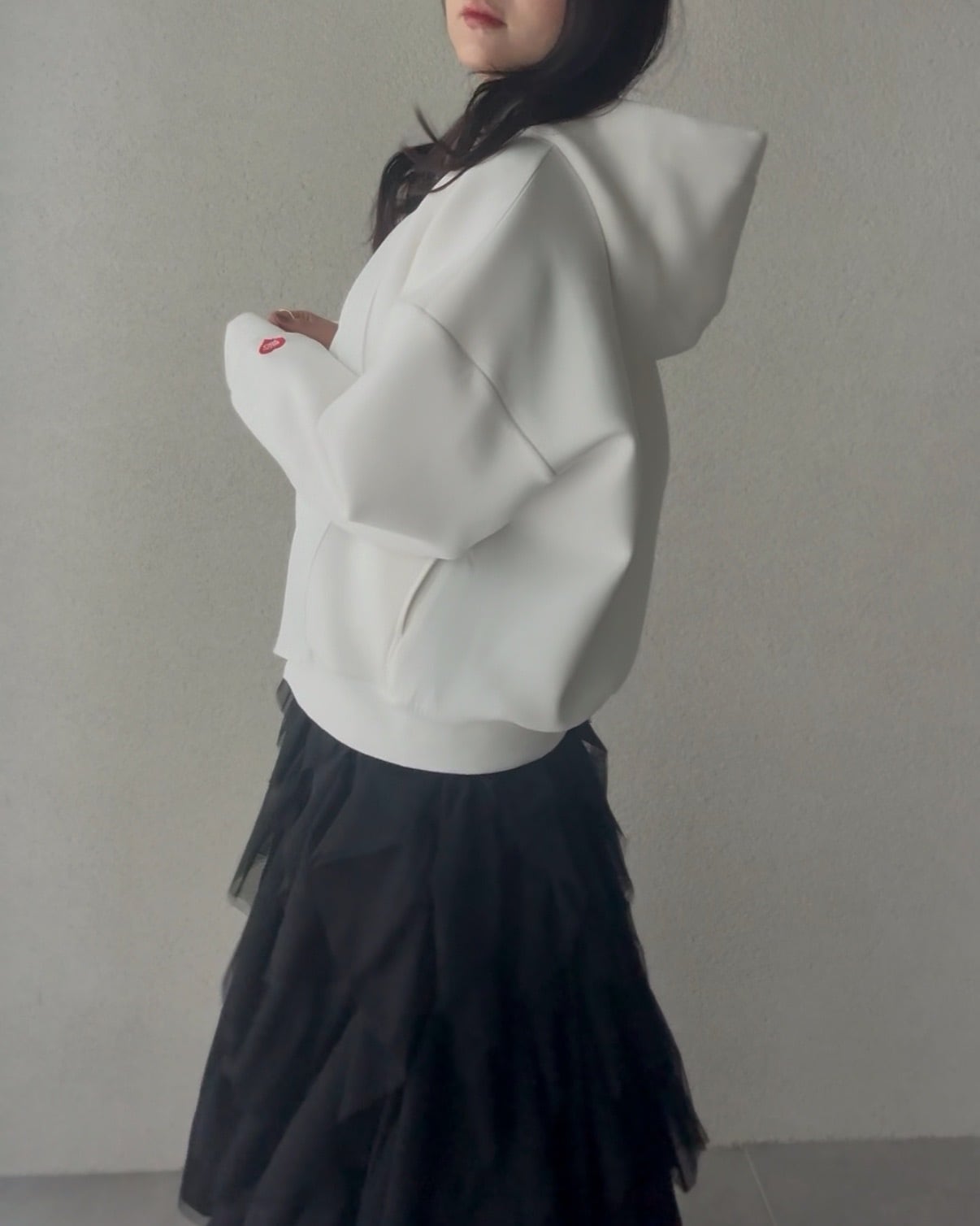 オーバーサイズのフーディー。