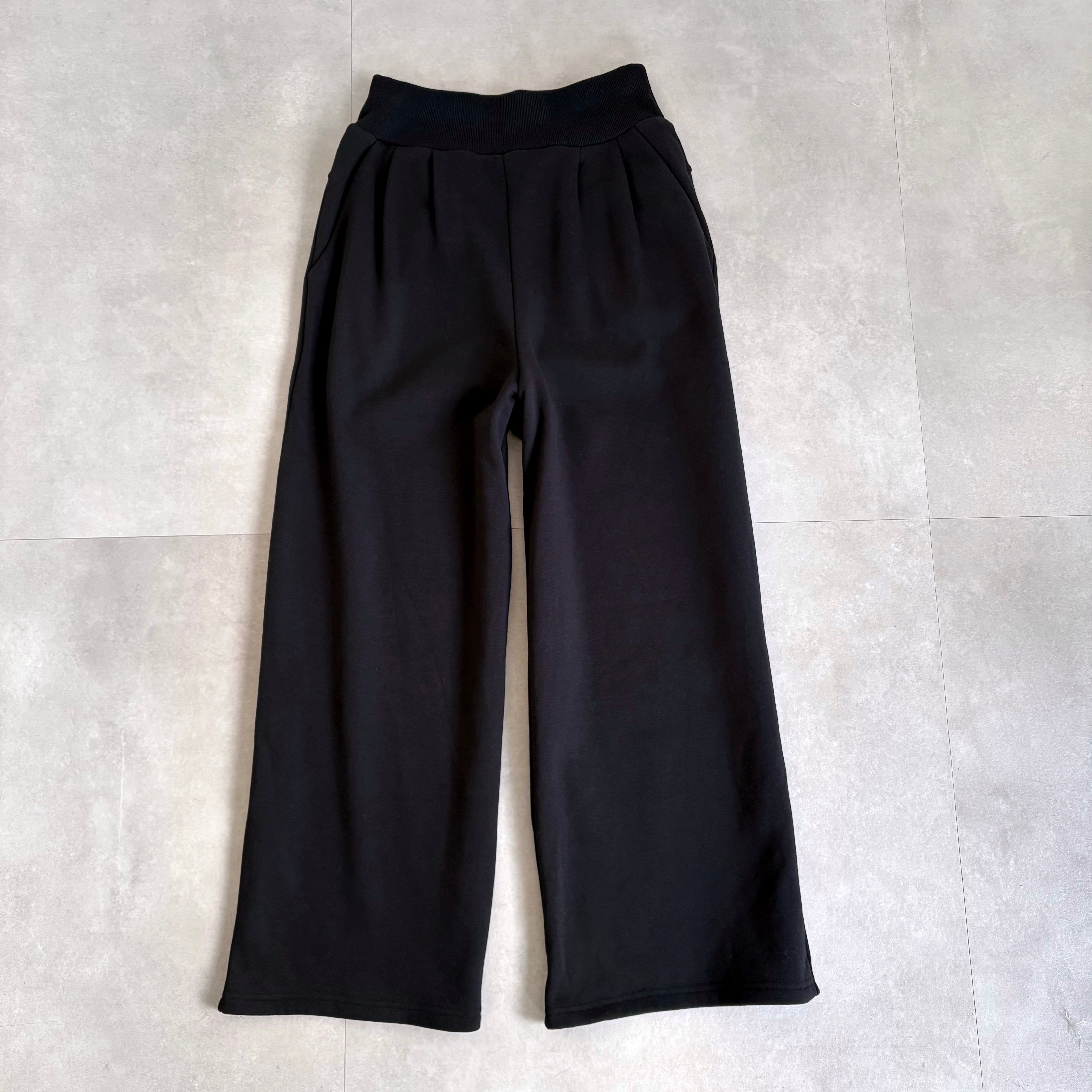 ハイウエストのワイドパンツ。