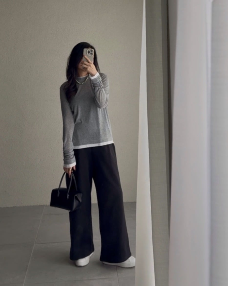 ウエストは長めのリブに切り替えて