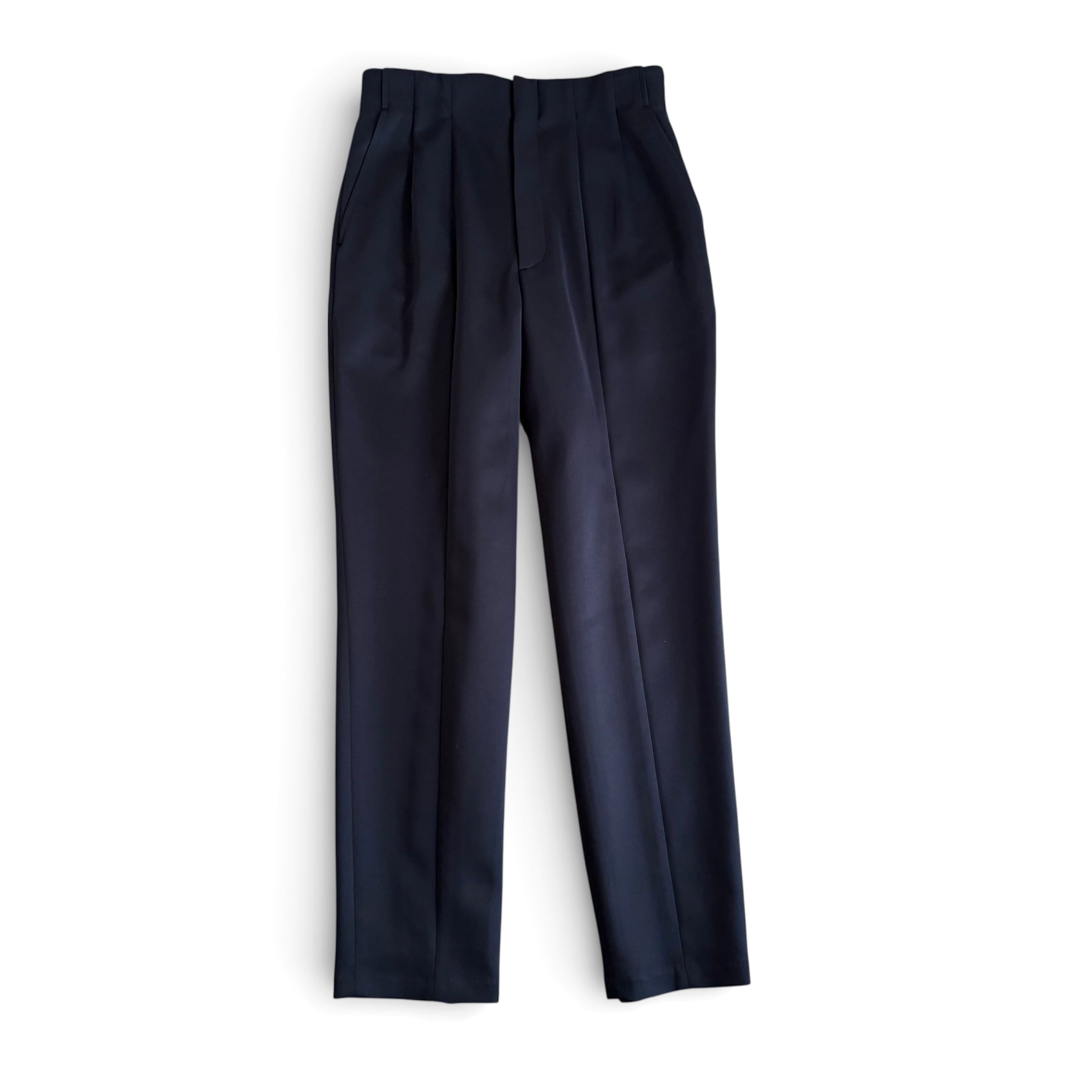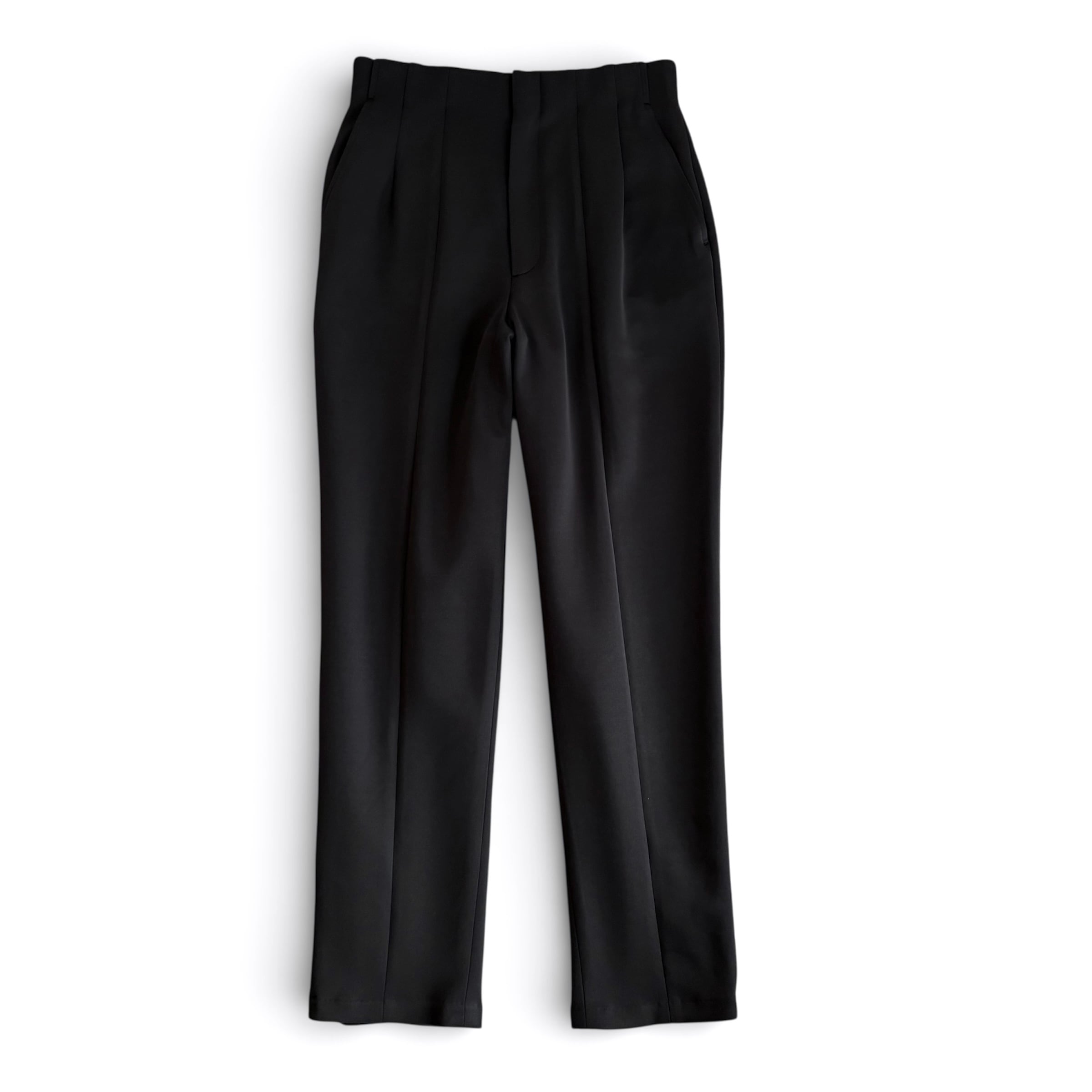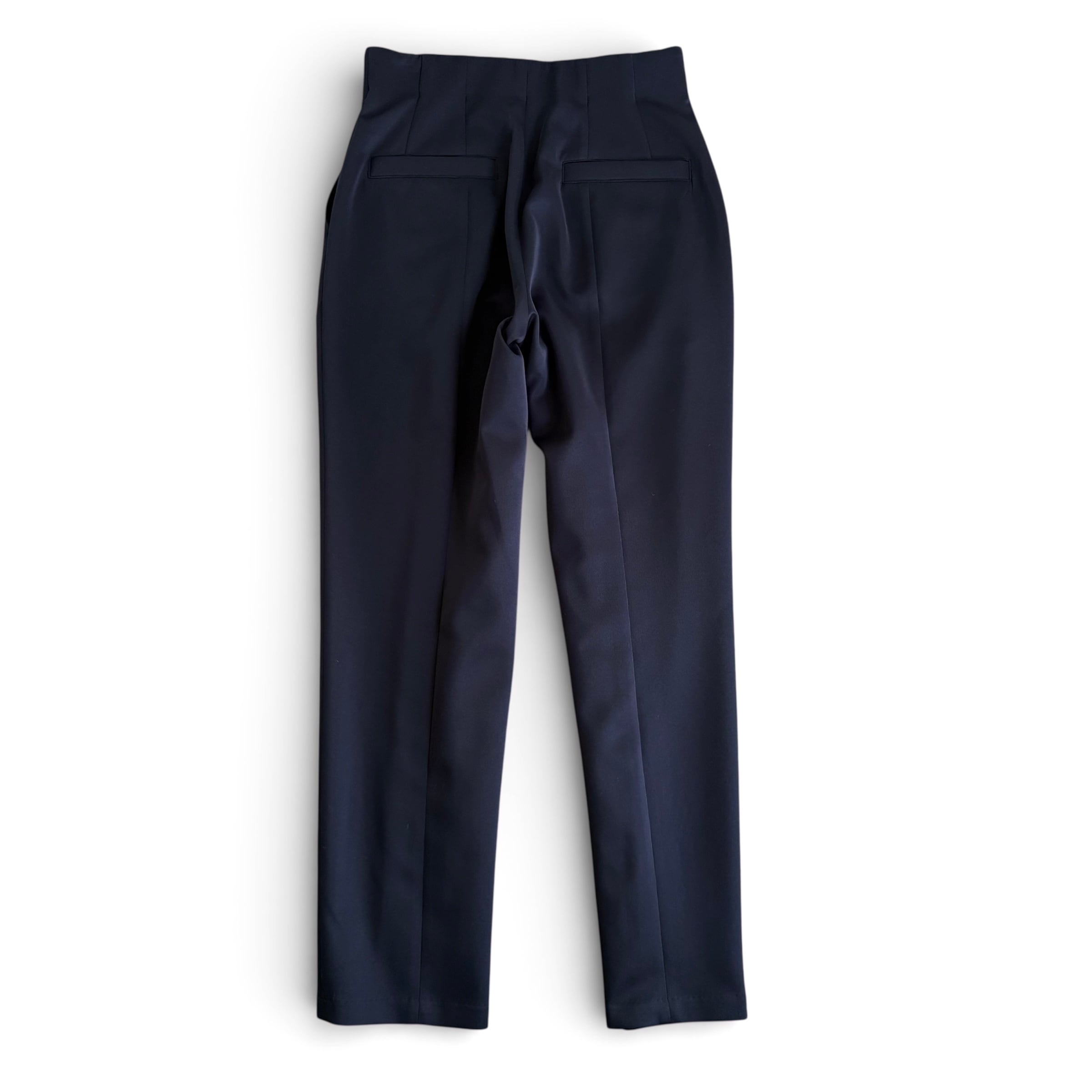 ハイウエストのテーパードパンツ。