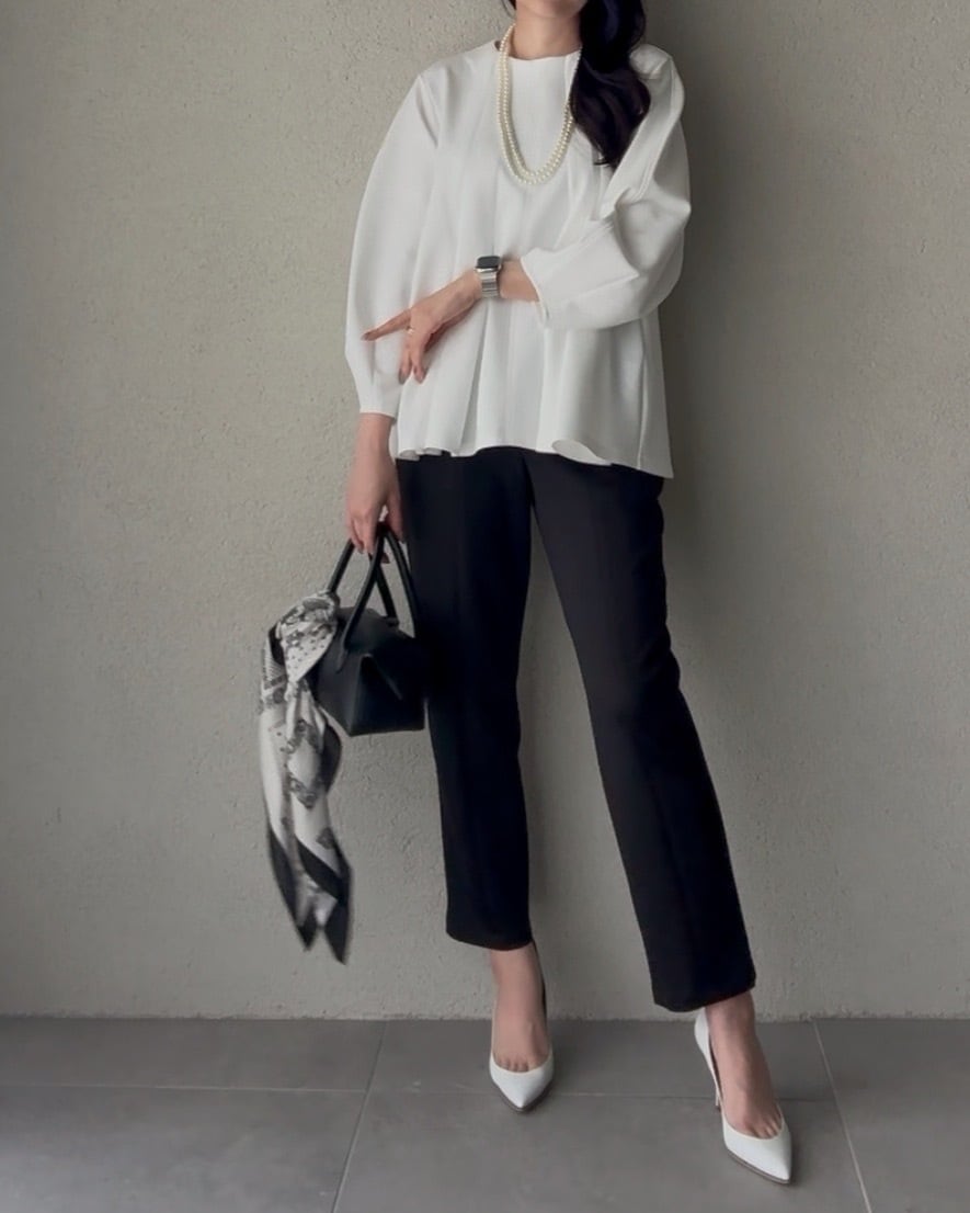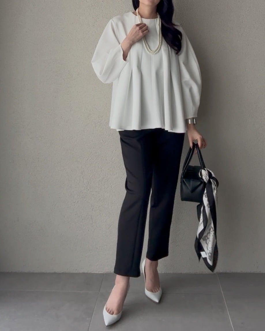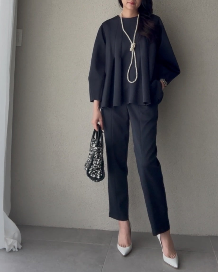 同素材のブラウスとセットアップでお召しいただけます。