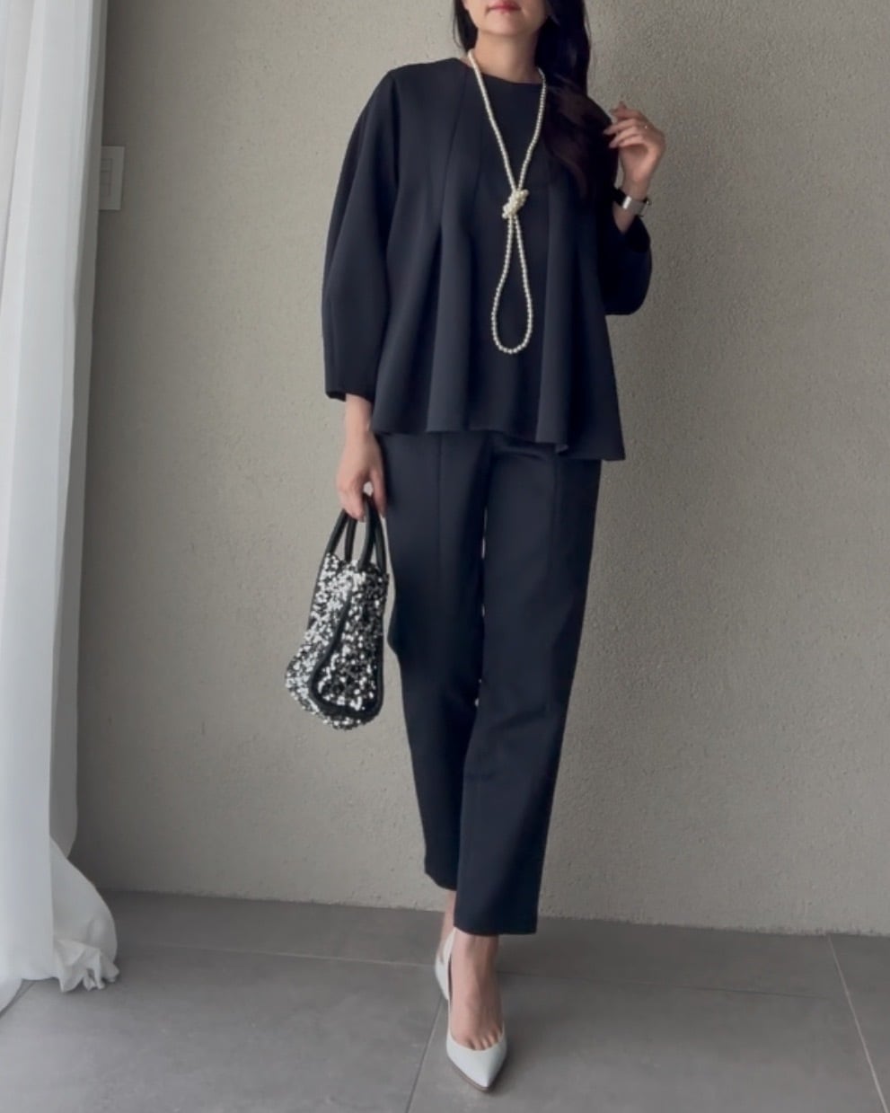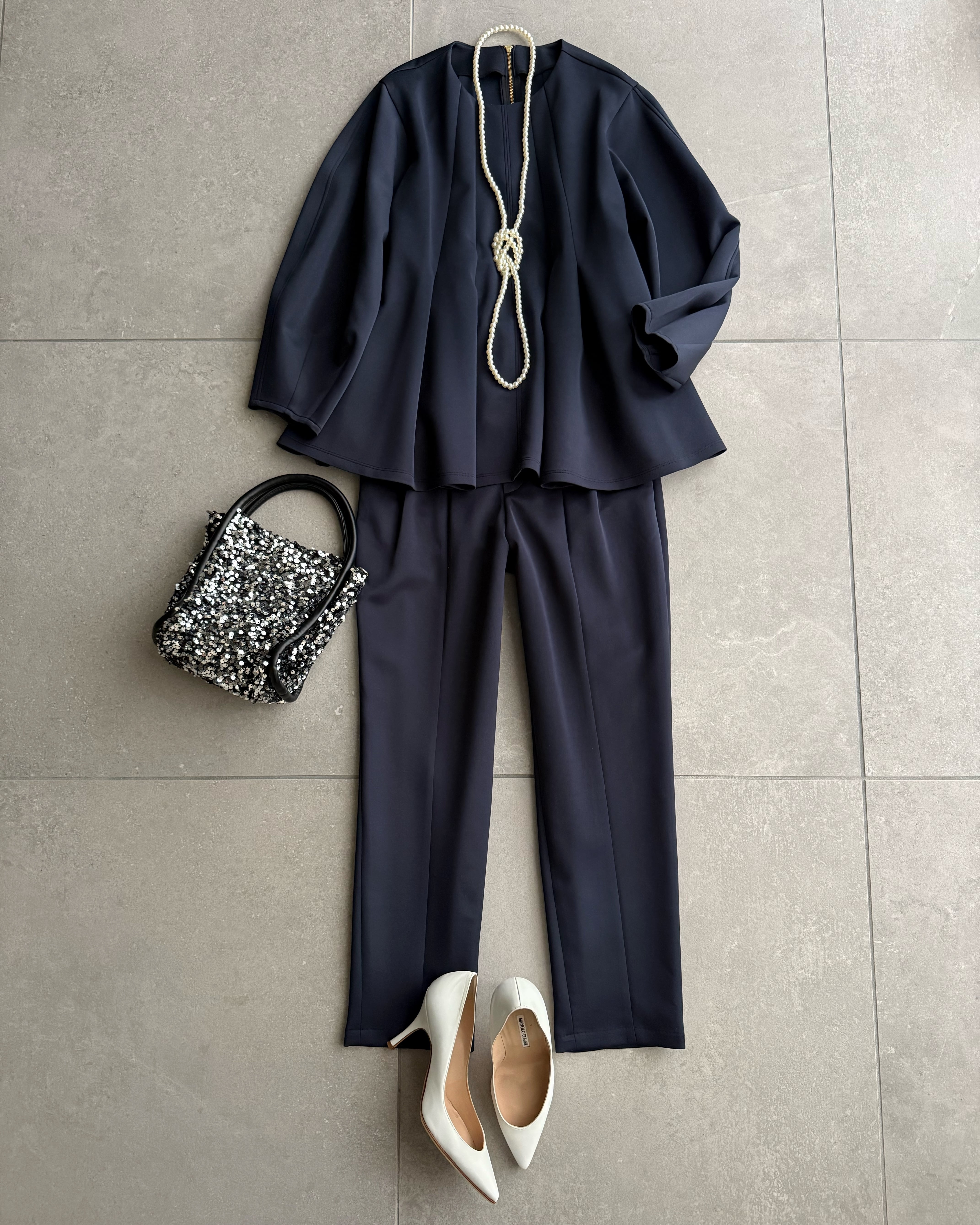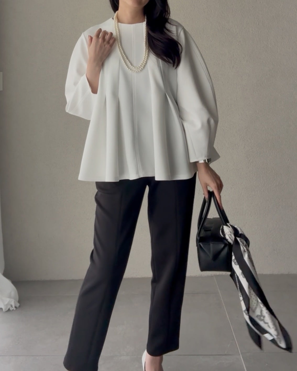 同素材のブラウスとセットアップでお召しいただけます。