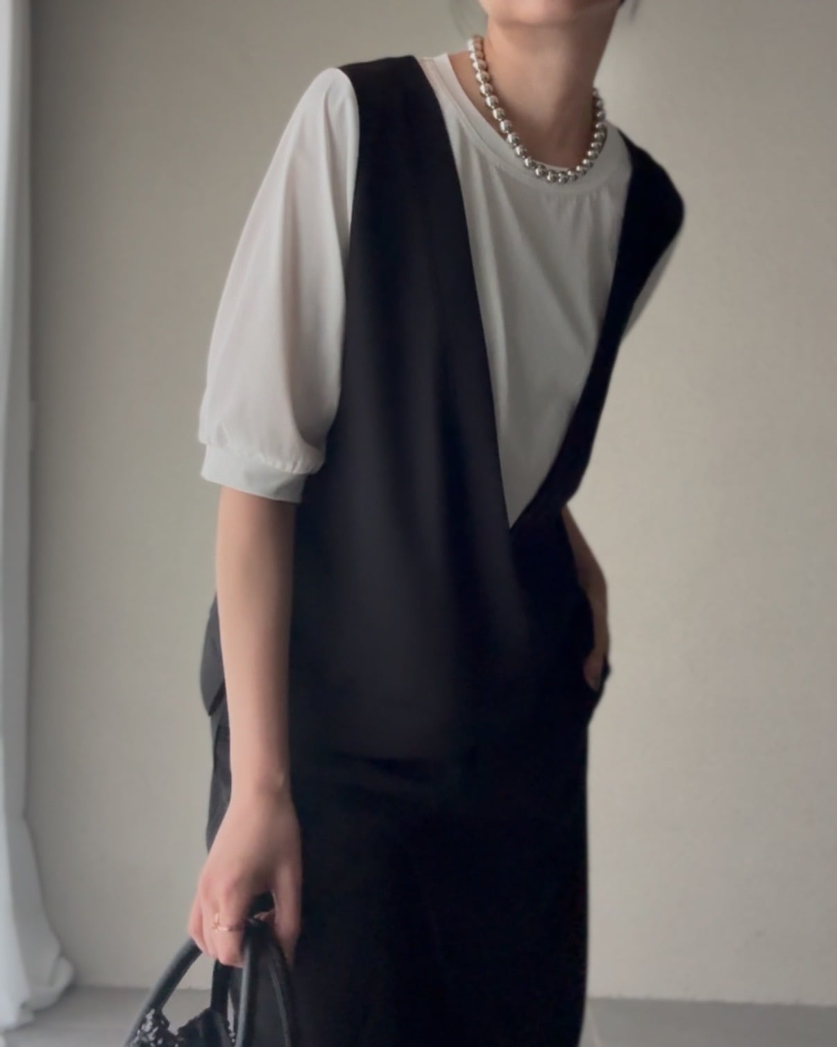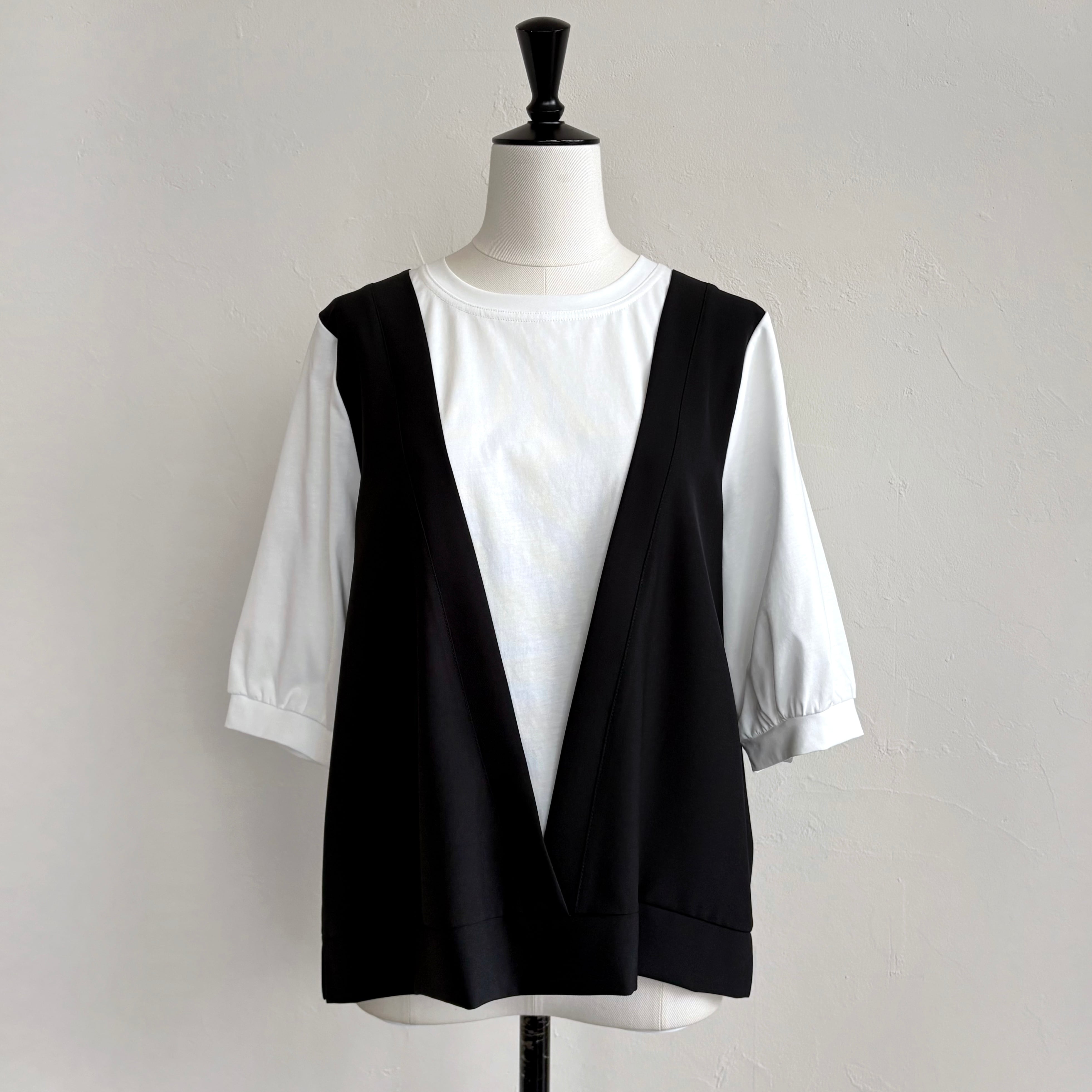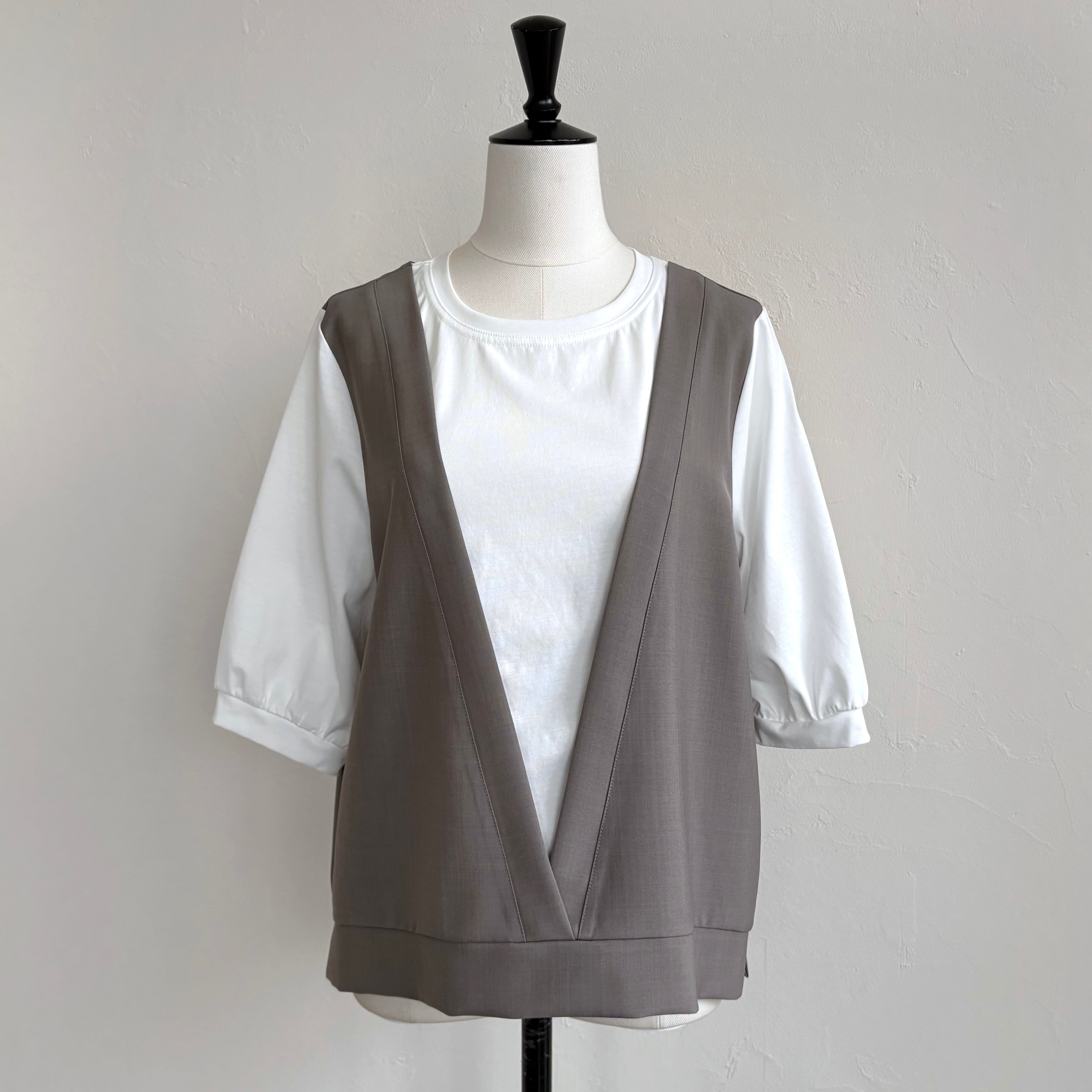 ベスト風のレイヤードスタイルが
