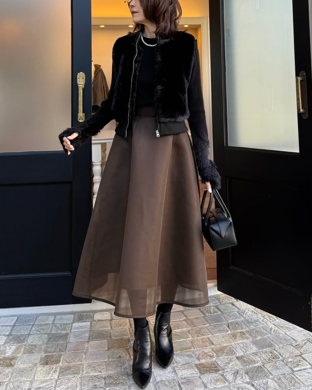 裾の仄かな透け感が女性らしいアクセントに。