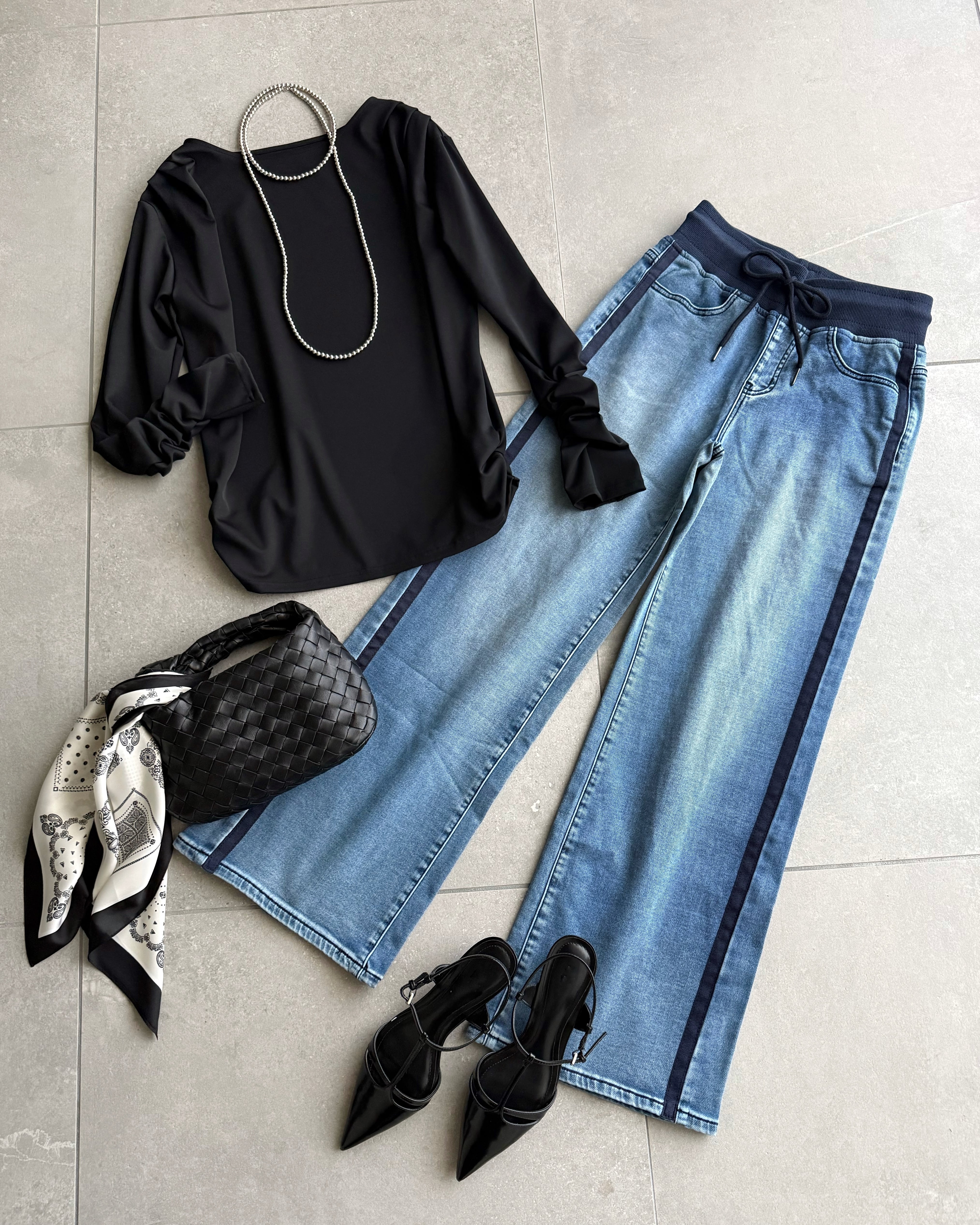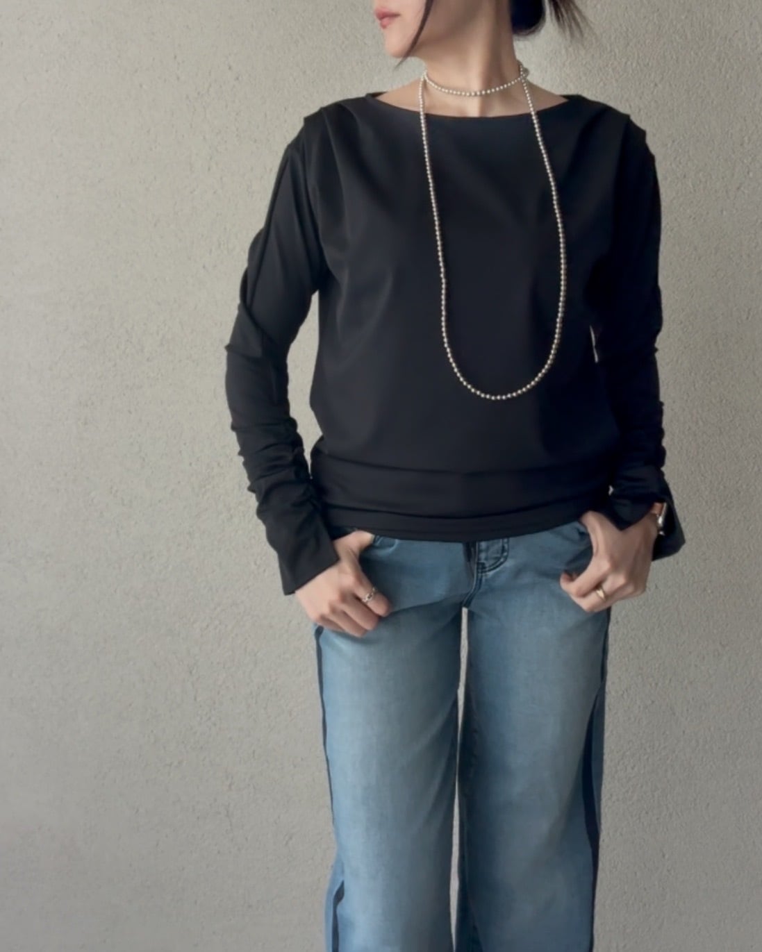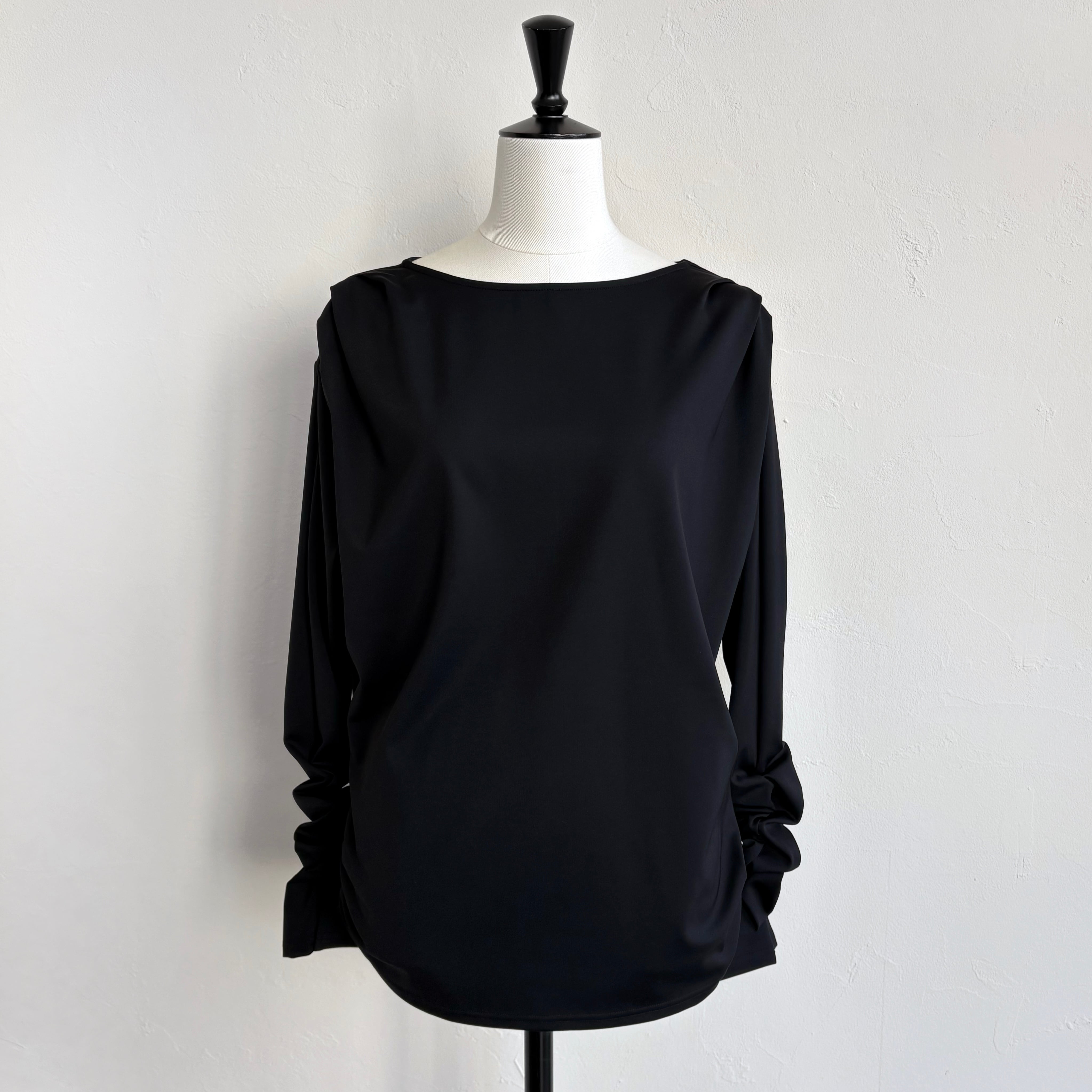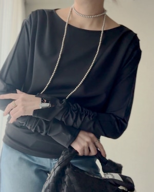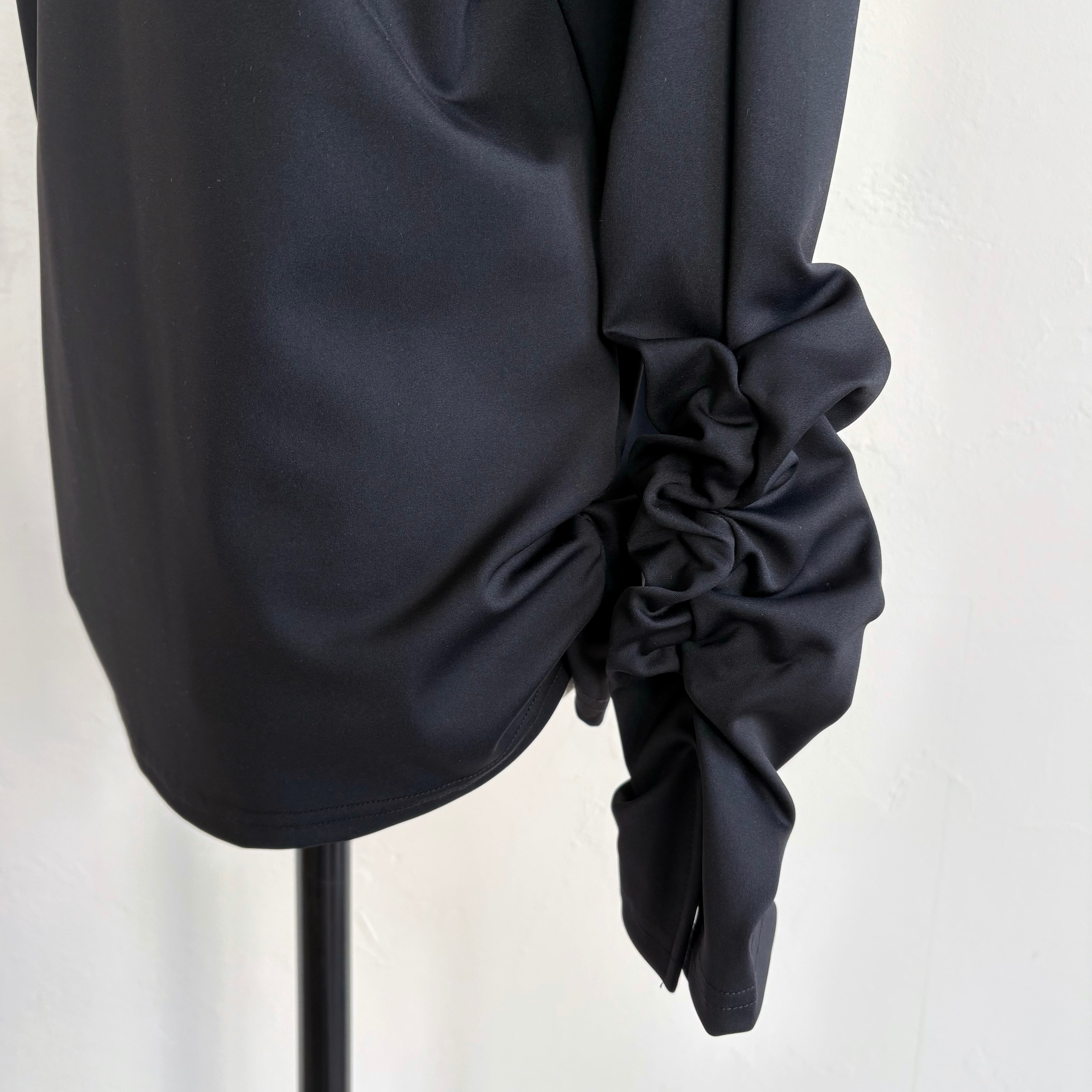 裾の両サイドにもシャーリングを施すことで