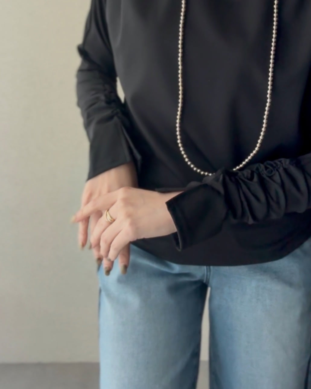 ゴムシャーリングを施したお袖が