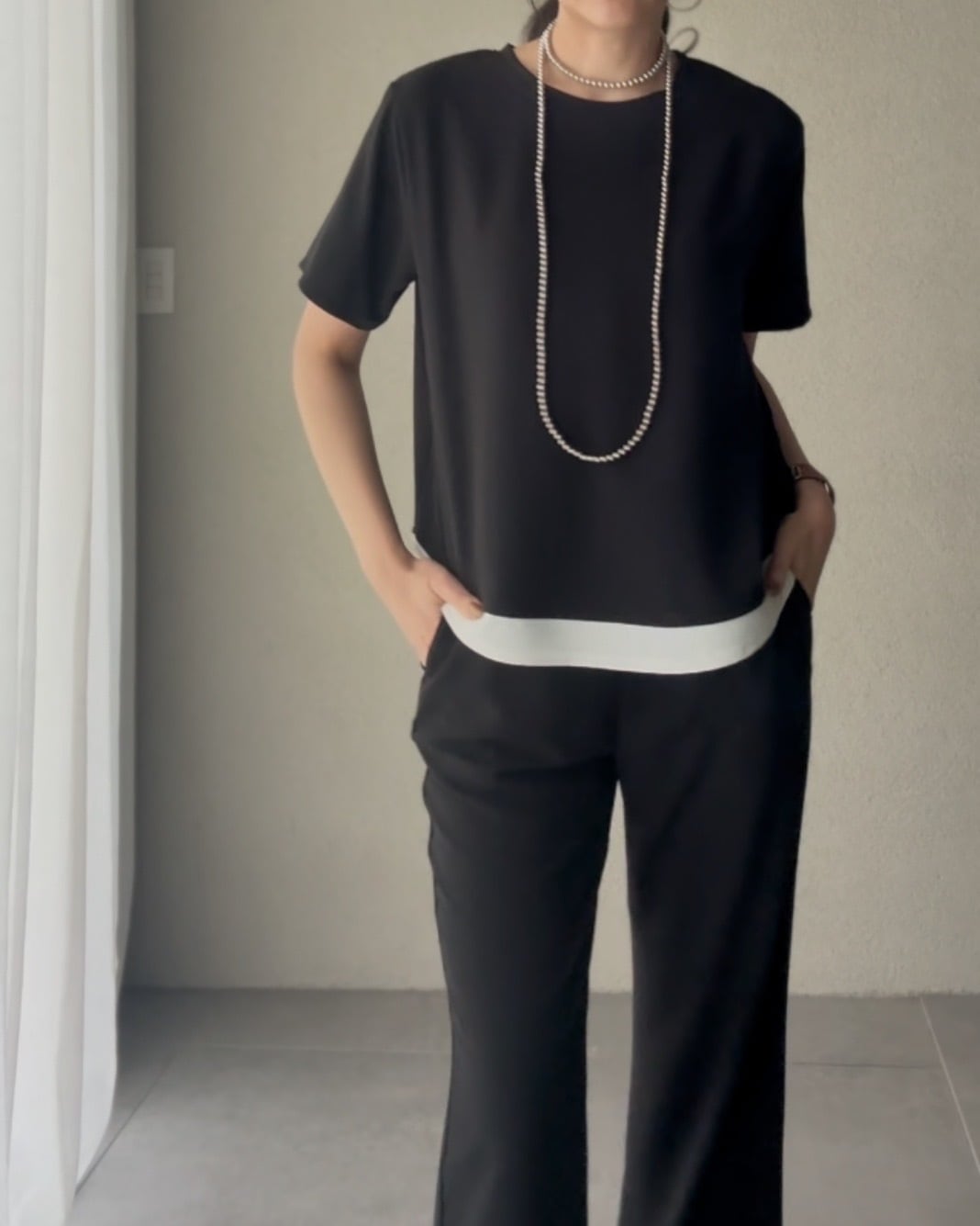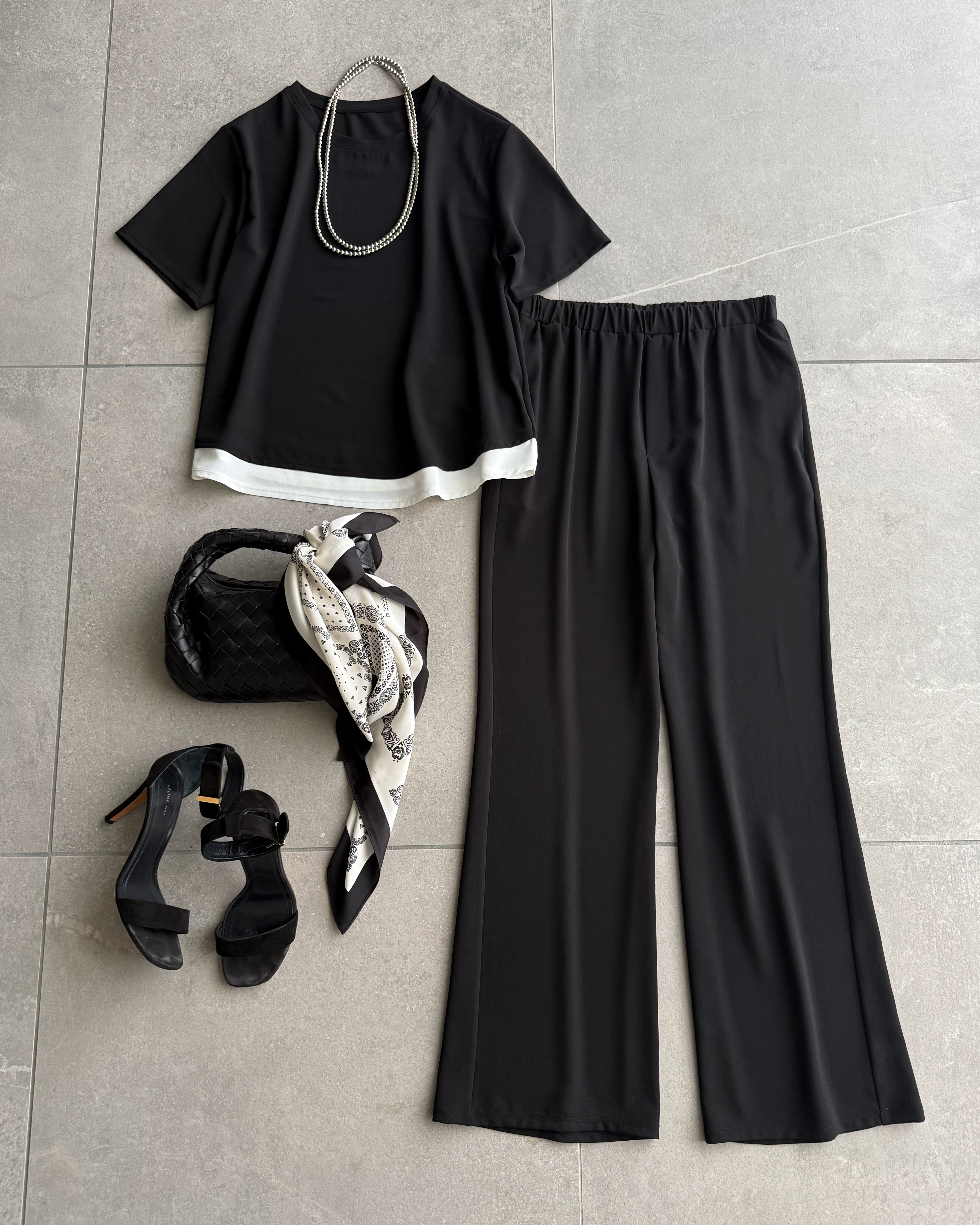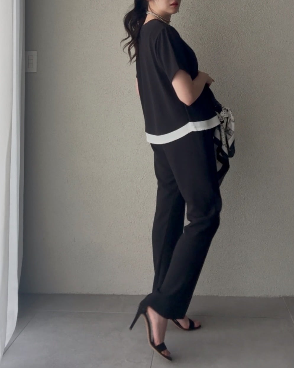 使用したレイヤード風デザインのカットソー。