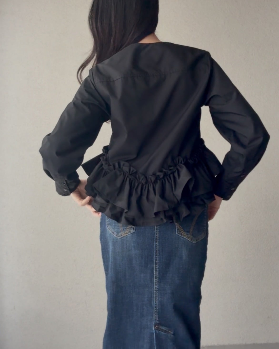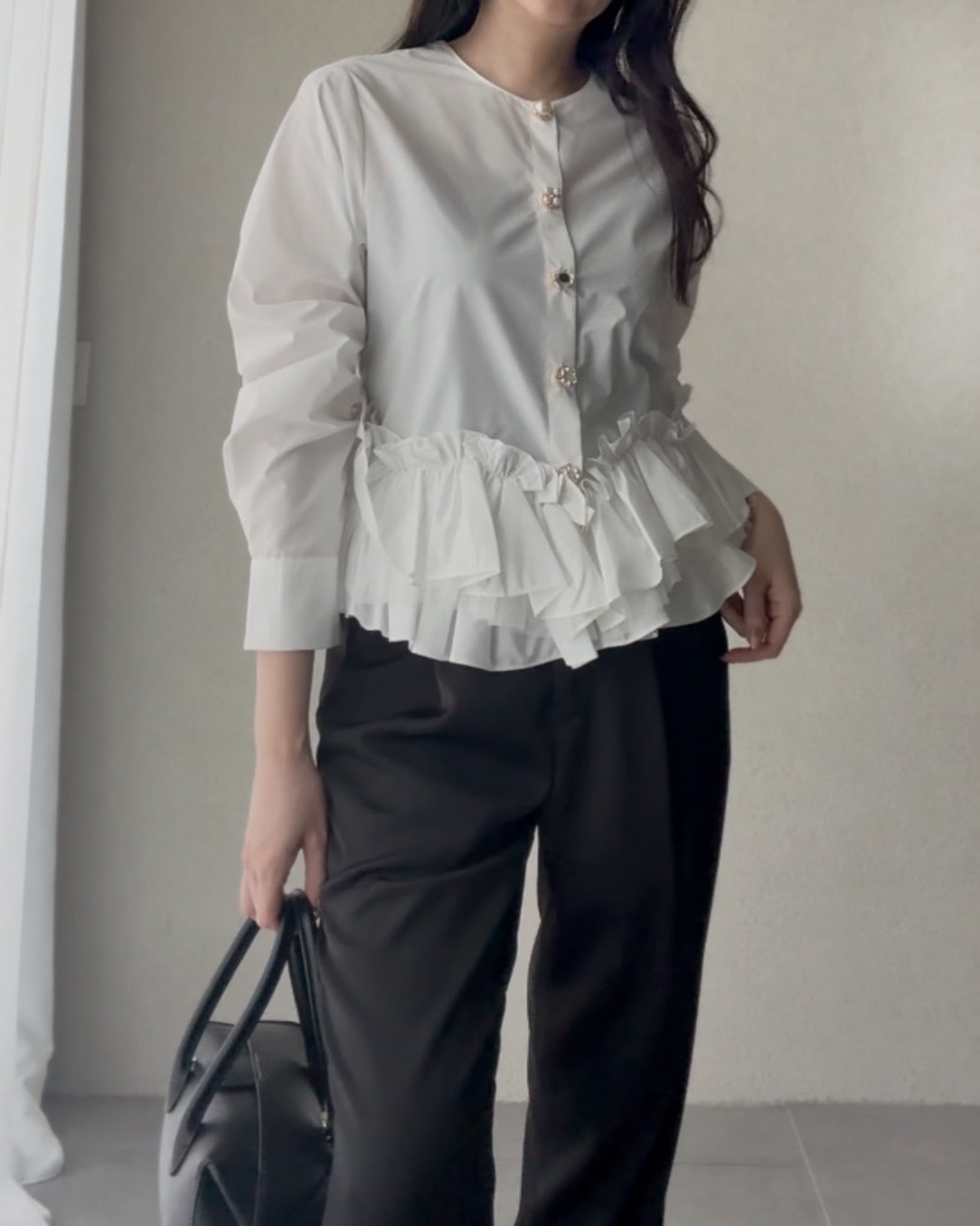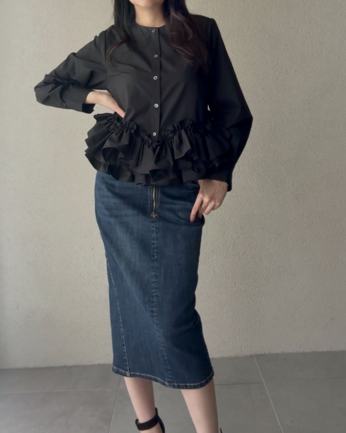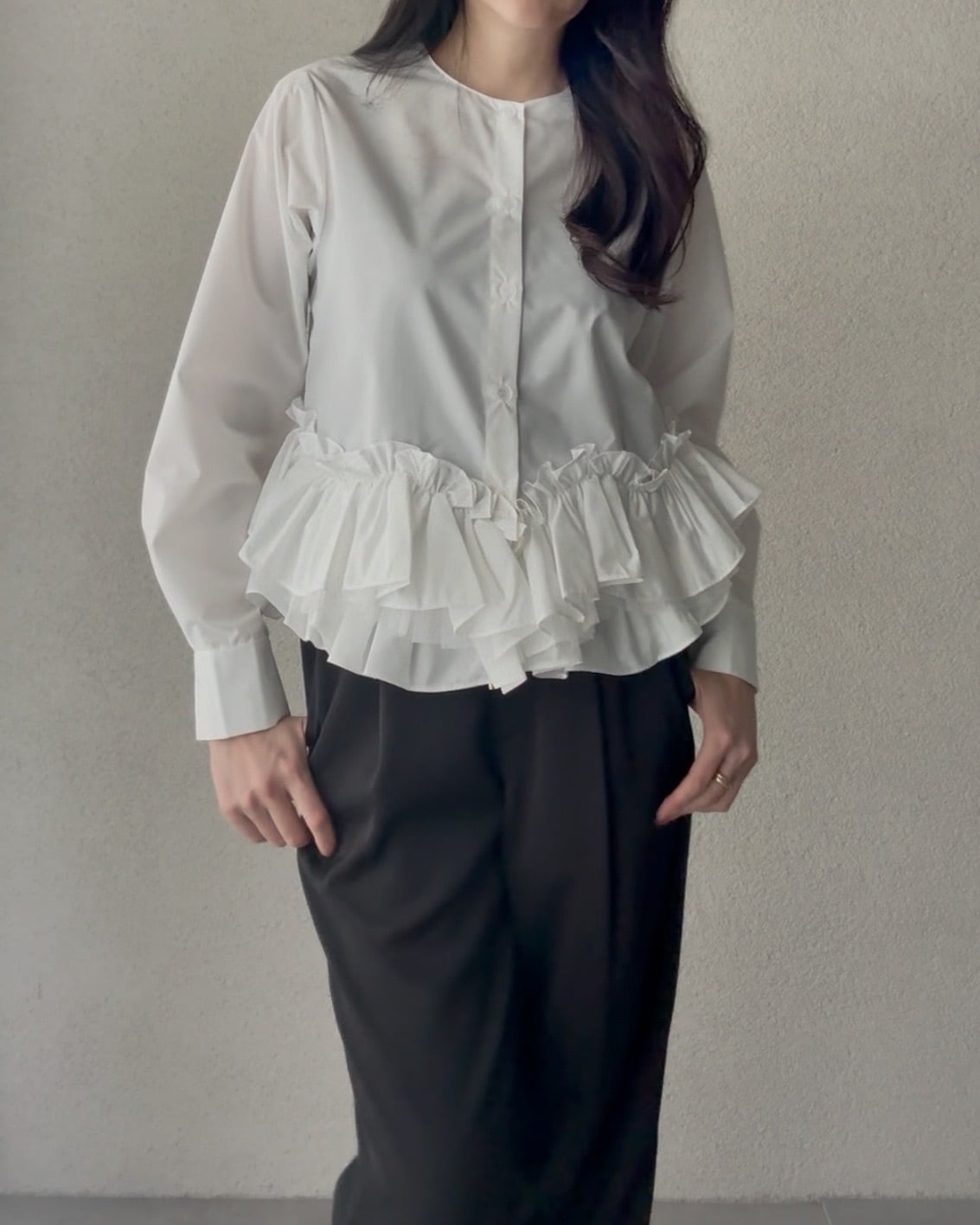 コンパクトな着丈で、パンツとスカート