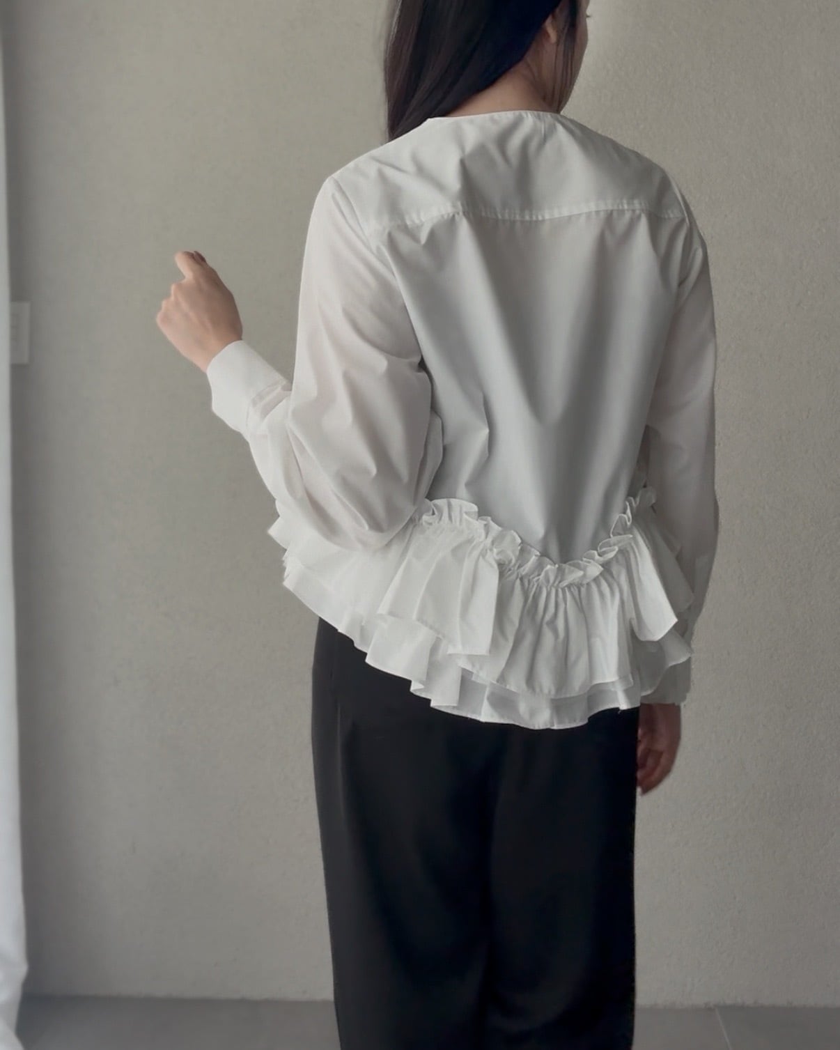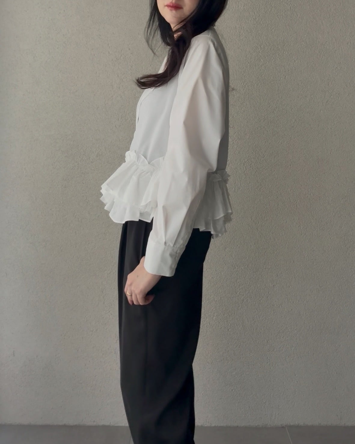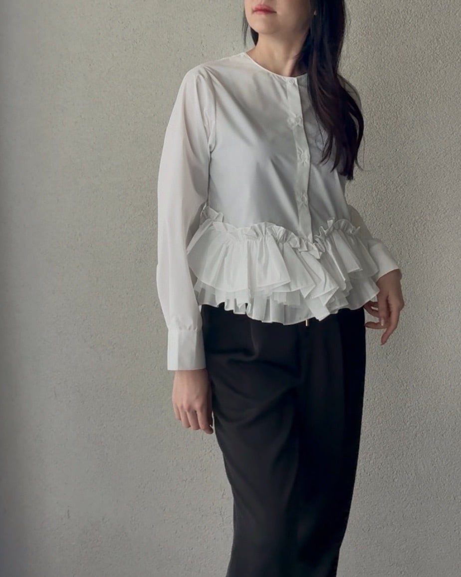 ふんわりと広がるペプラムシルエットが