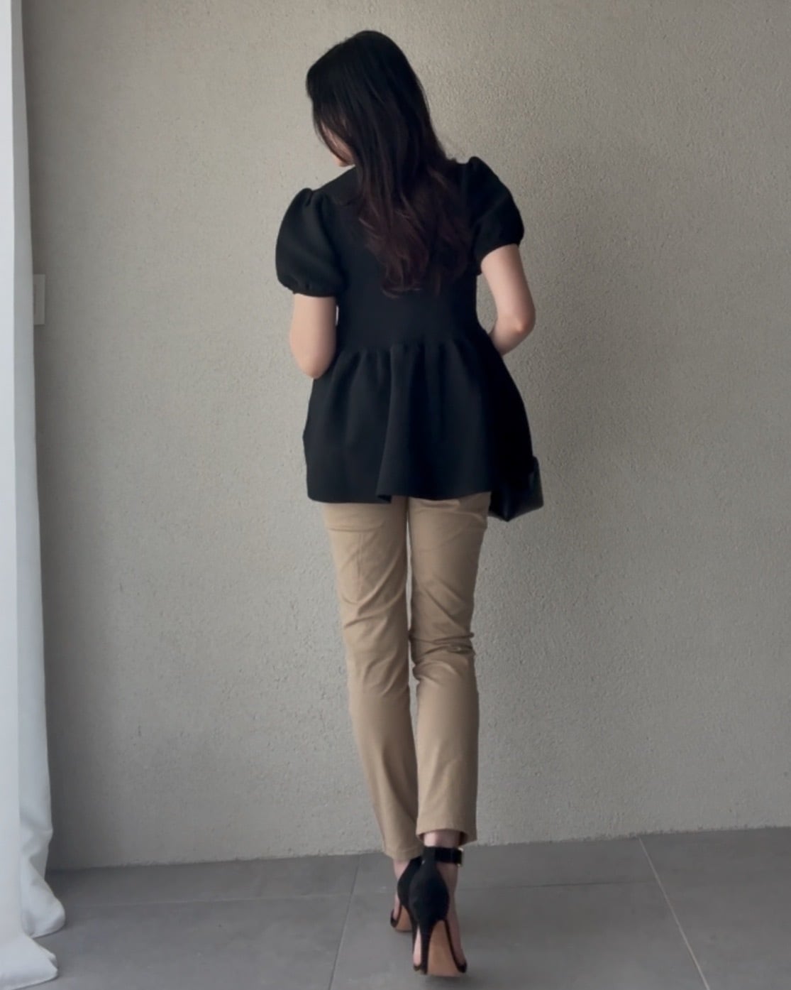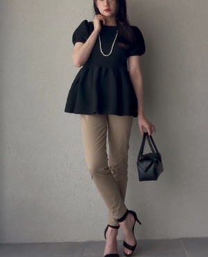 使用した軽やかなテーパードパンツ。