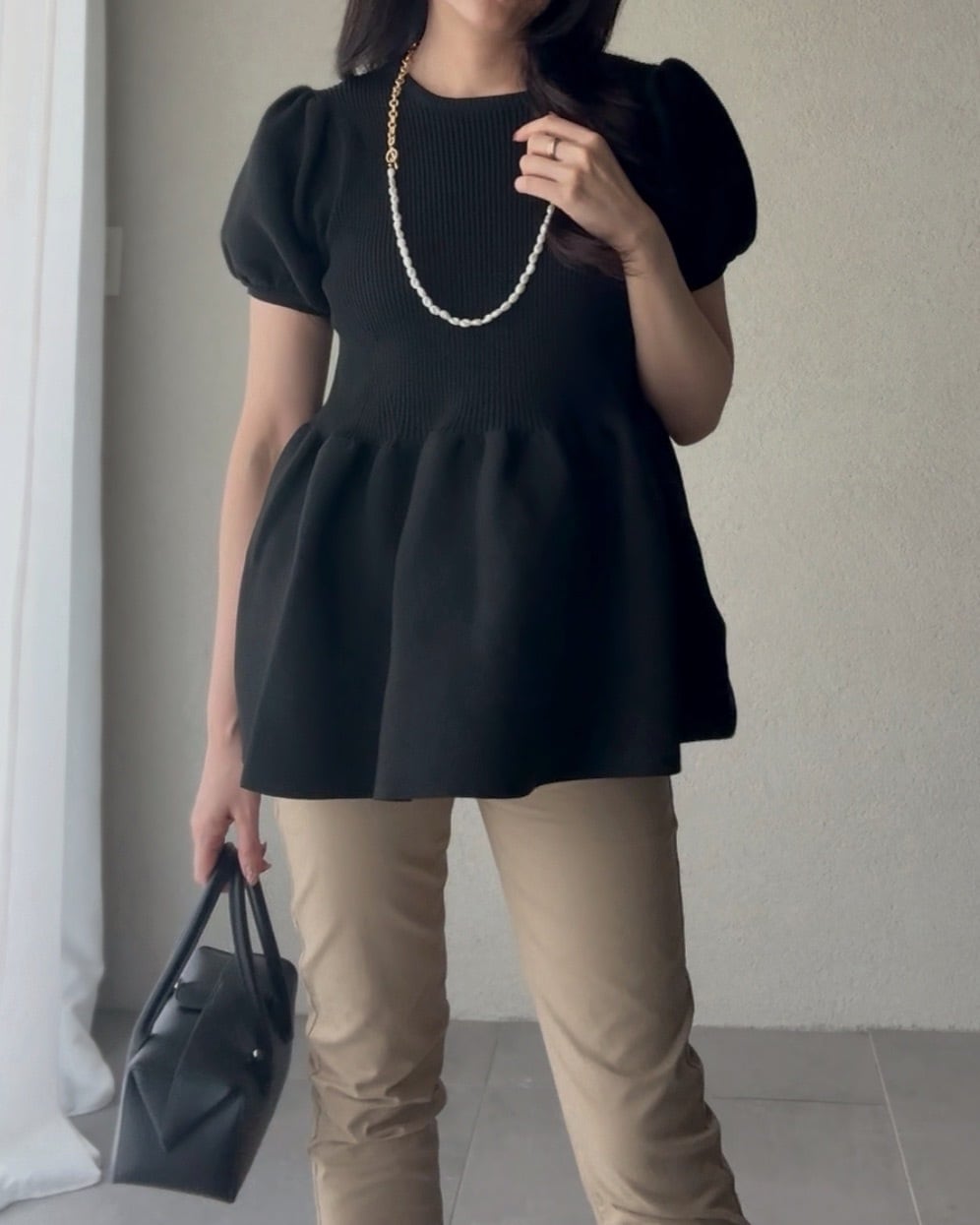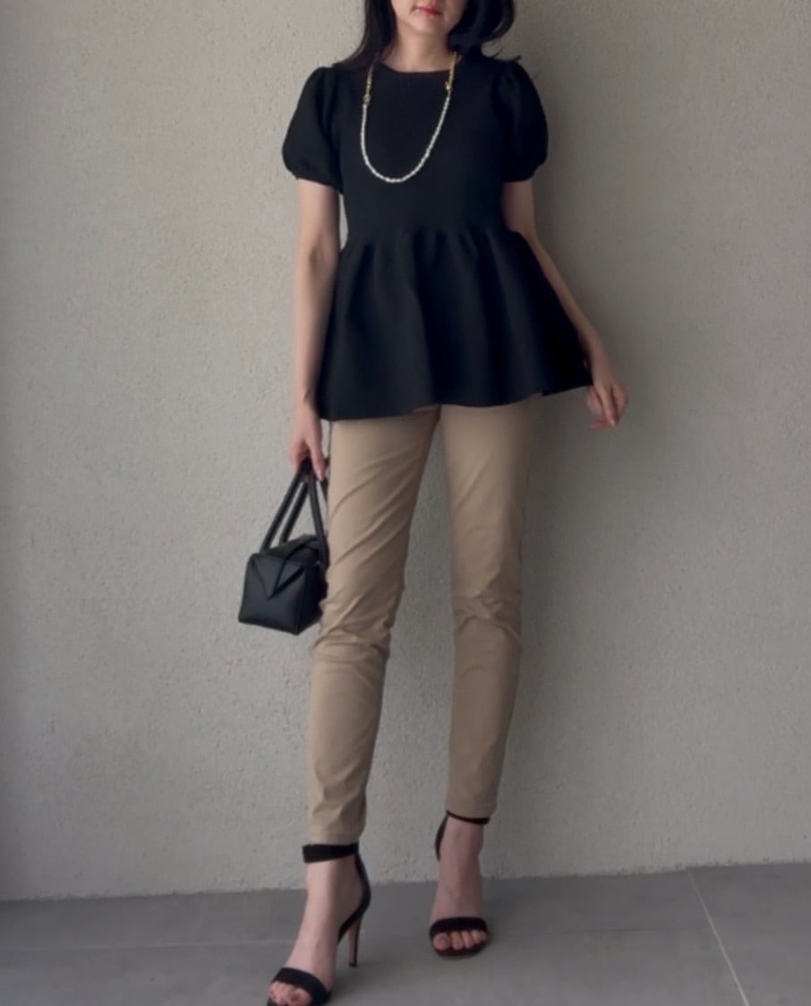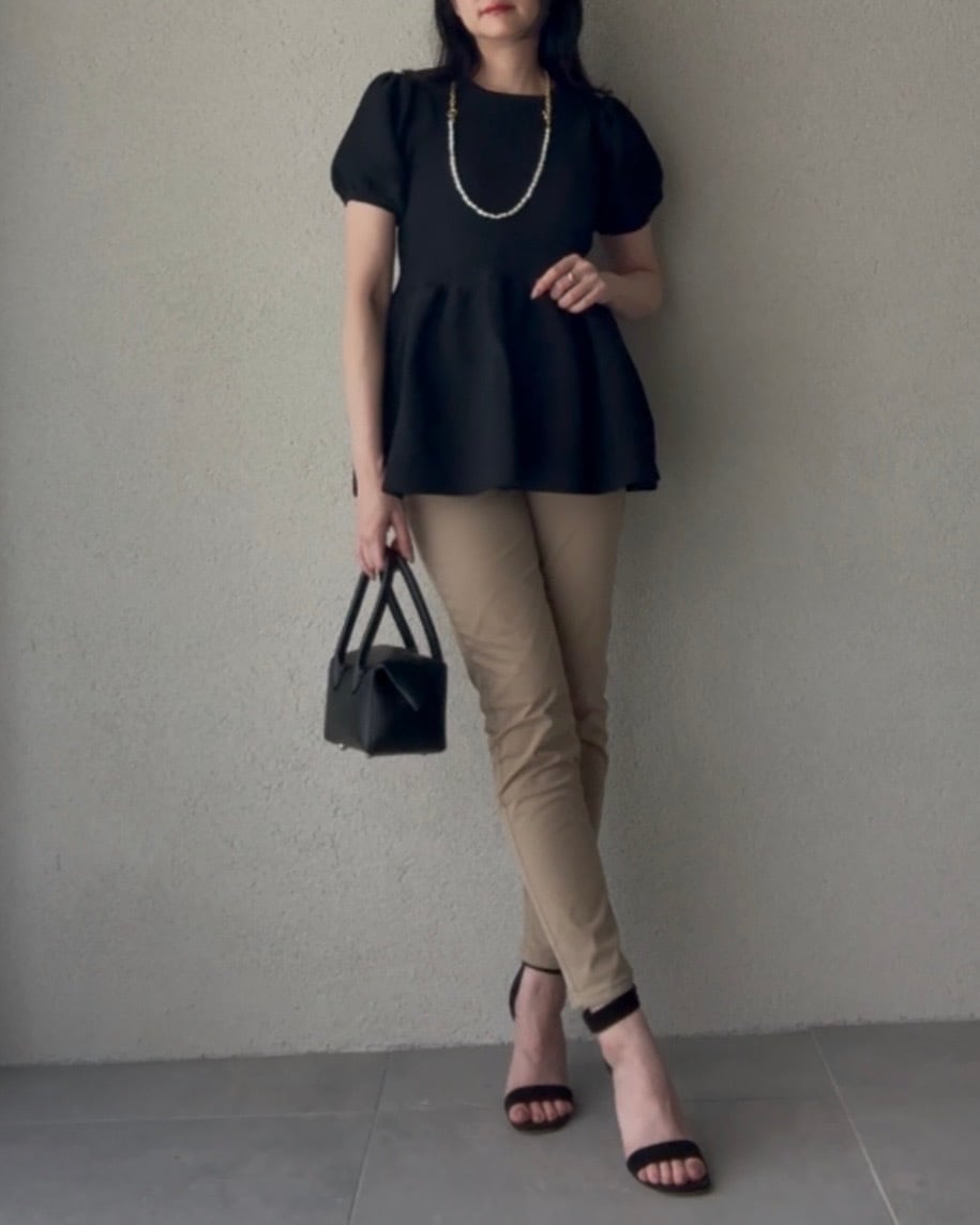 ブラウスときれいめなスタイリングも。