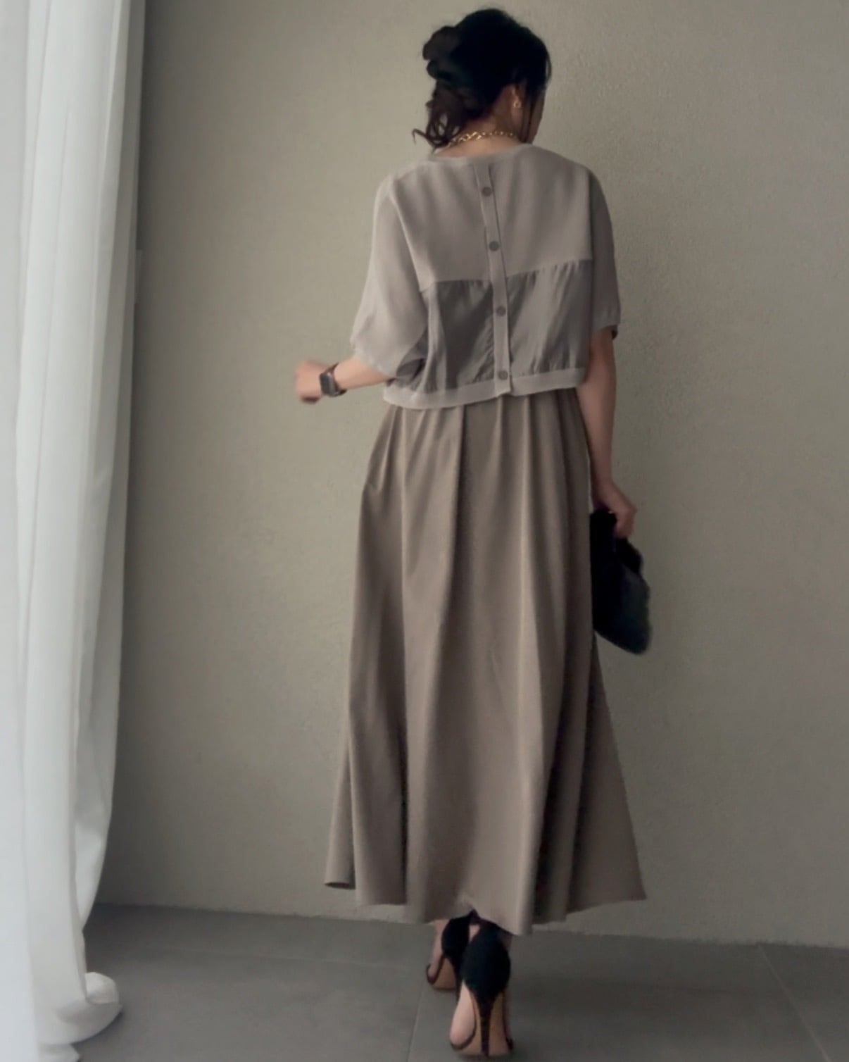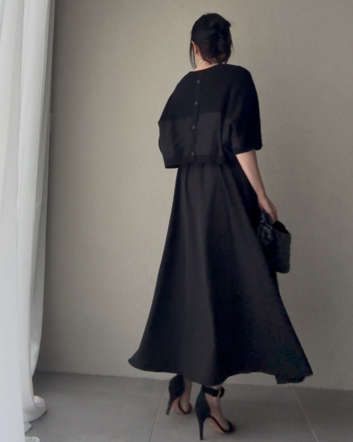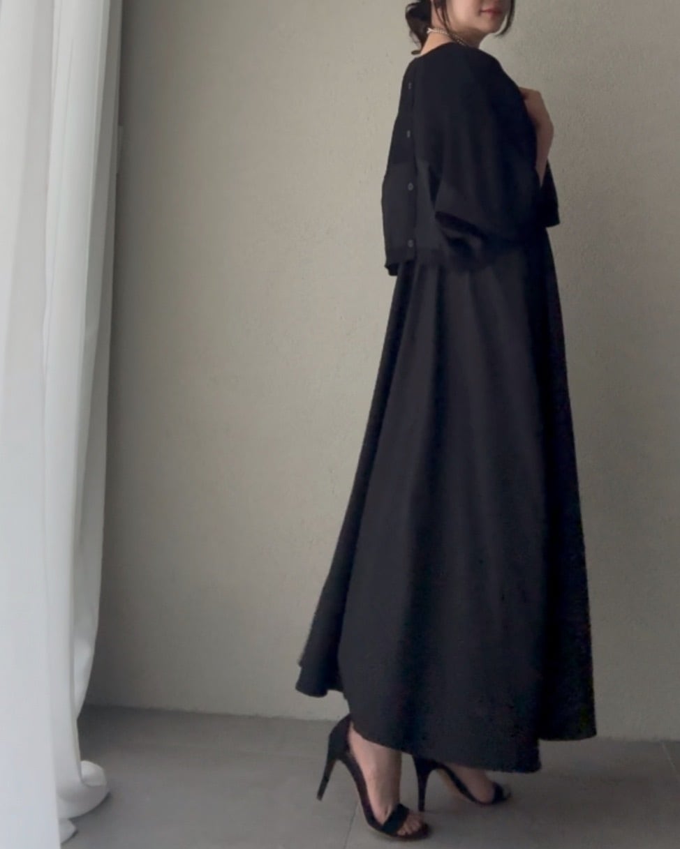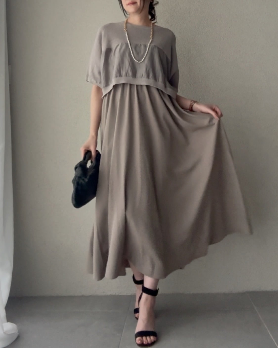 ワンピースは落ち感の綺麗な布帛素材を使用。