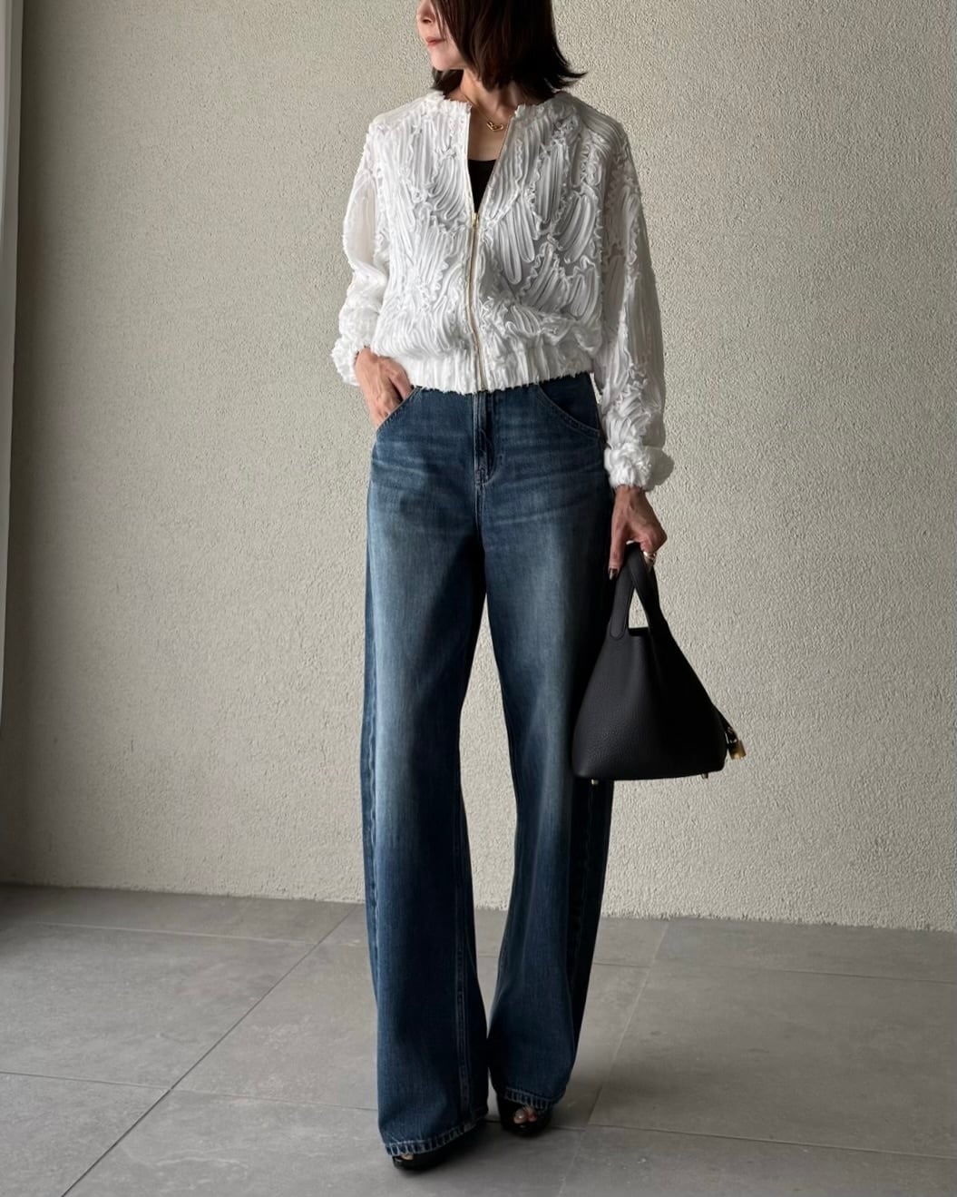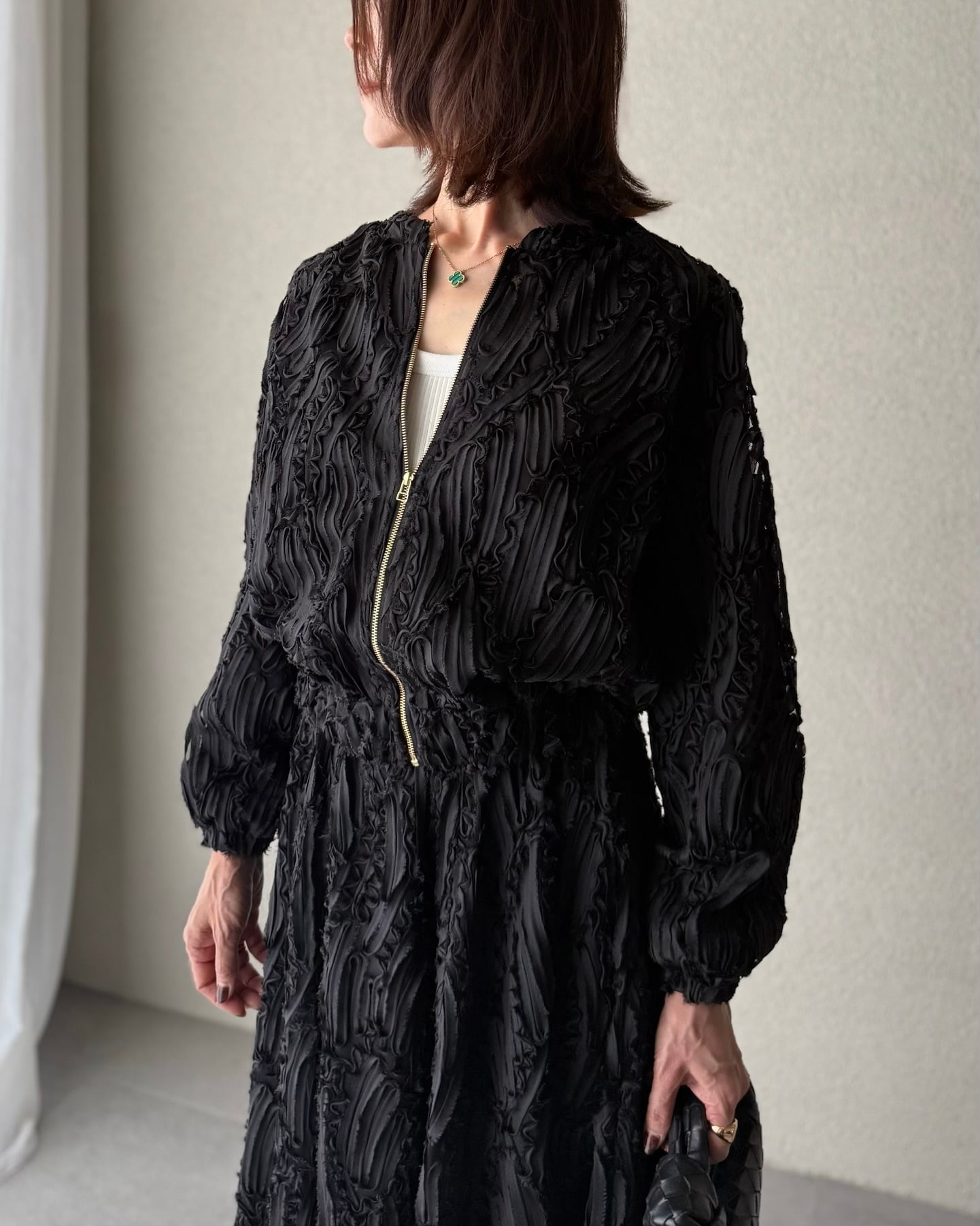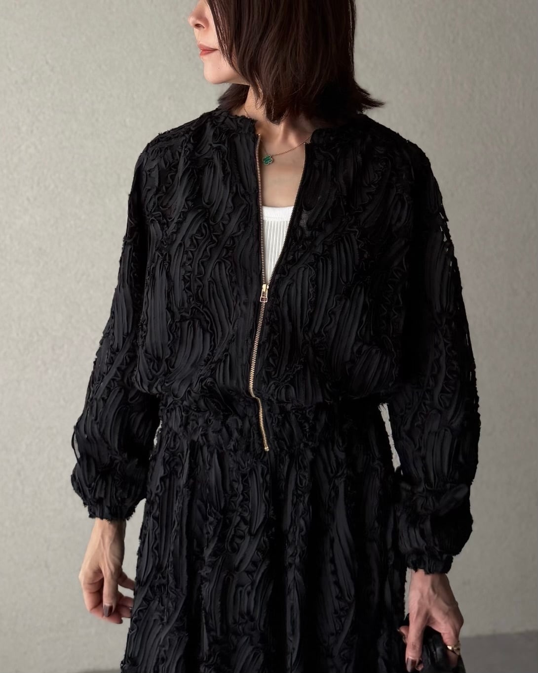 あしらった華やかなジップブルゾン。