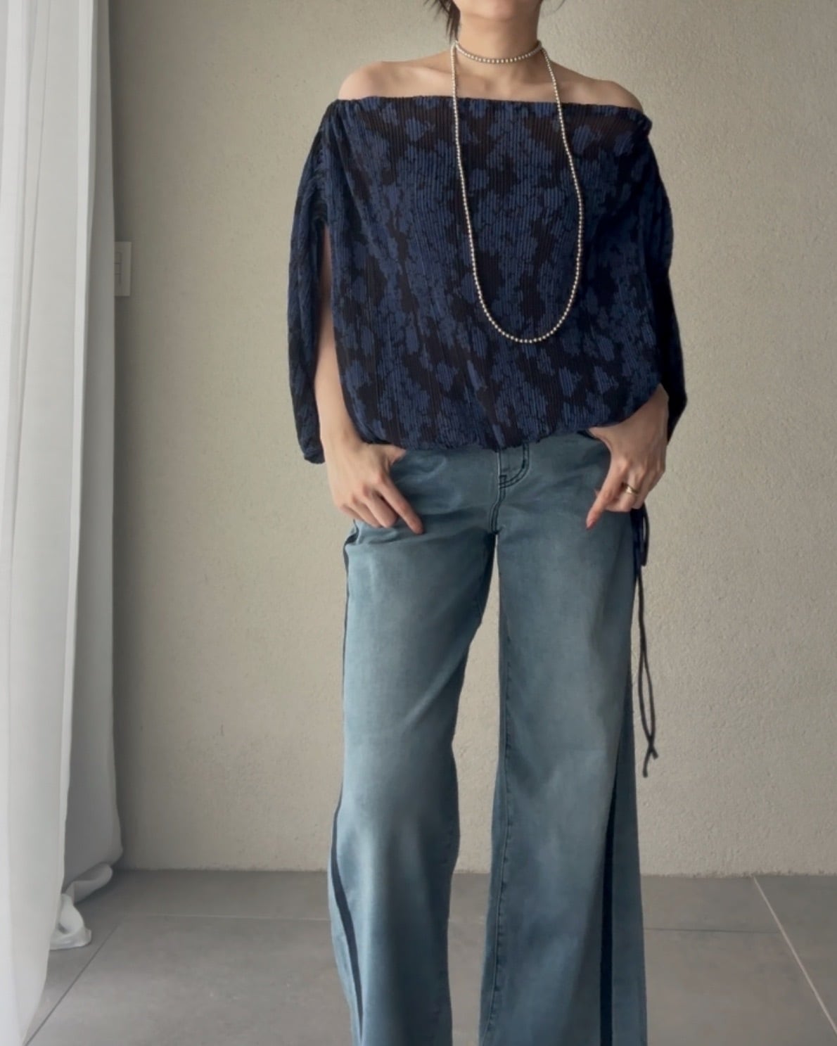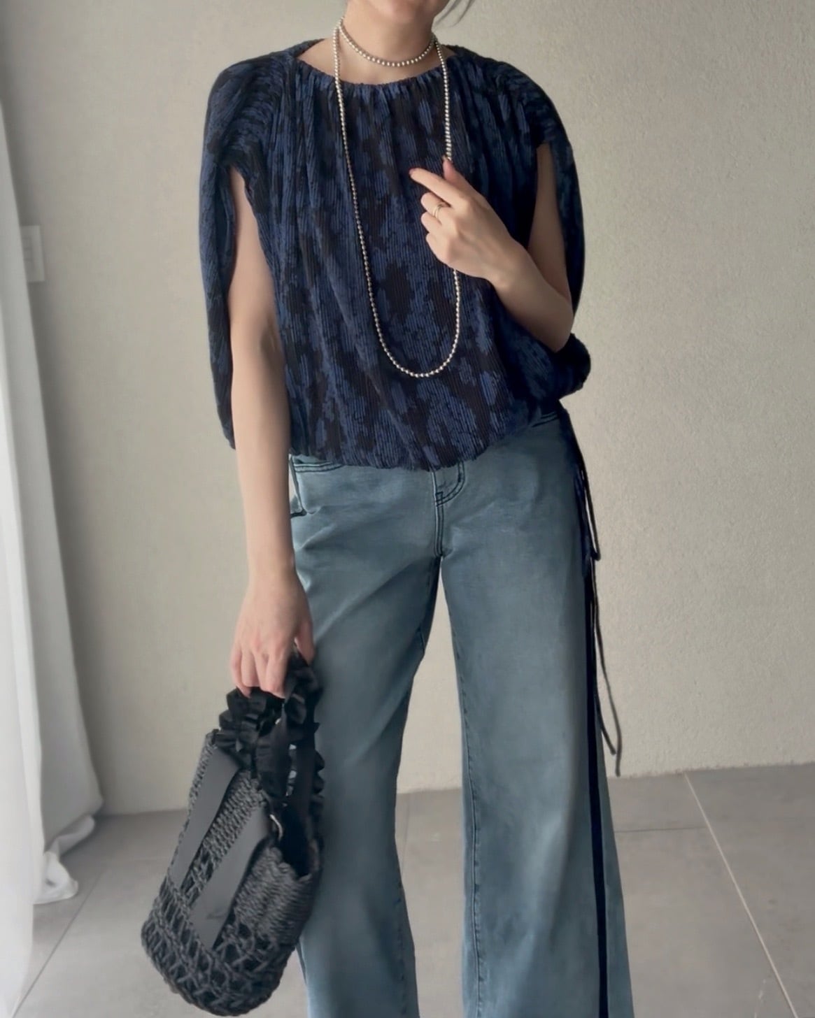 ワイドなボトムスにもバランスよく