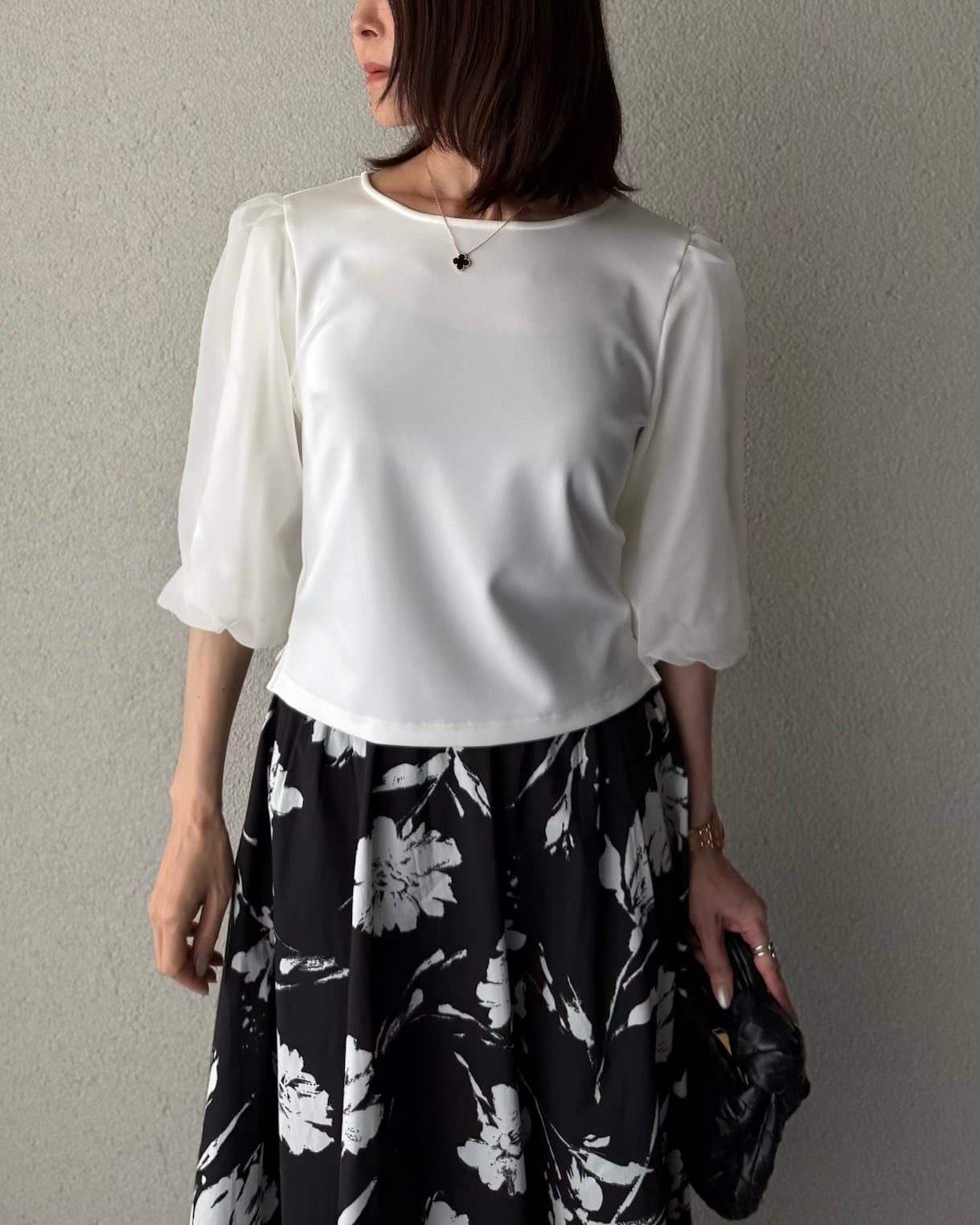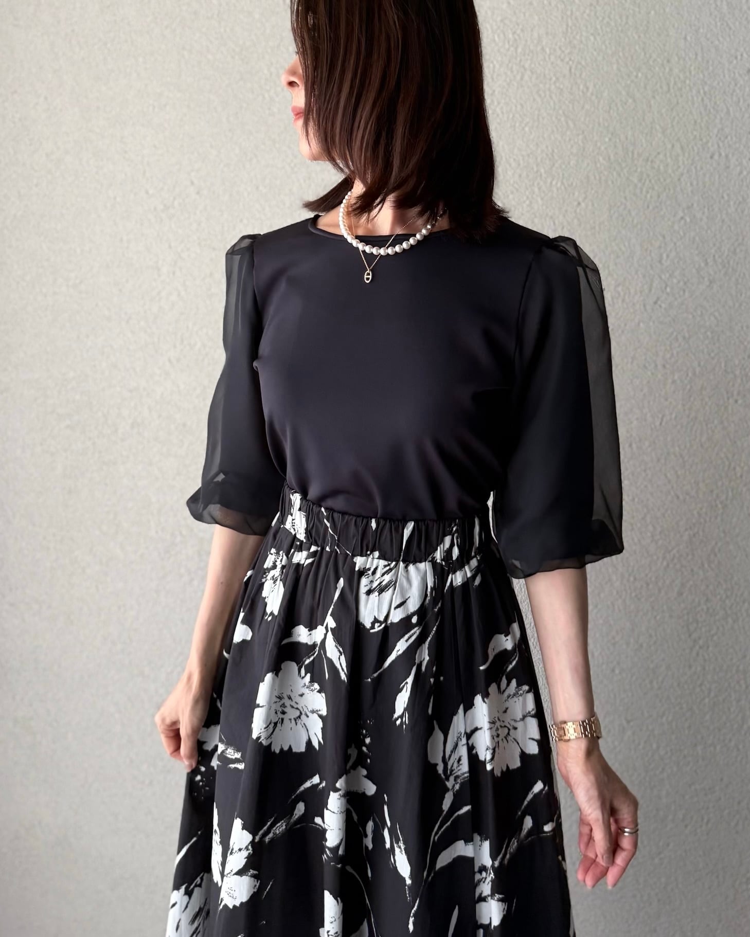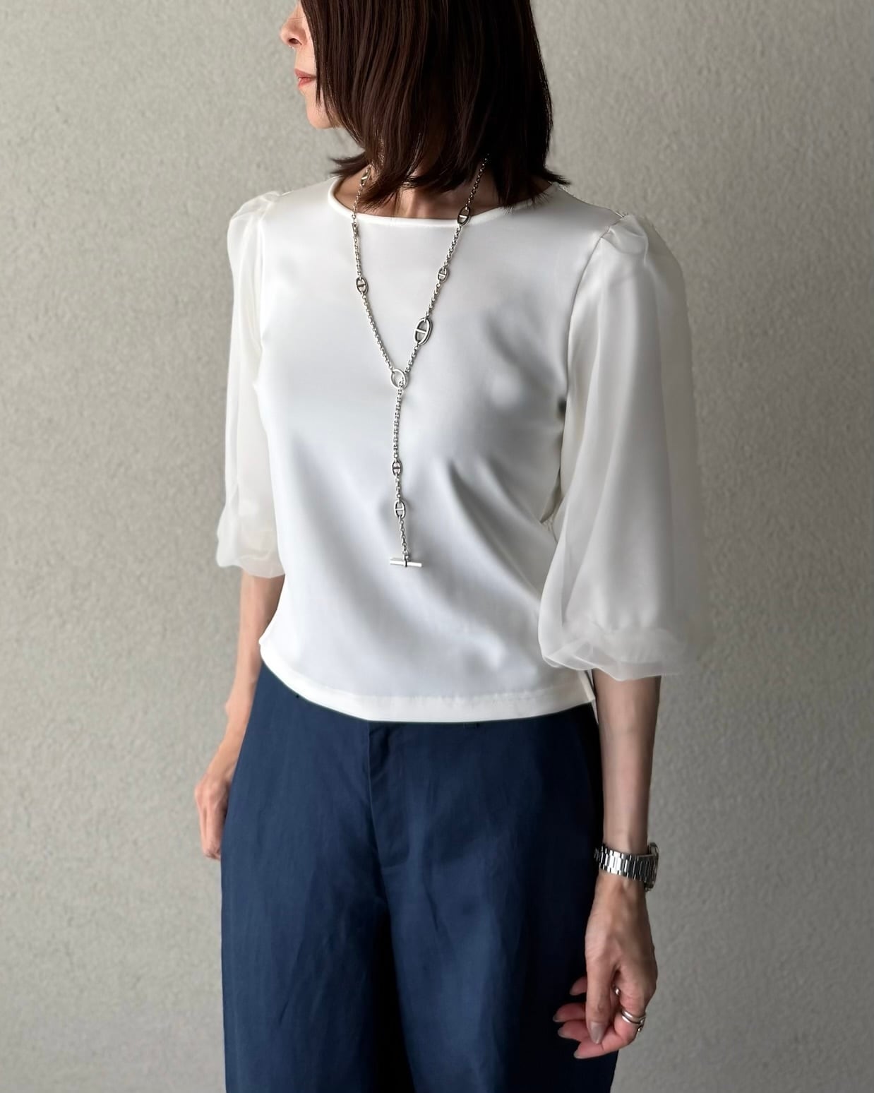 オーガンジーを重ねた上品で華やかさもあるプルオーバー。